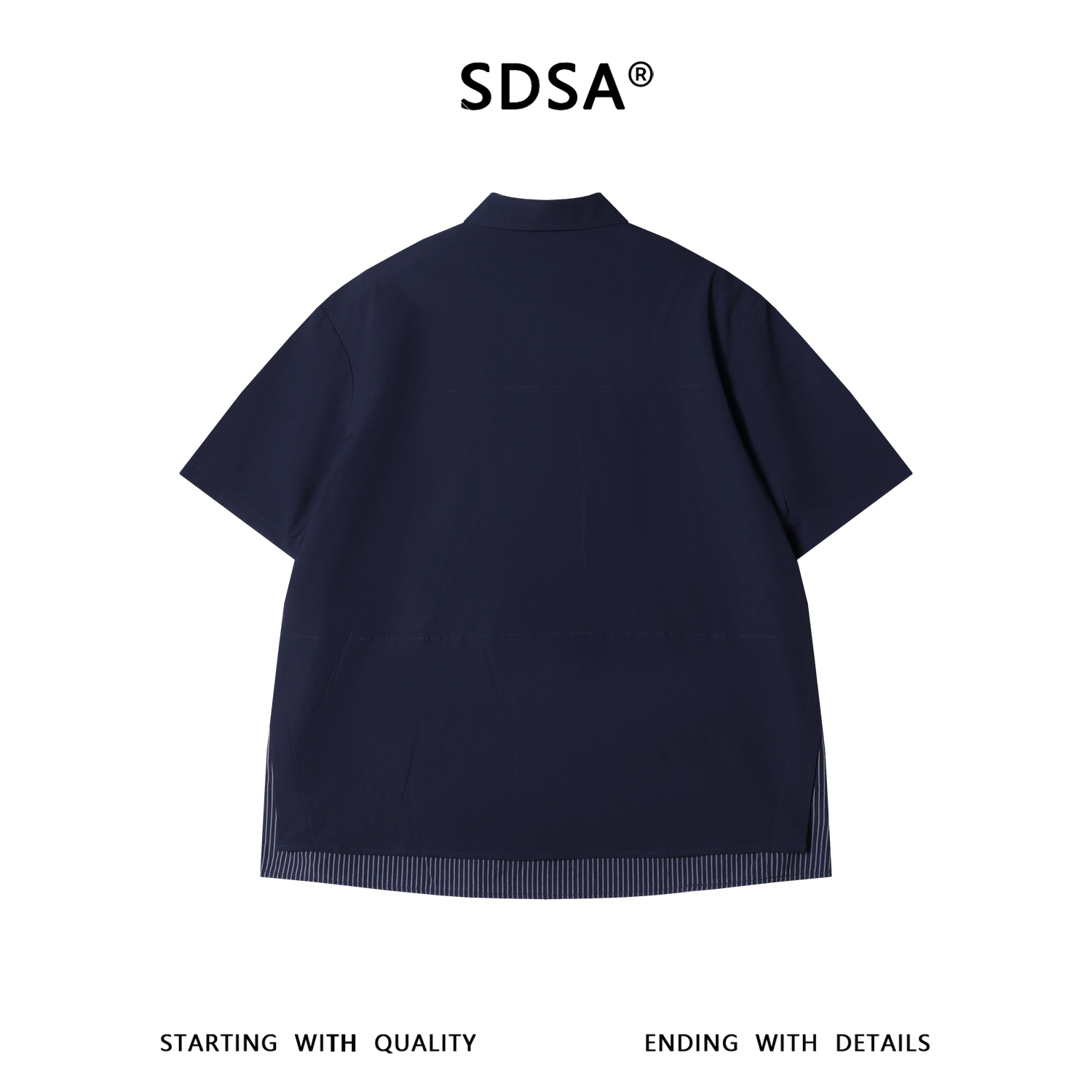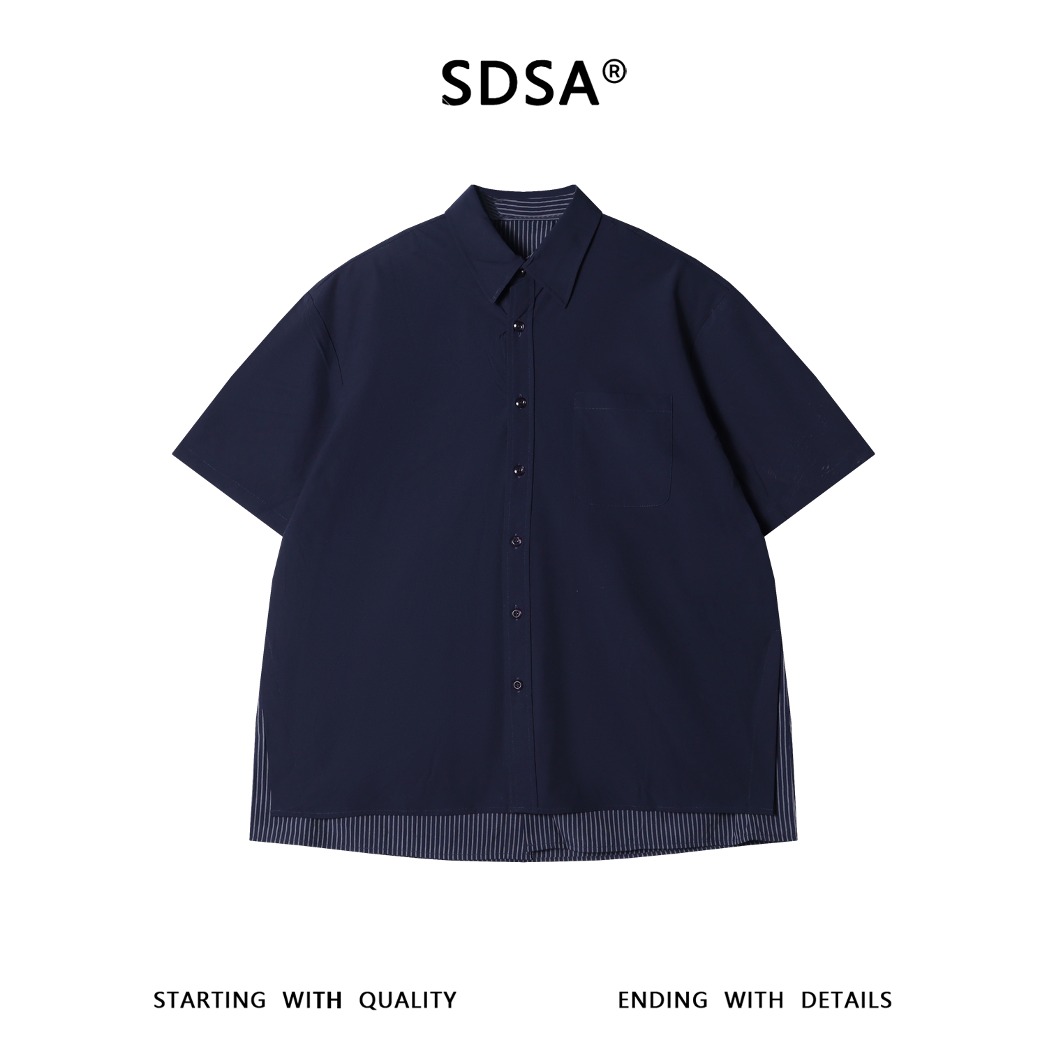 SDSA男装2026新款高贵轻奢潮牌极简风拼接条纹假两件短袖衬衫