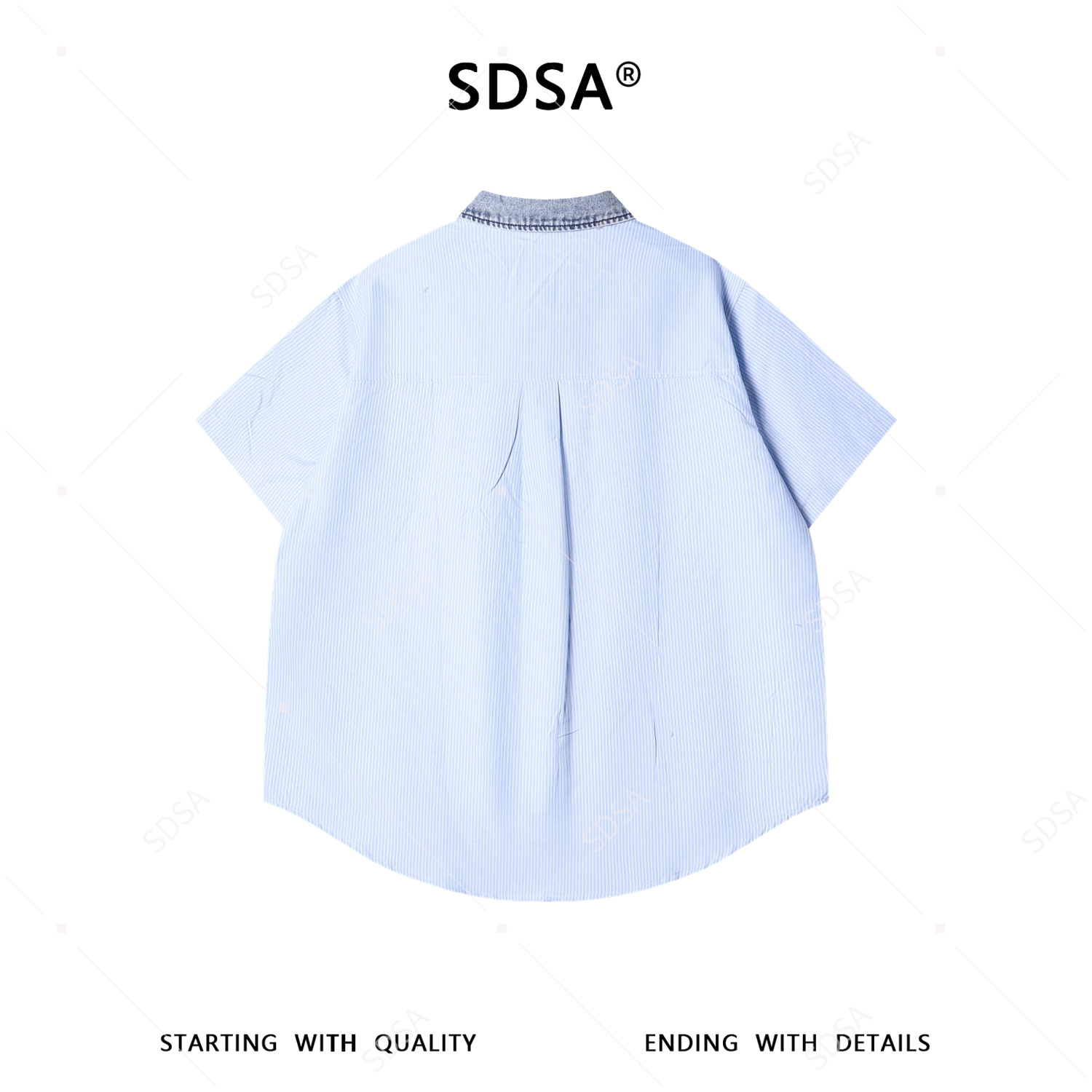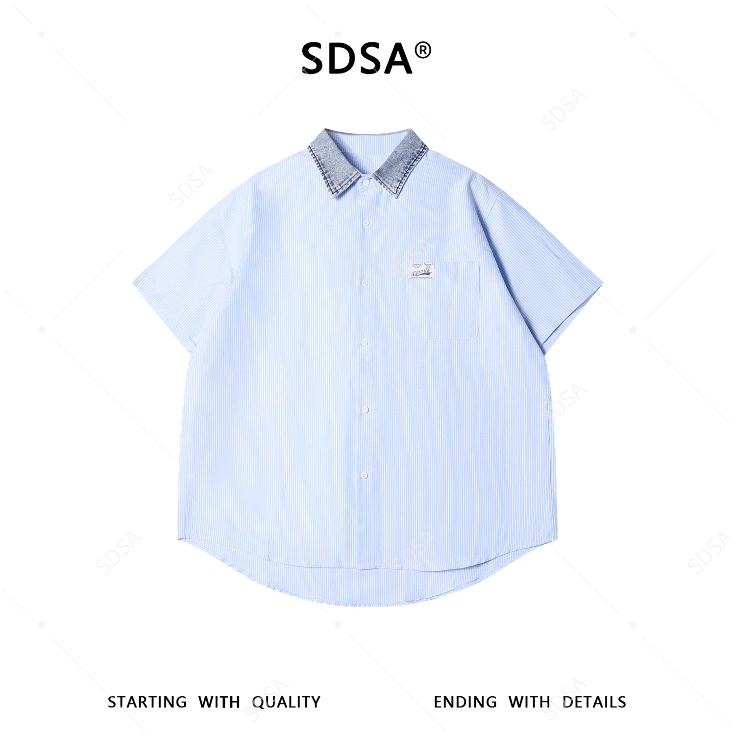 SDSA男装2026新款高贵轻奢时尚条纹拼接翻领短袖衬衫百搭时尚上衣
