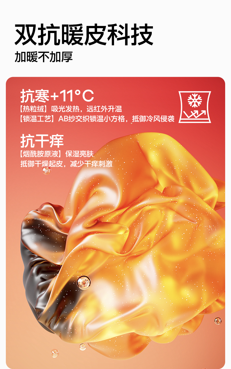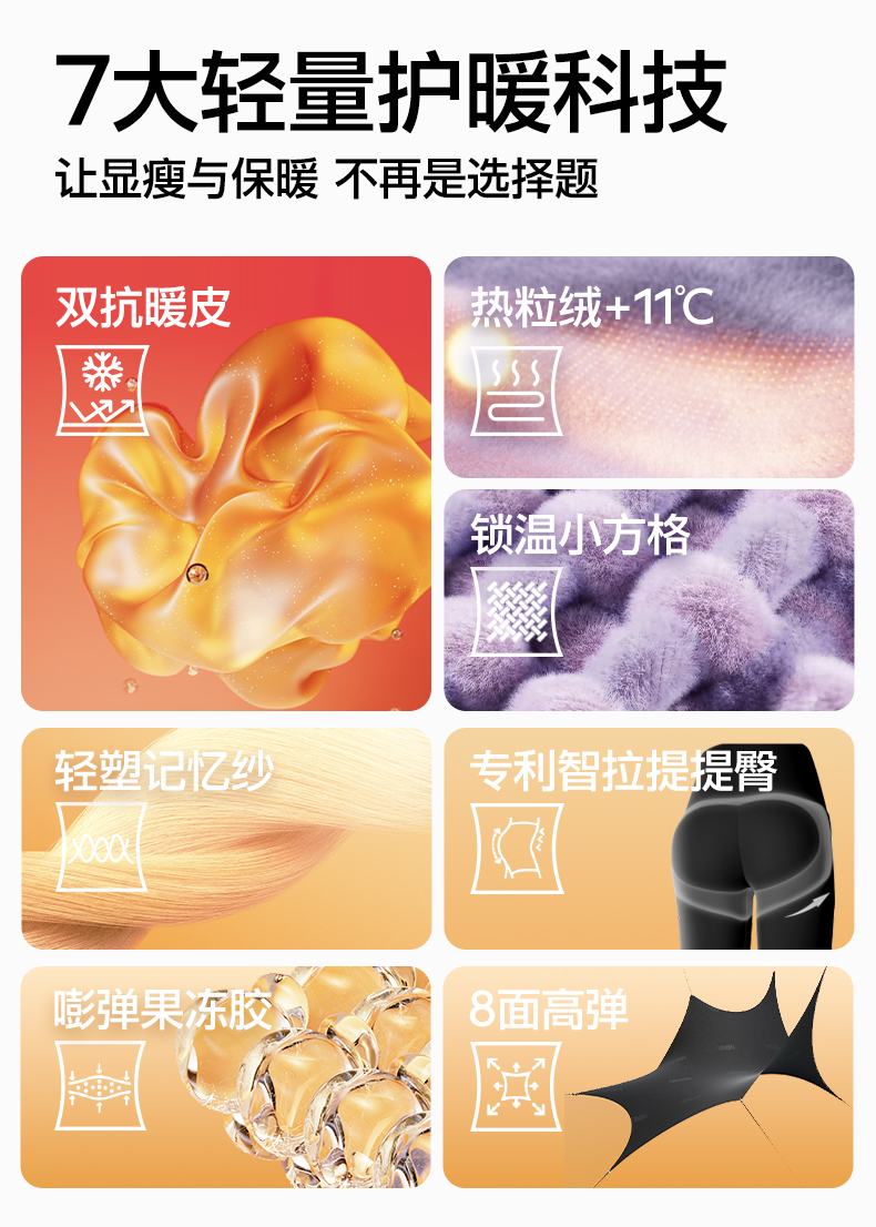 高暖款:外层-75%锦纶、25%氨纶,里绒-85.1%