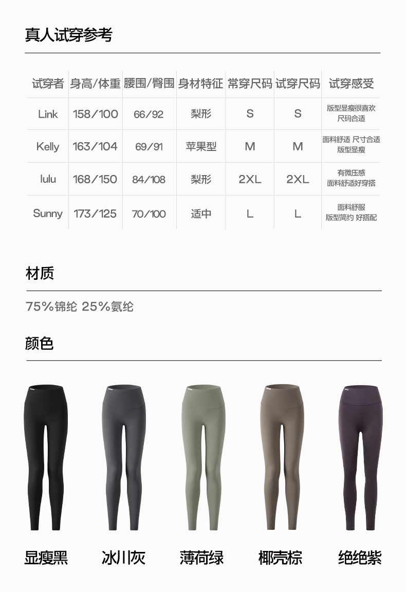 中暖款:外层-75%锦纶、25%氨纶,里绒-89.5%