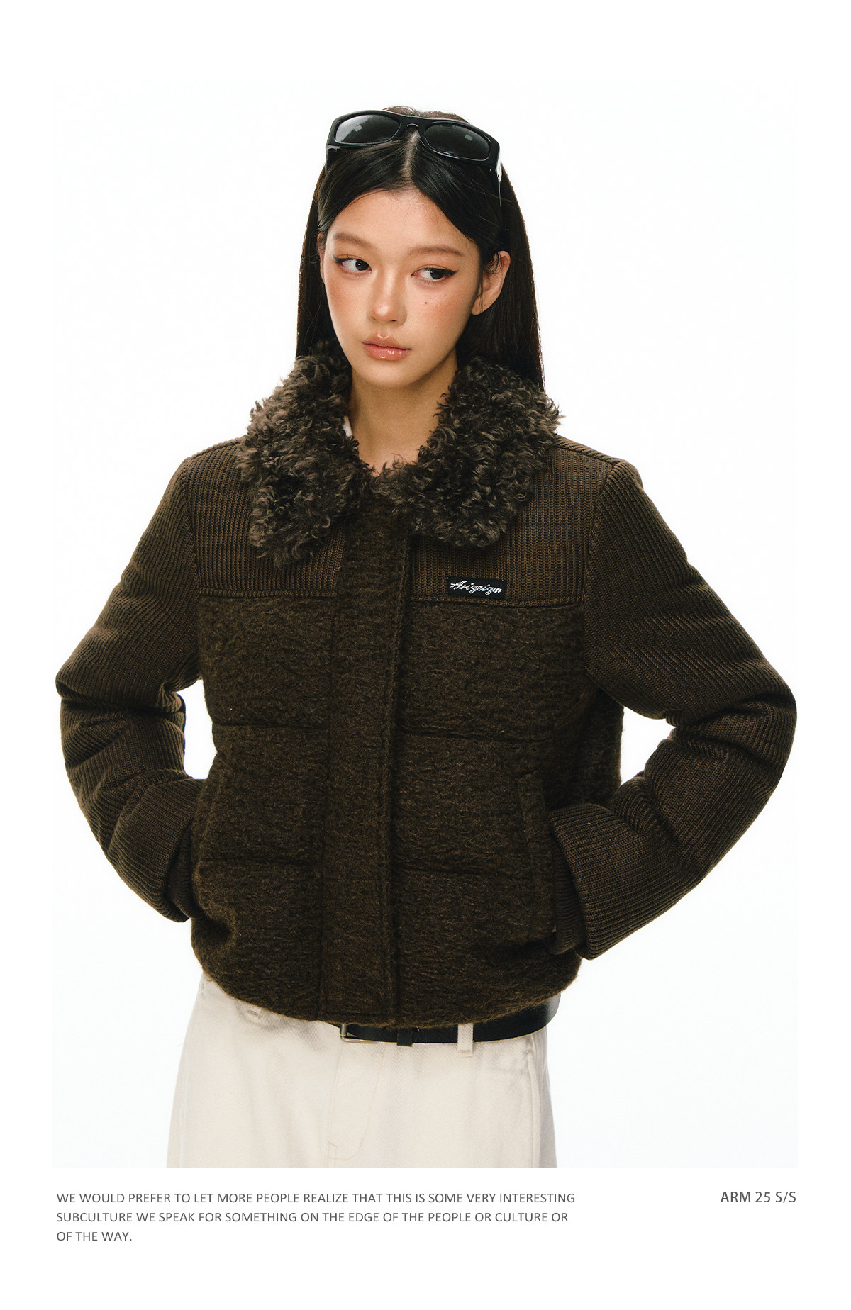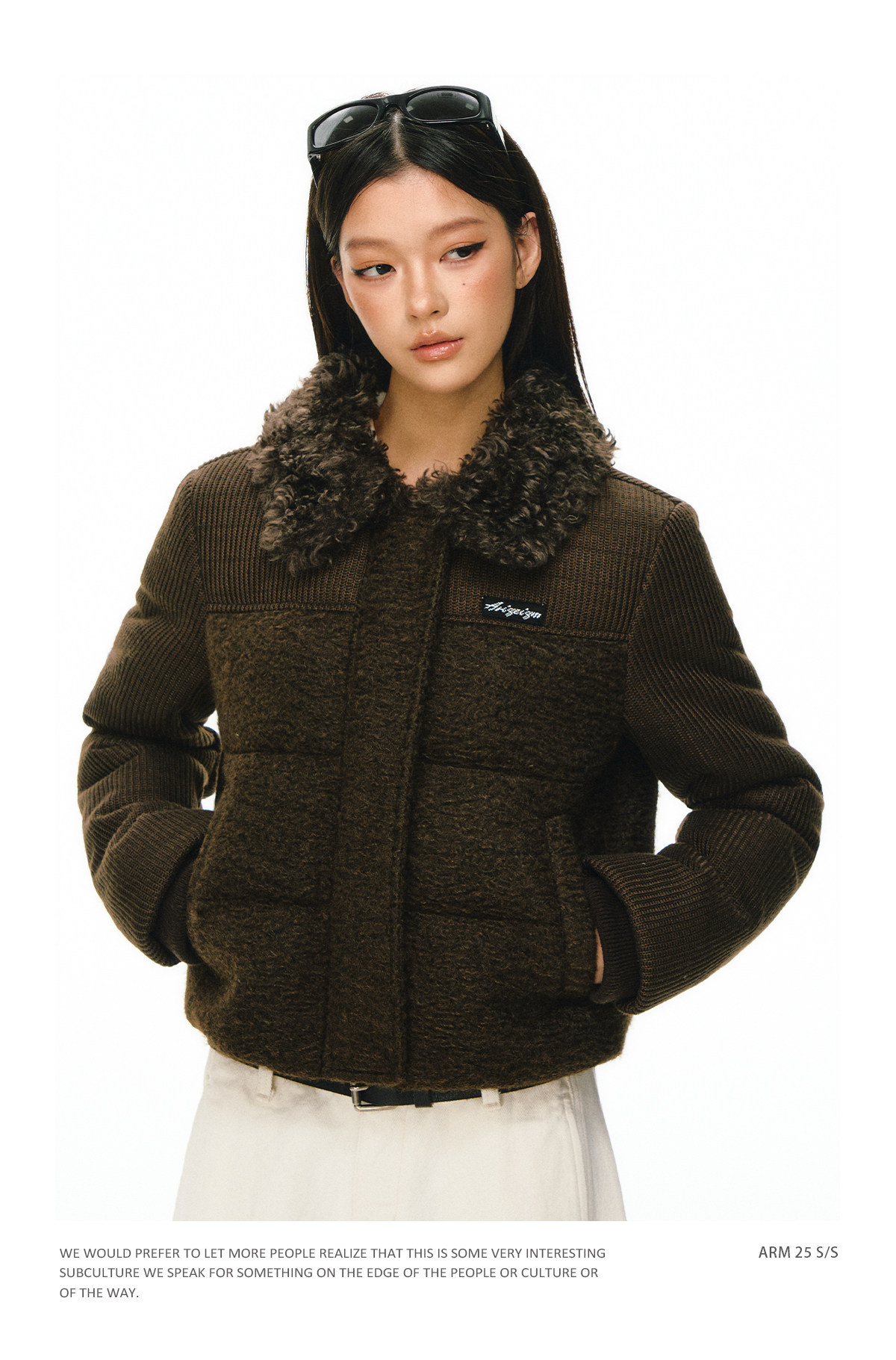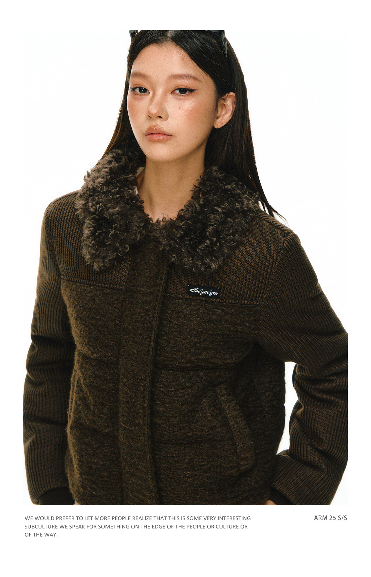 Ariseism美式复古设计感毛领针织拼接羽绒服女冬季新款面包服外套