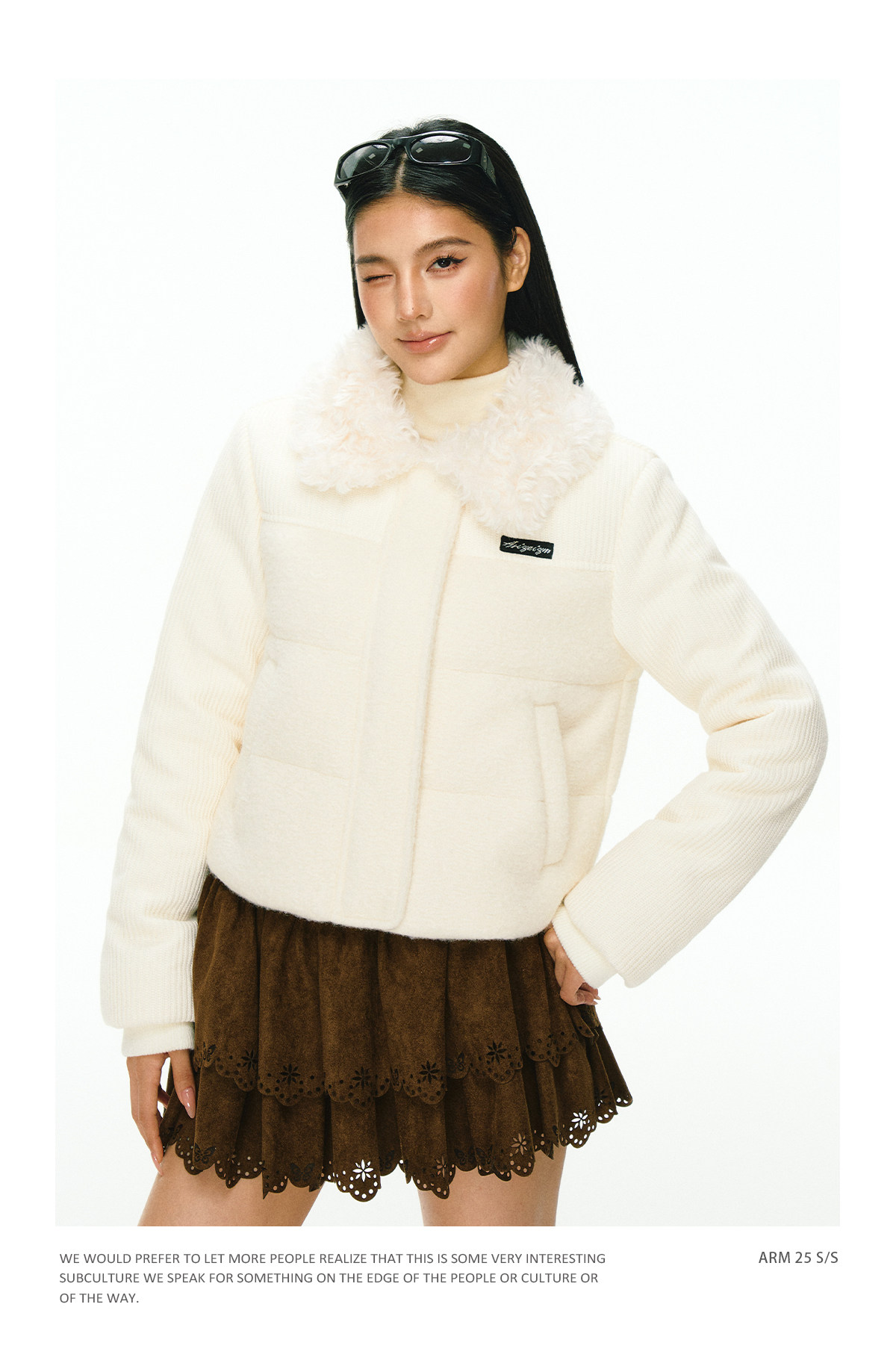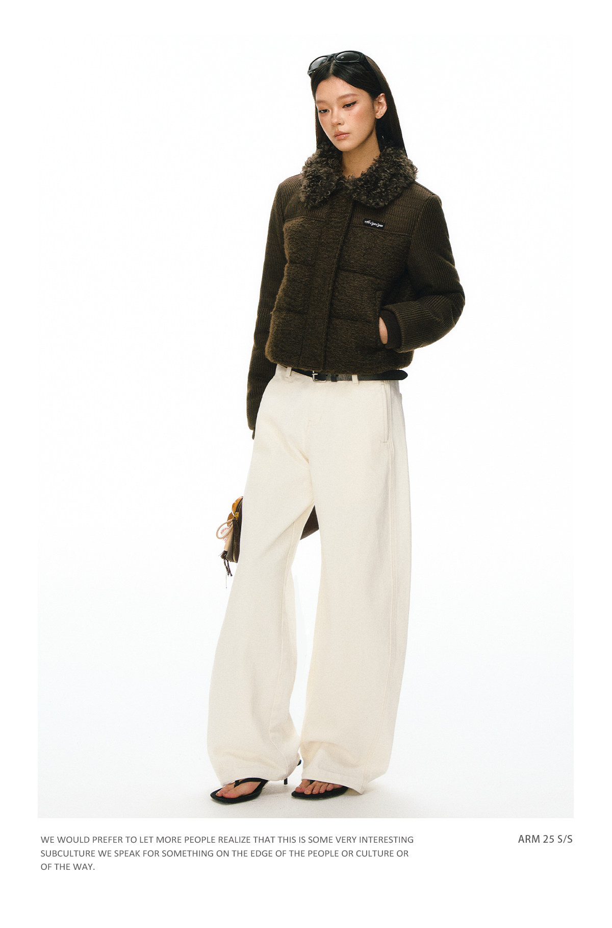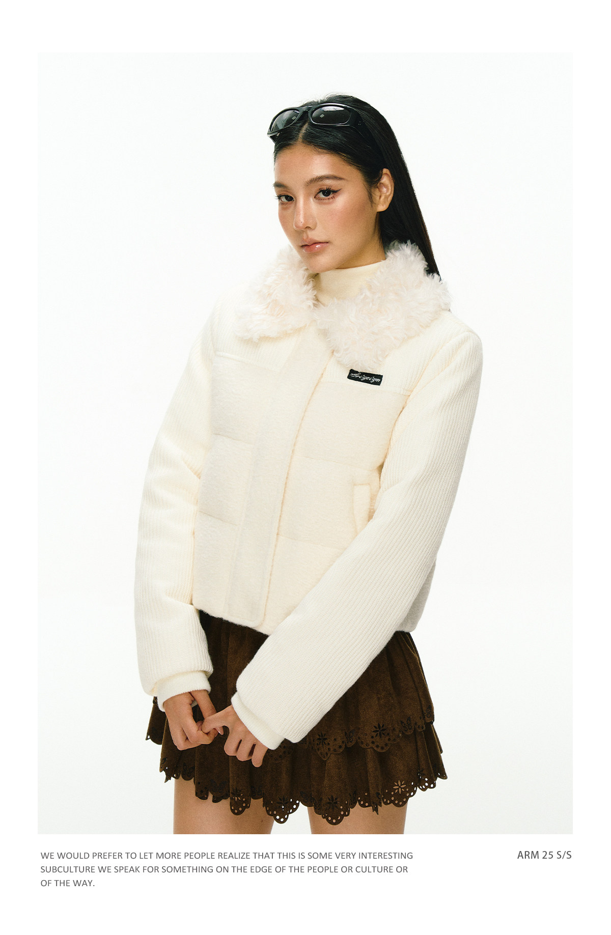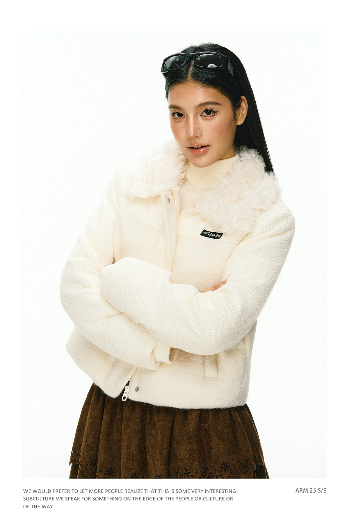 Ariseism美式复古设计感毛领针织拼接羽绒服女冬季新款面包服外套