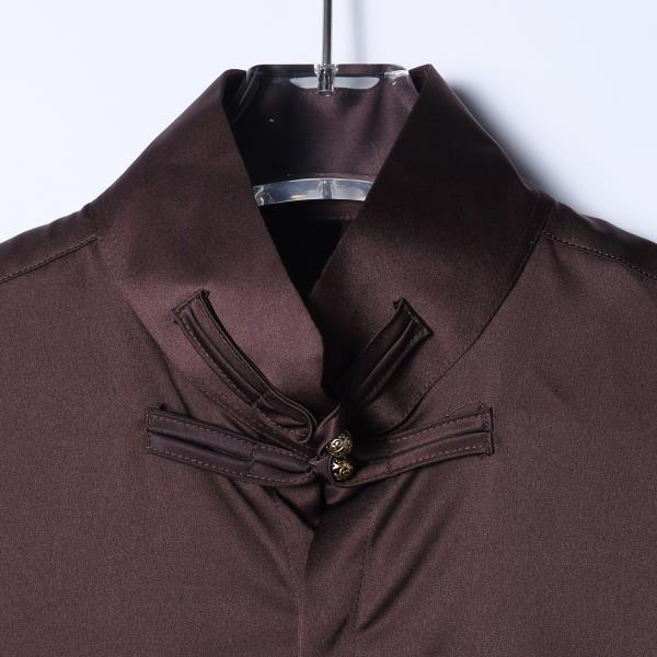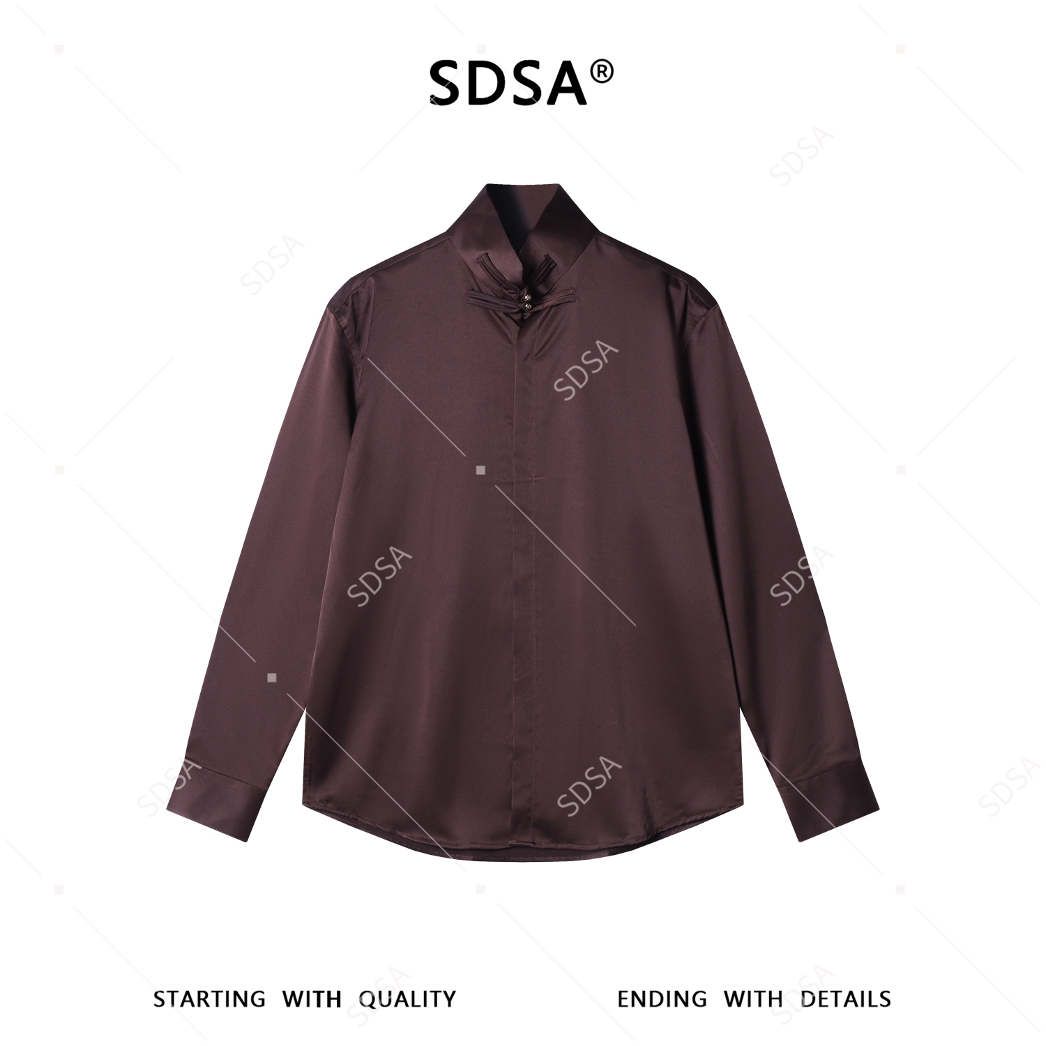 SDSA男装2026新款高贵轻奢新中式纯色盘扣立领长袖衬衫百搭时尚