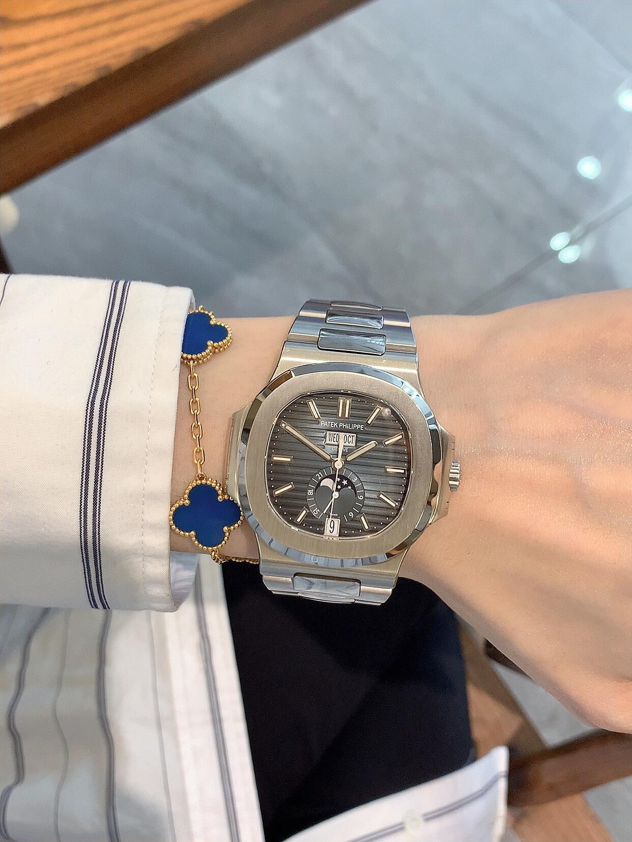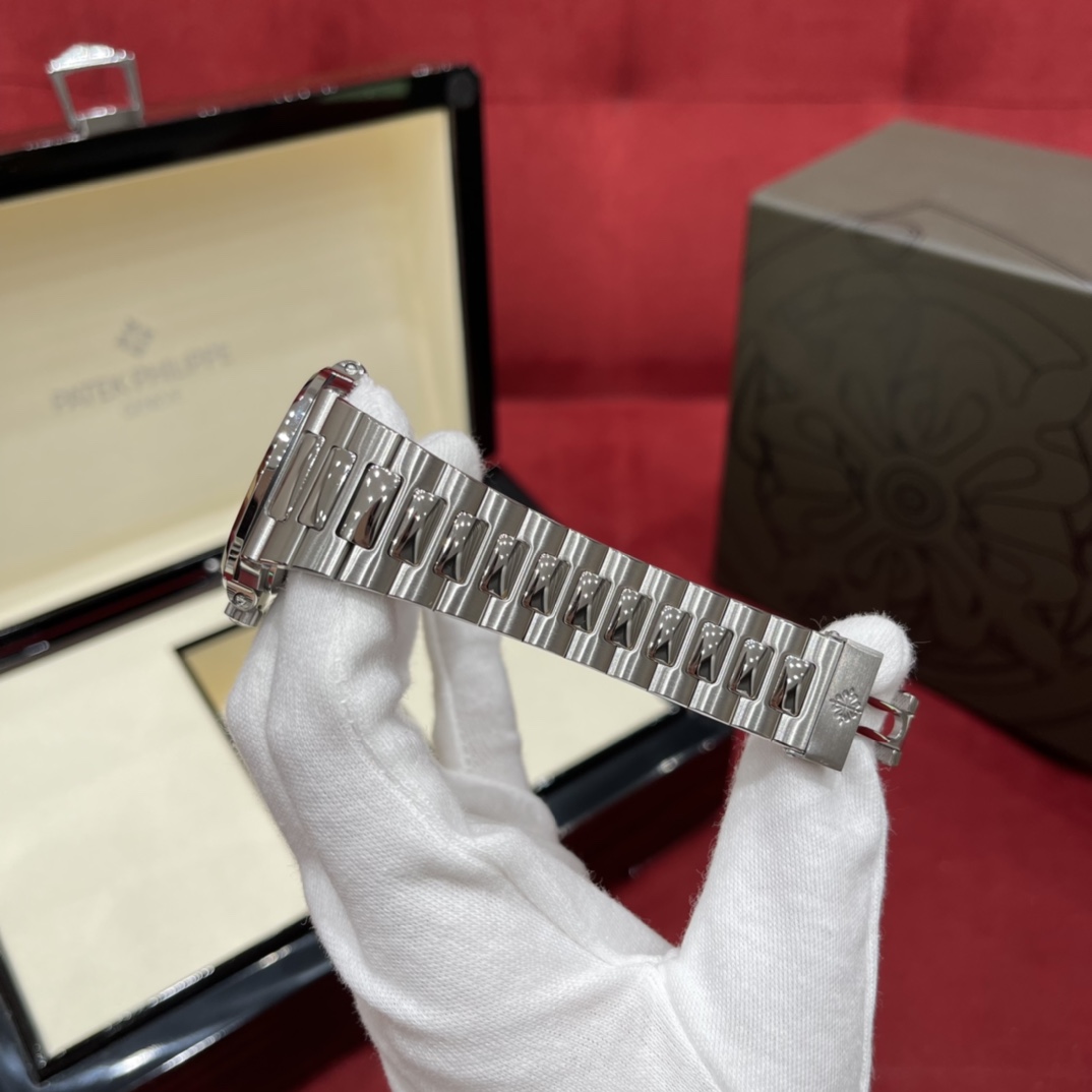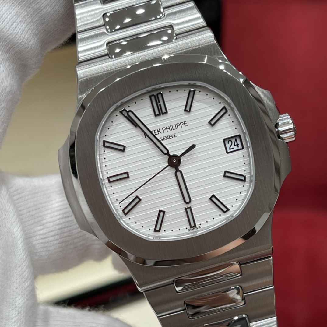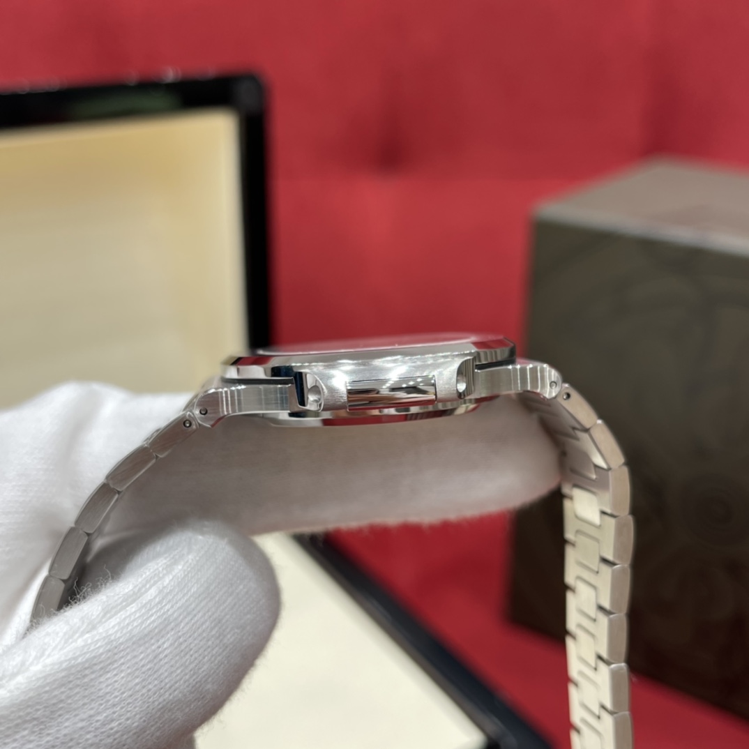 百达翡丽 运动优雅系列5711/1A-011 热度只增不减的鹦鹉螺白盘!已停产 采用原版324 S C机芯,刻字清晰不磨损,纹理细腻,非常精致!瑞士自动陀片,超精密轴承,做到百分百降噪音效果~ 白色方形表盘,设计简单又经典,整个表盘没有多余的成分,银色精钢表带,折叠式表扣,实用耐看,颜值也很特别,简单也是一种美~ 夜光亮度特别赞,可以说挑不出任何毛病👌🏻想要的效果都做出来啦!日历窗口做了水平正位,不会出现偏斜遮挡,手雷调校时间和上链的手感舒适无比,深度还原ZP! 尺寸:40mm