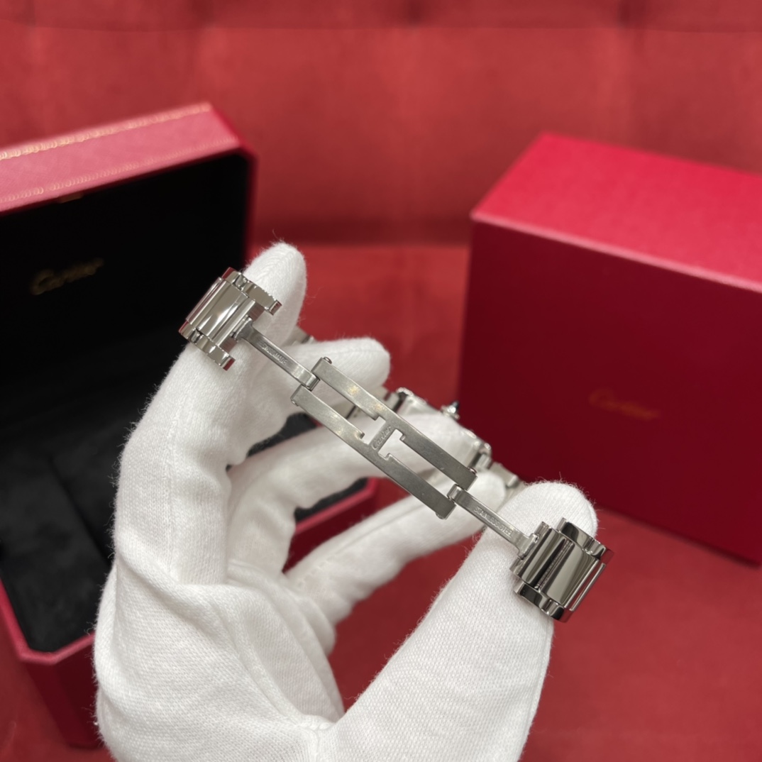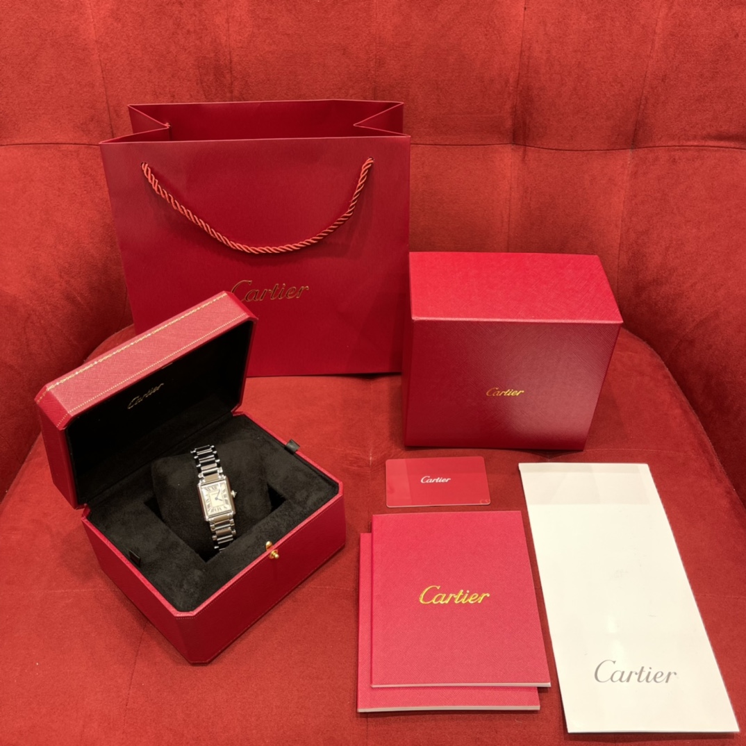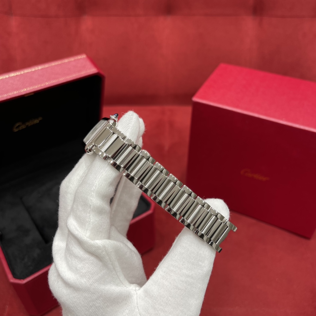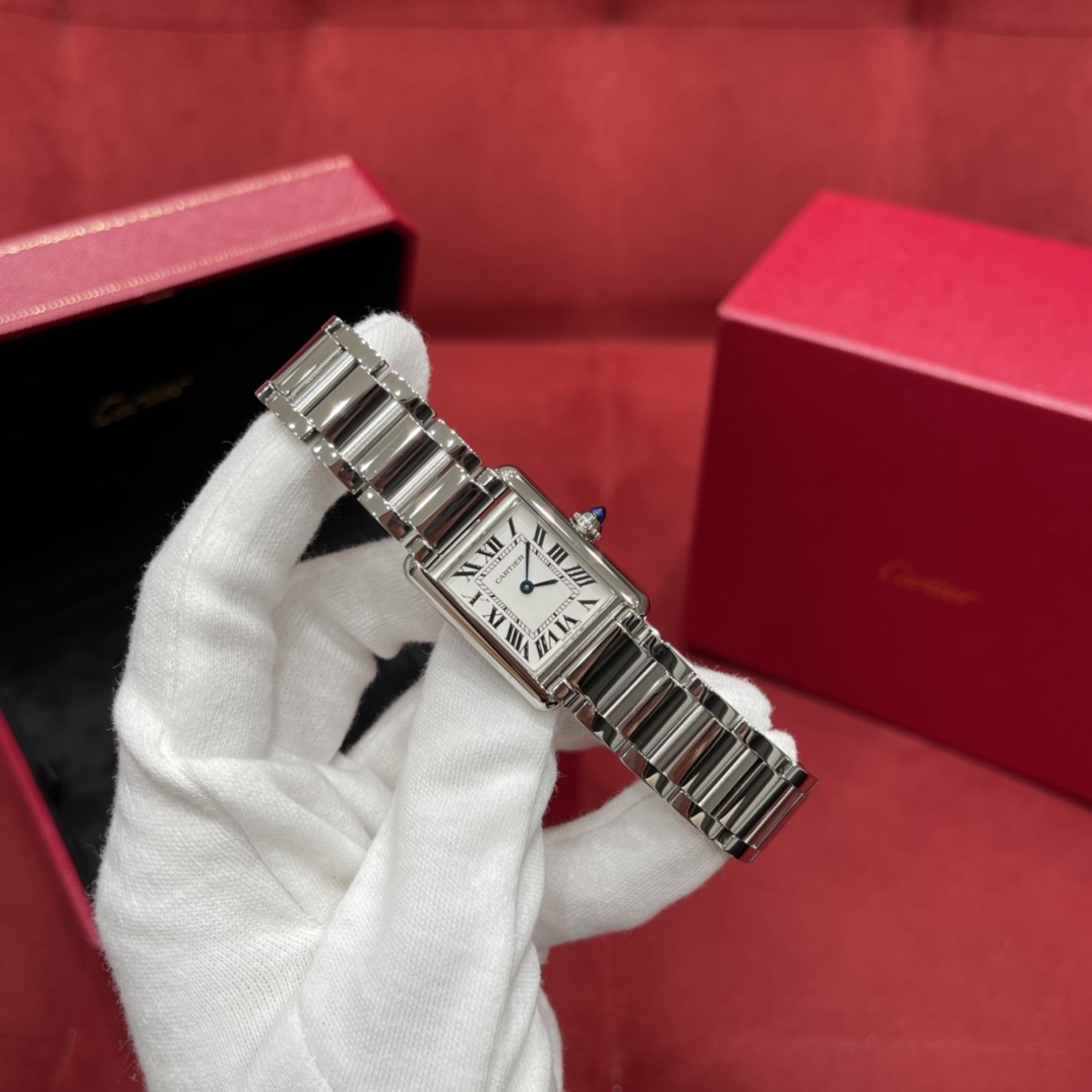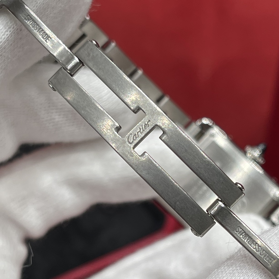 🏷️坦克系列WSTA0052(中号) 原版石英瑞士进口超薄高效能机芯 # 采用精钢表壳,珠光镀银白色方形表盘,瑞士剑形指针,特别完美,针轴光亮!针轴也是符合瑞士工艺要求,印字特别清晰,刻字完美,防刮损防指纹蓝水晶玻璃,生活防水。 表冠纤细,倒角打磨的特别精细~镶嵌一颗凸圆形合成尖晶石! 精钢表带-可替换式金属表链,与原版一致的“Quick Switch”手动快拆表链装置 拆卸简单易操作。 尺寸:33.7x25.5mm