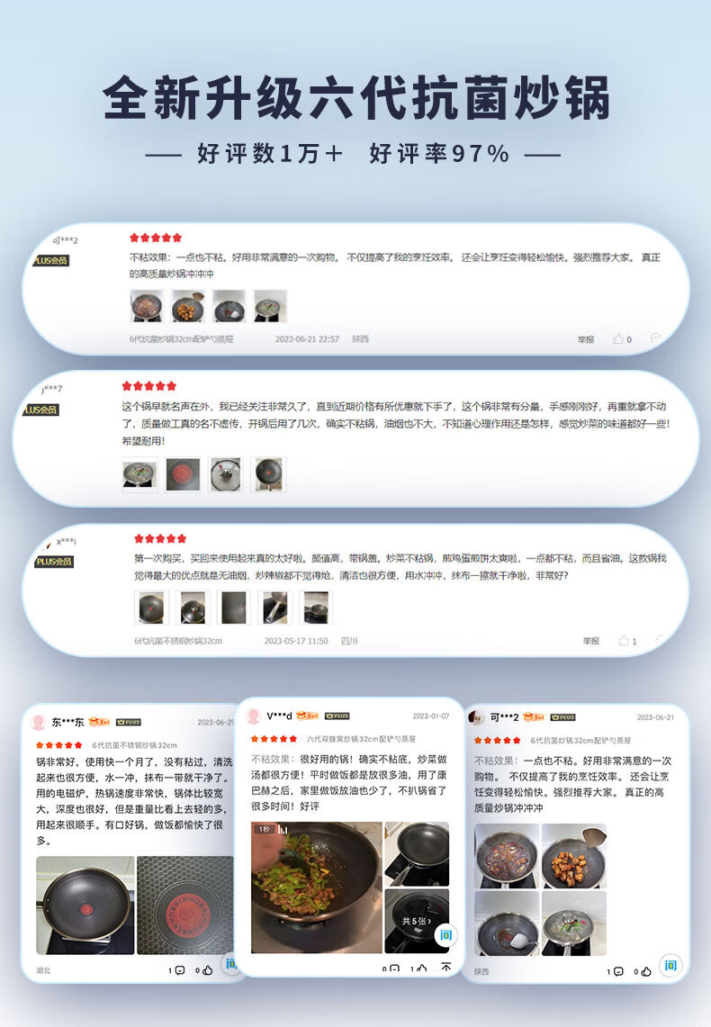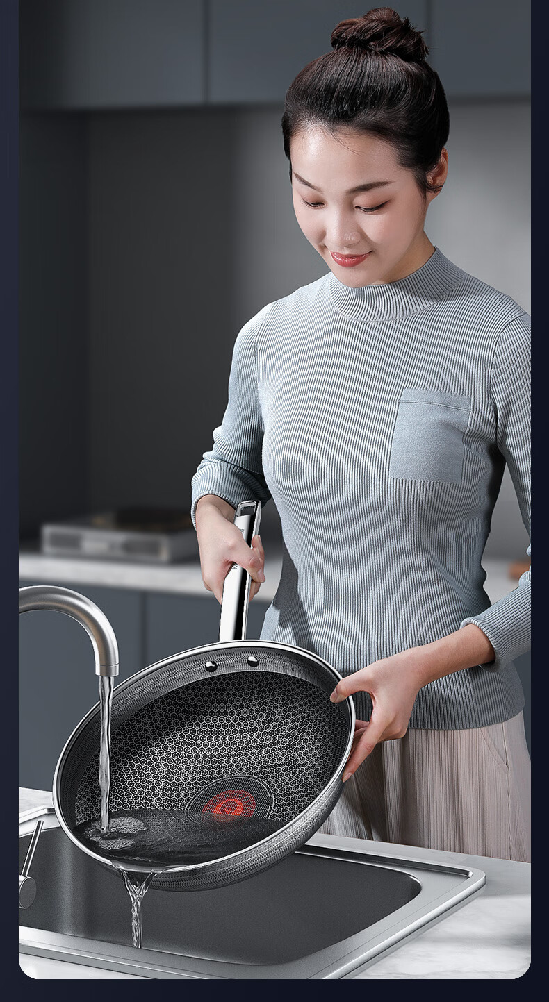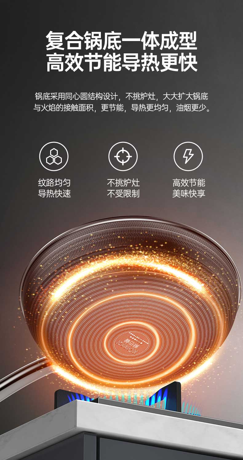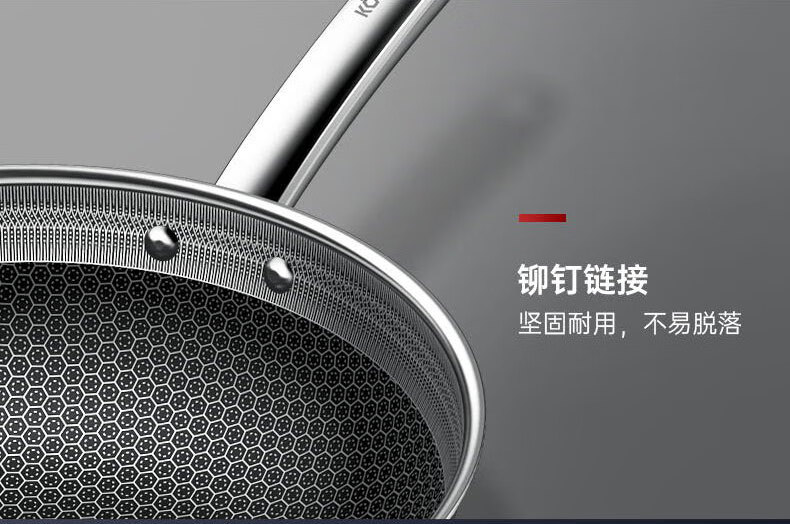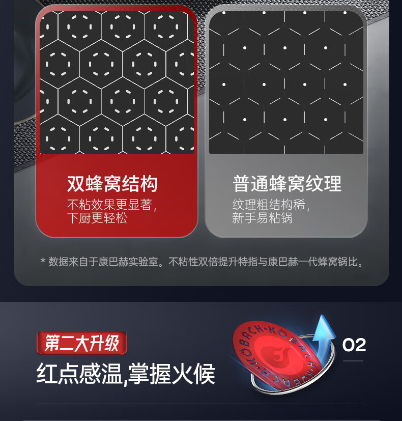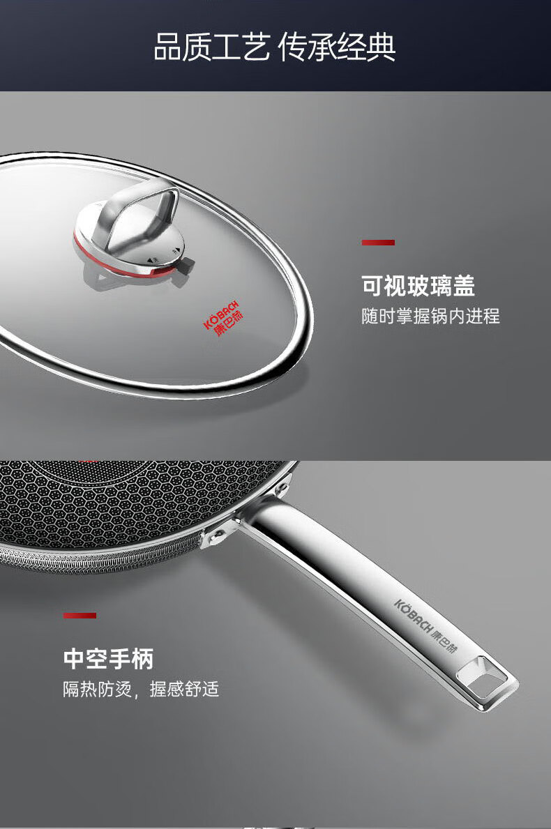 康巴赫第六代炒锅不粘锅抗菌不锈钢炒菜锅双蜂窝锅红点32cm电磁炉燃气灶