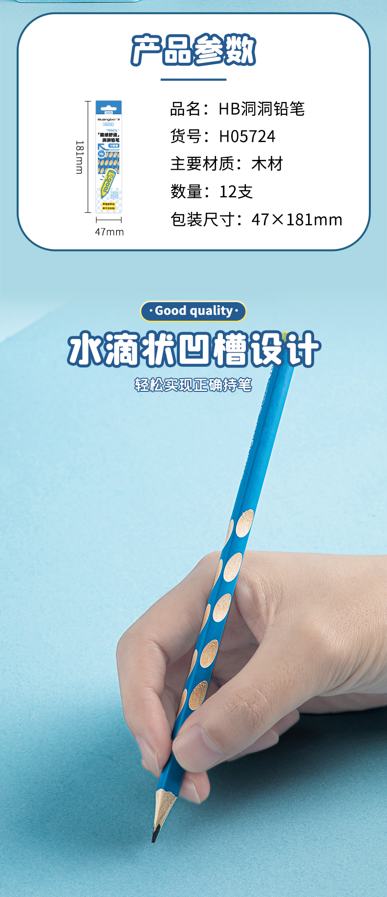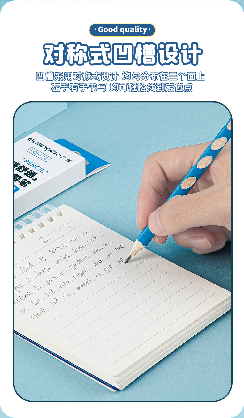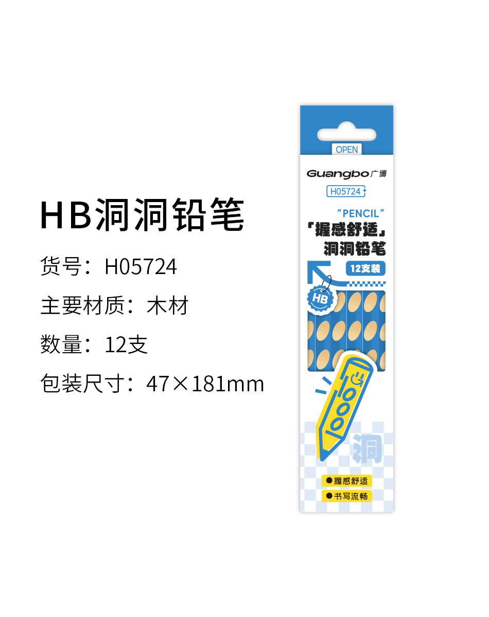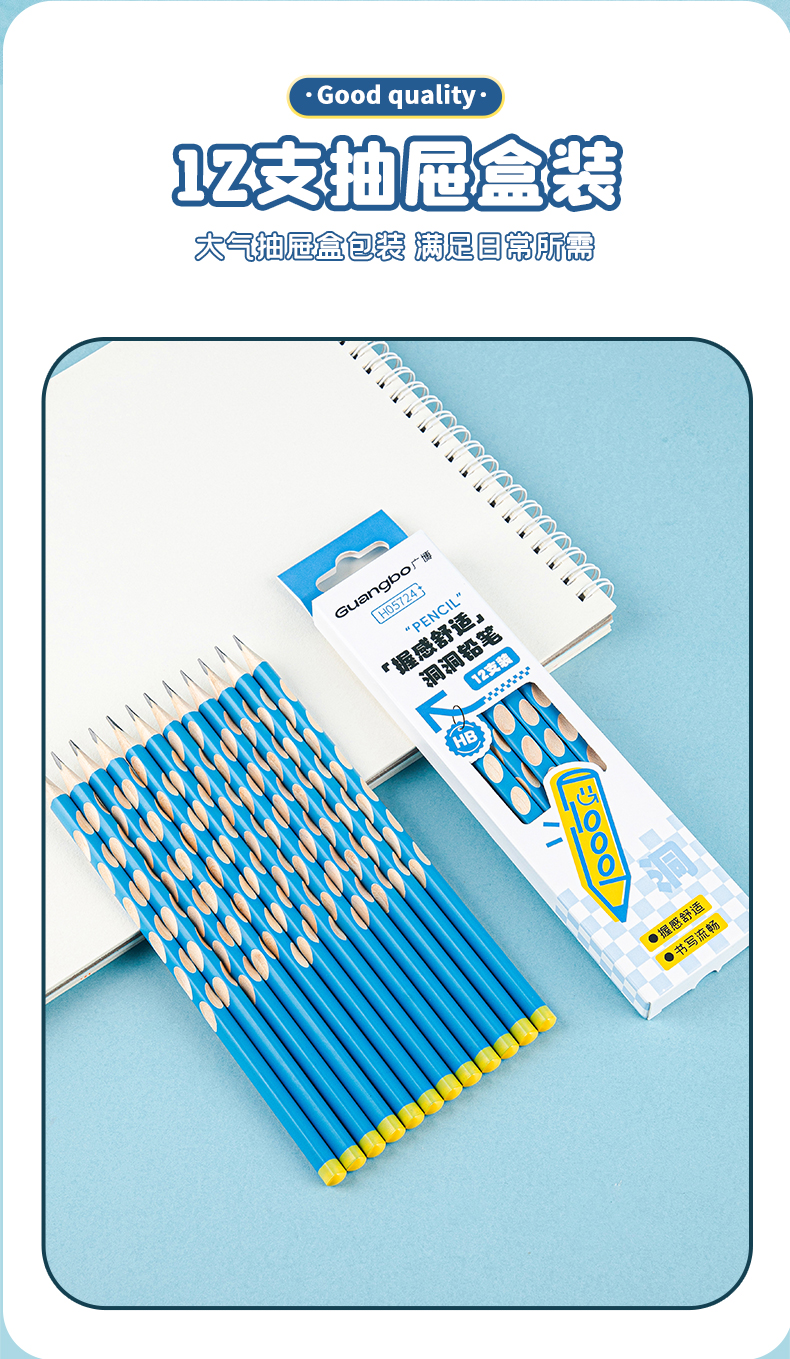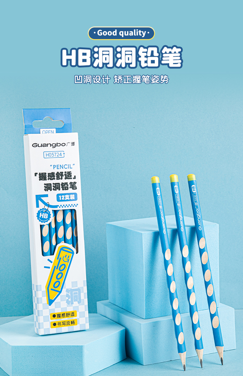 广博新领航系列开学季文具三角洞洞笔HB 12支