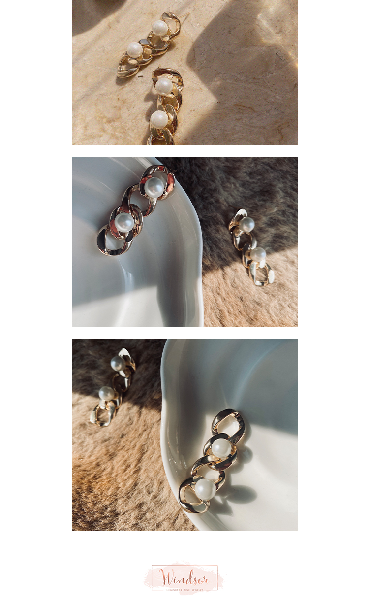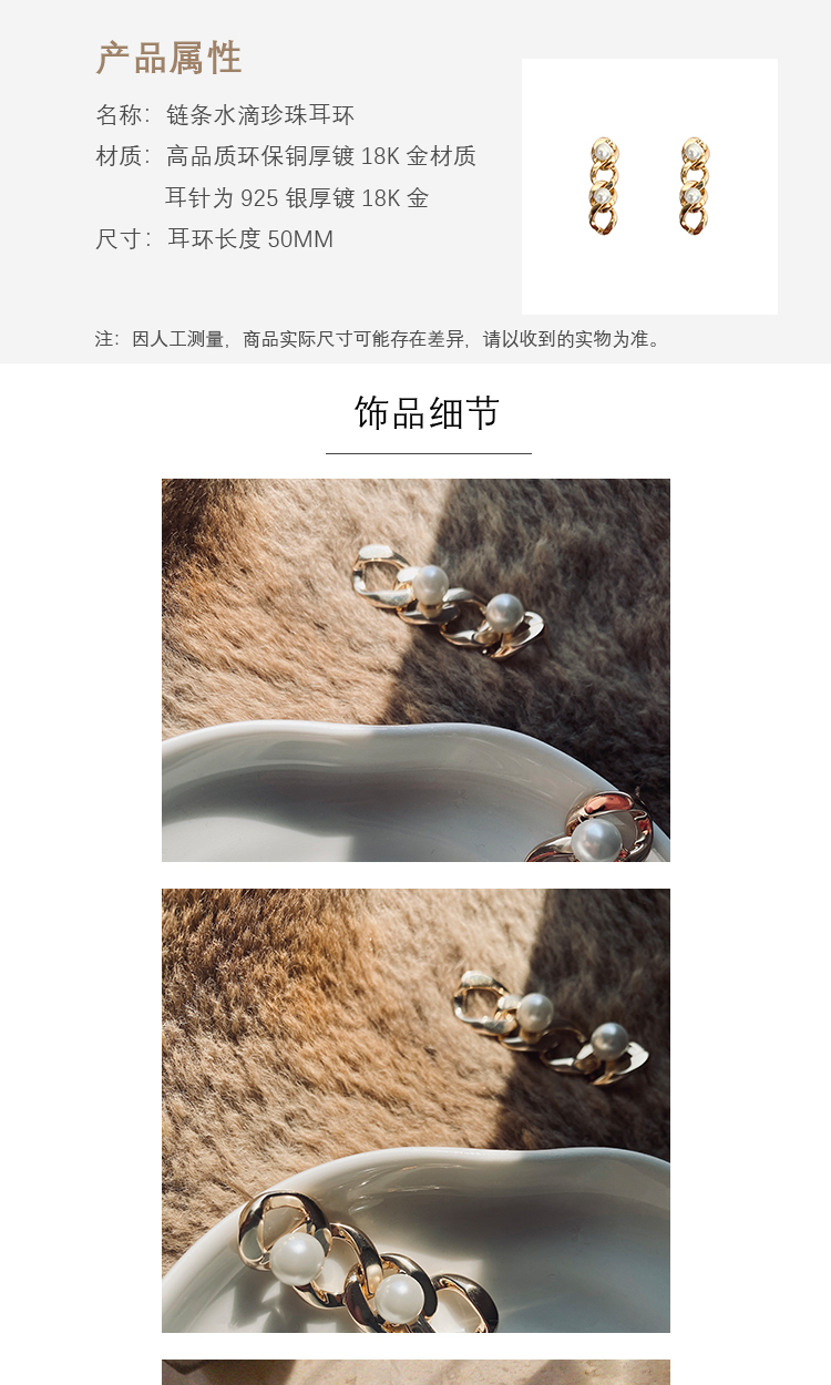LHWINDSOR 链条水滴珍珠耳环高级感长款气质耳坠ins潮耳饰