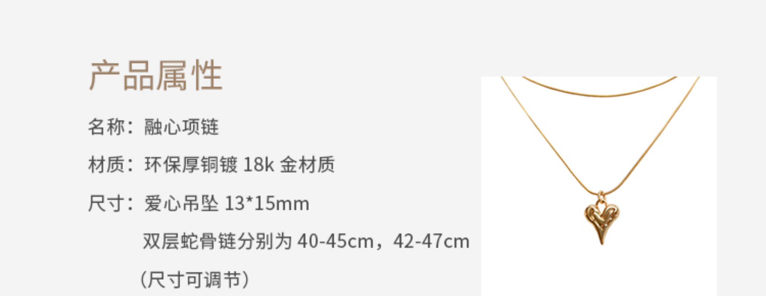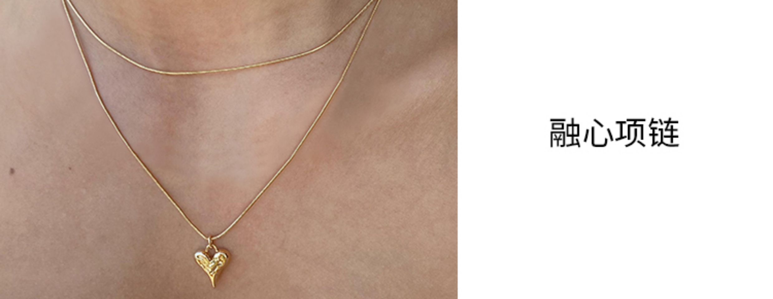LHWINDSOR 原创设计双层蛇骨融心项链浪漫主义爱心金银色
