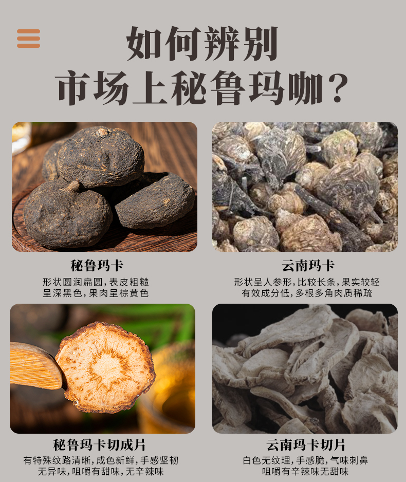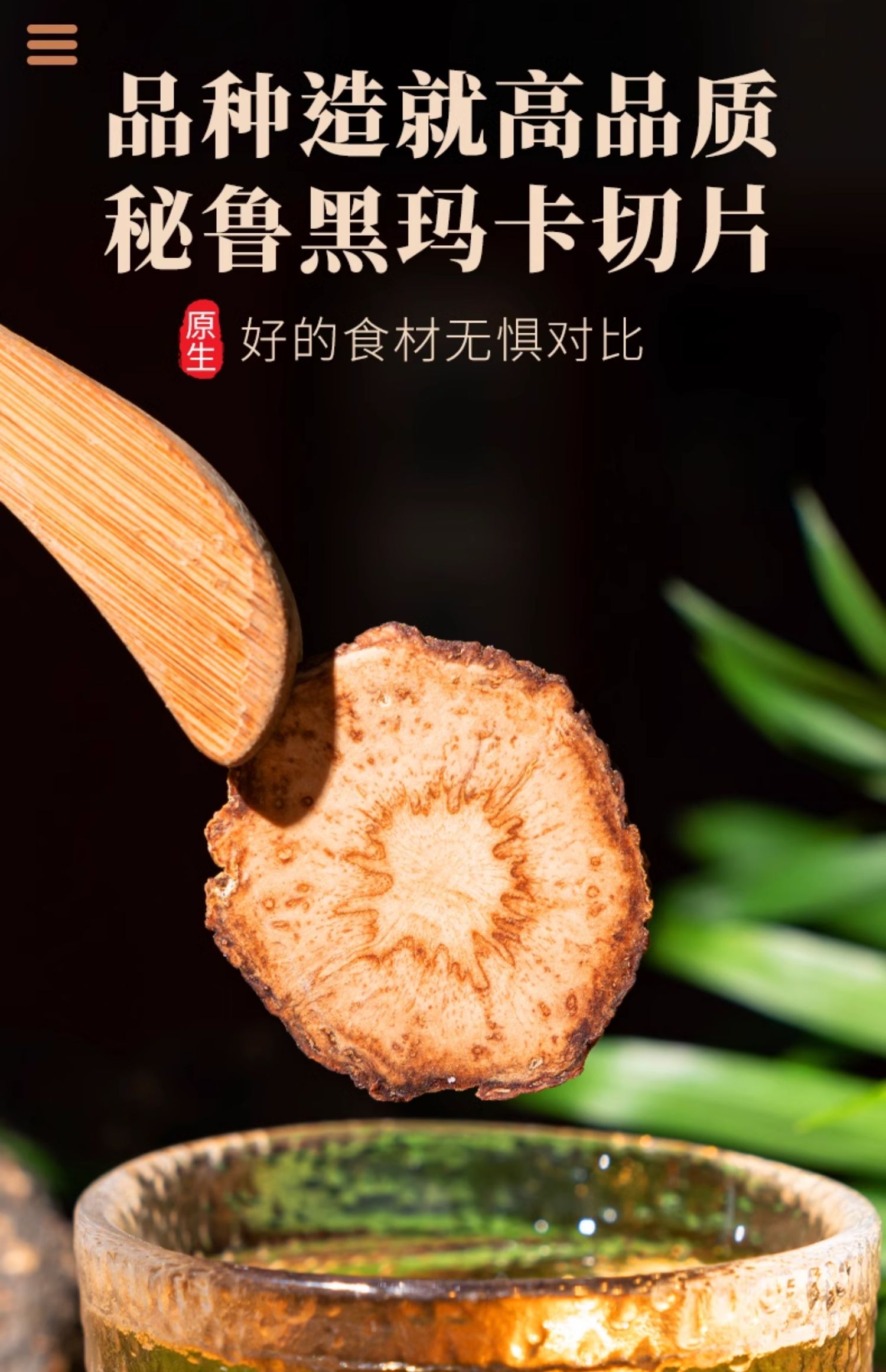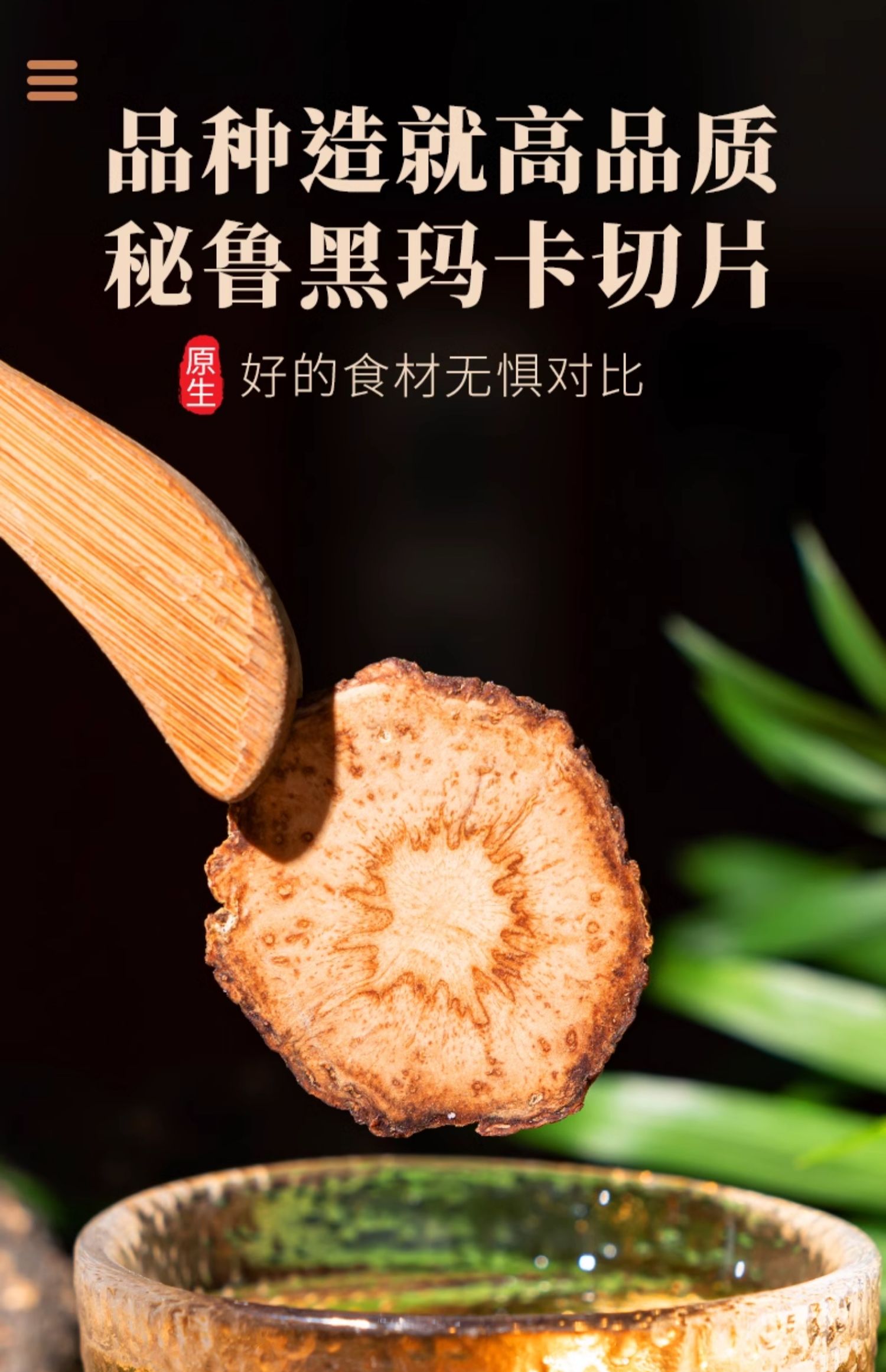1.黑玛卡也叫秘鲁人参,是出产于秘鲁境内的特有食材。含有多种微量元素、氨基酸及蛋白质;具有提高男子精子数量的作用。所以具有强身健体、补肾壮阳功效。