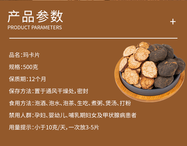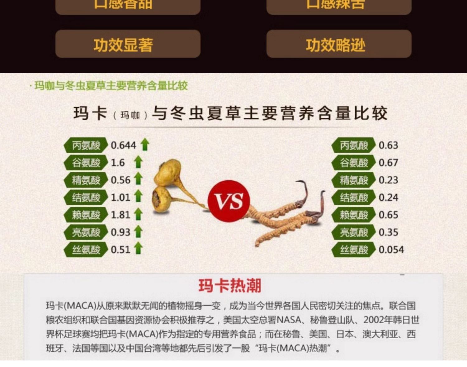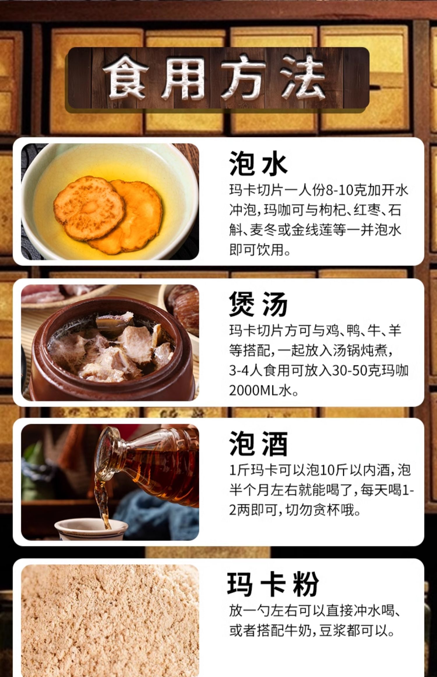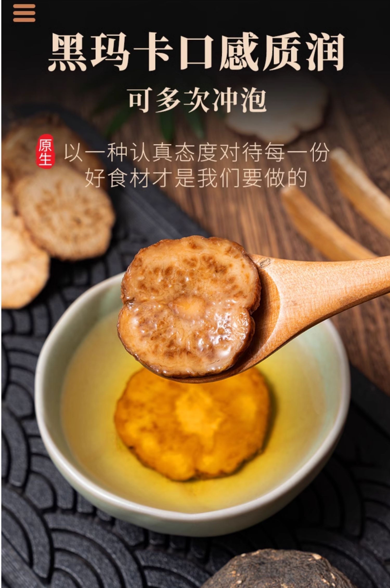 1.黑玛卡也叫秘鲁人参,是出产于秘鲁境内的特有食材。含有多种微量元素、氨基酸及蛋白质;具有提高男子精子数量的作用。所以具有强身健体、补肾壮阳功效。