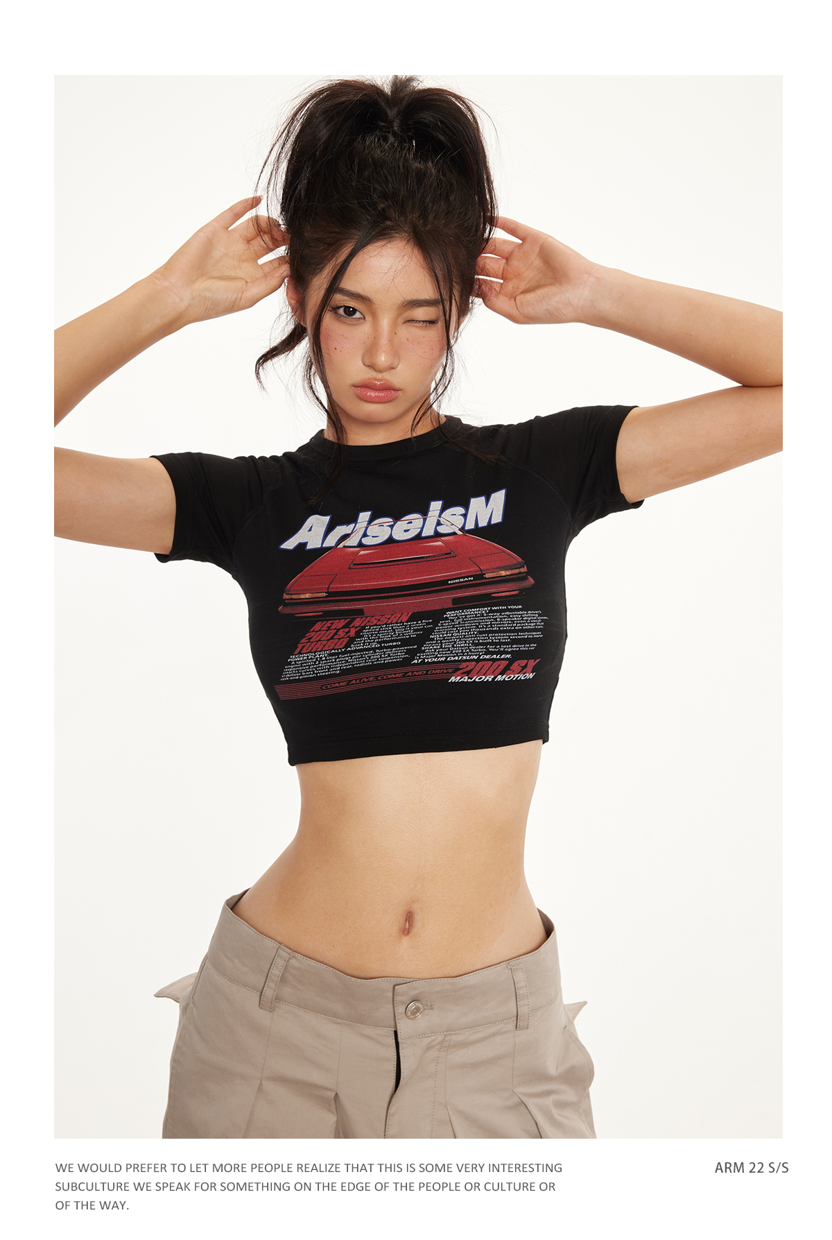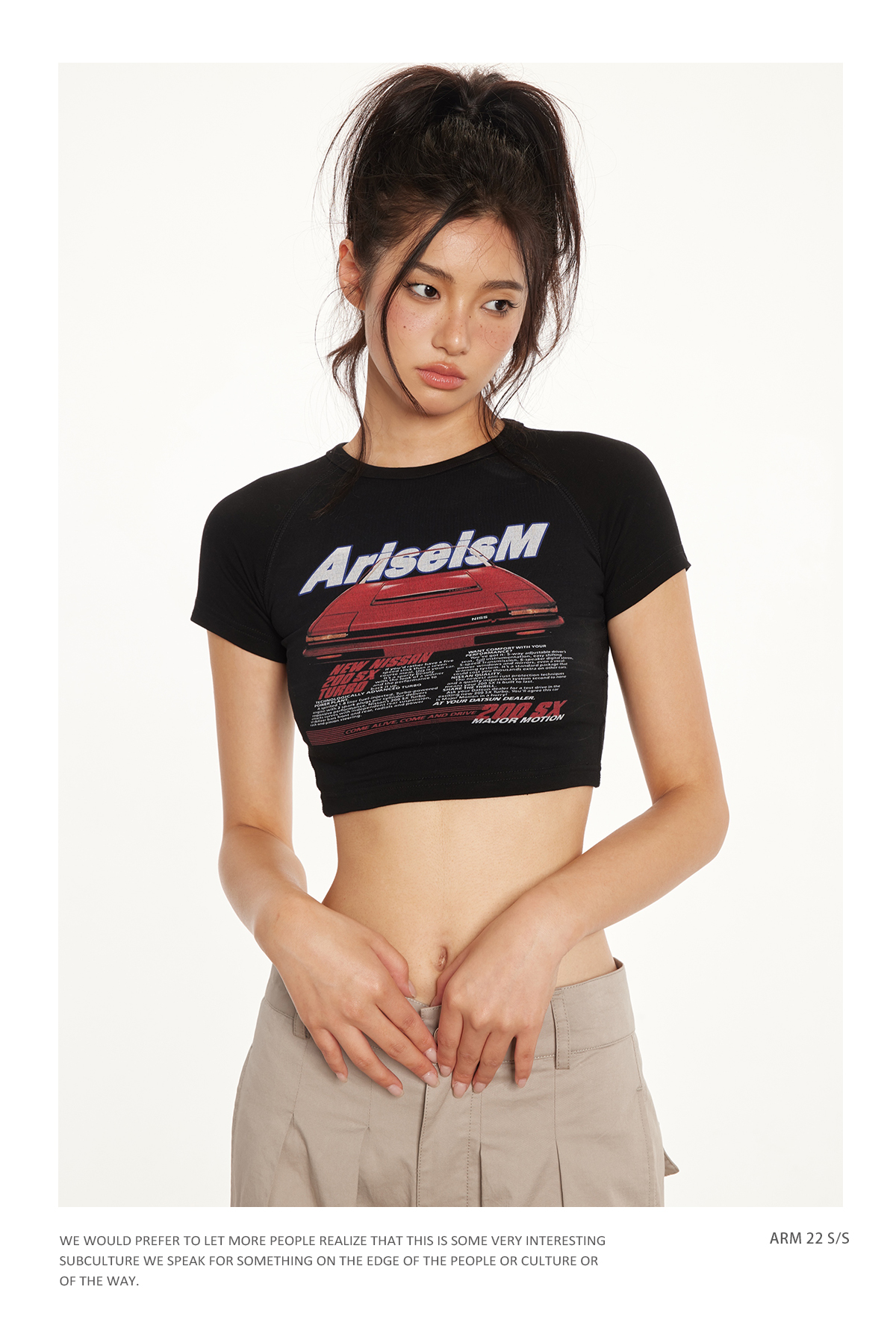 Ariseism 美式复古辣妹赛车短款上衣2025夏季新款修身短袖t恤女