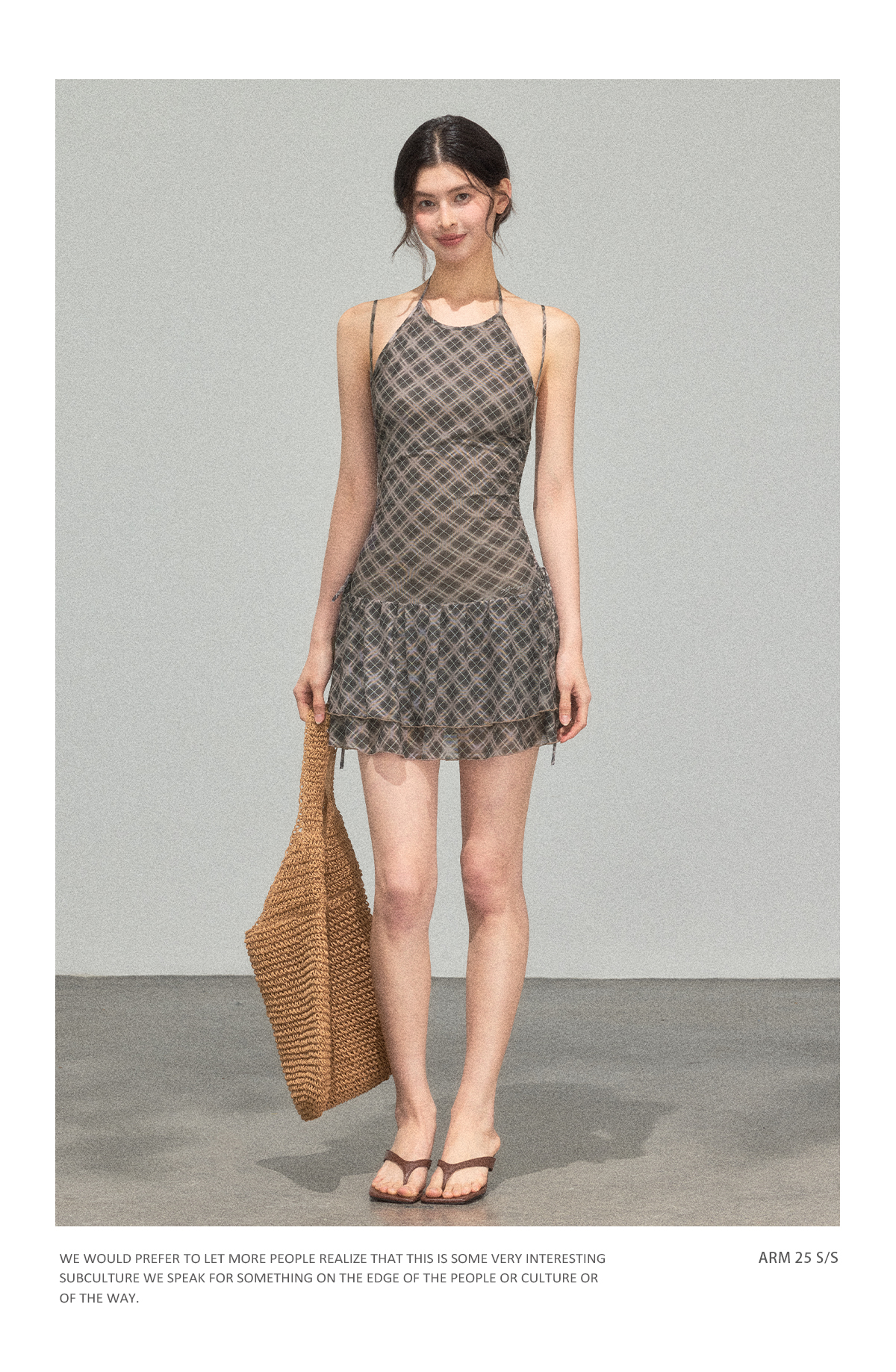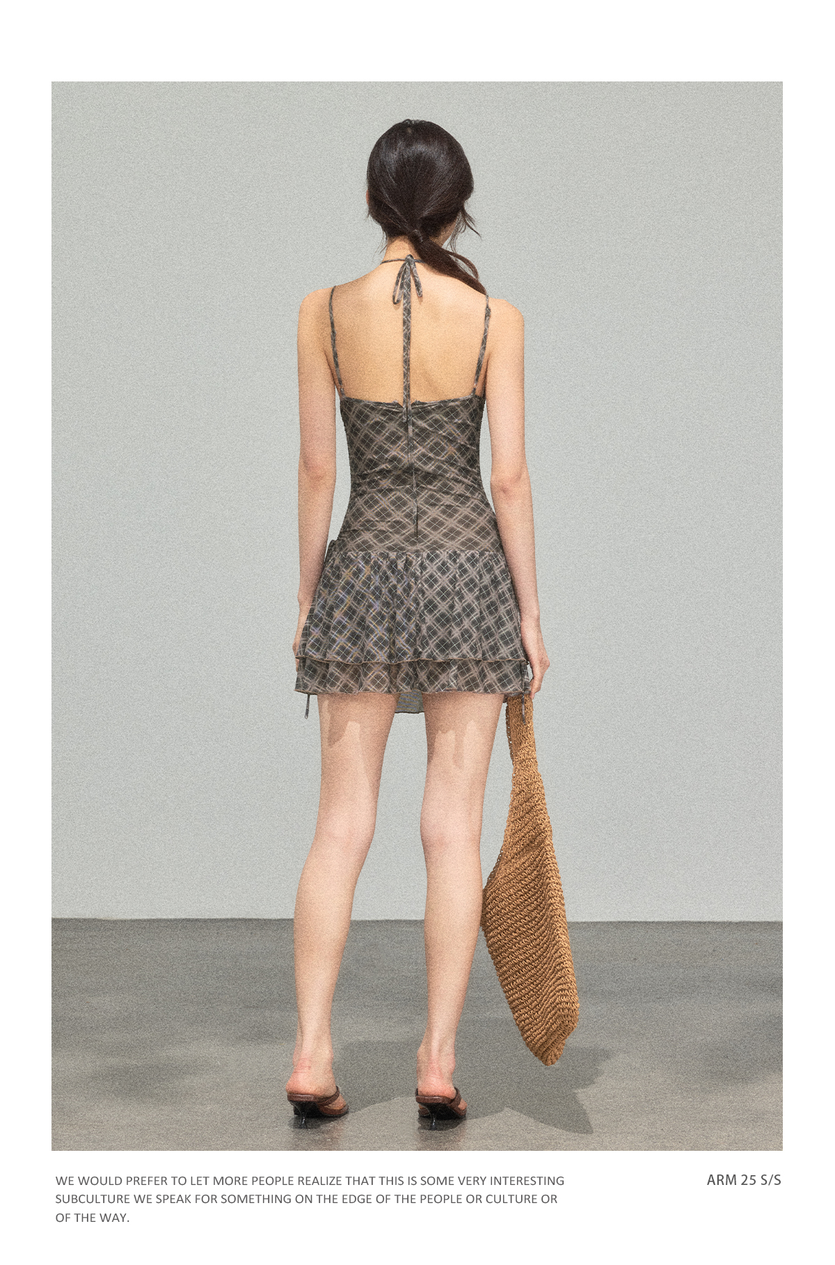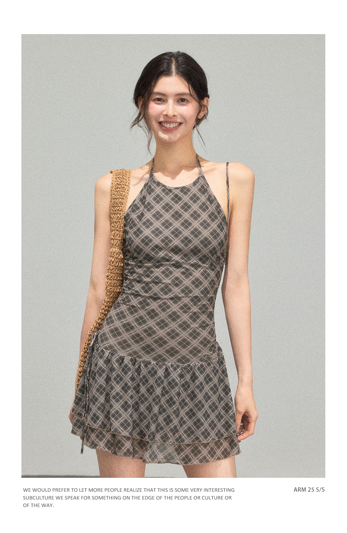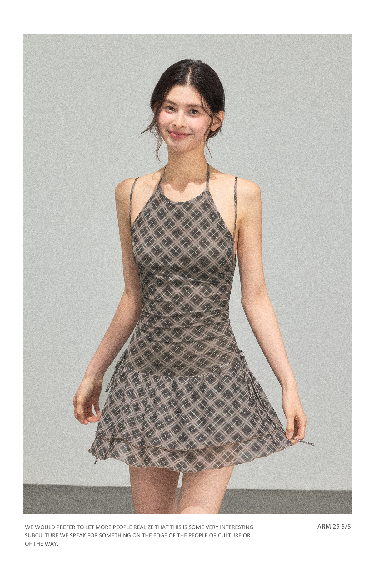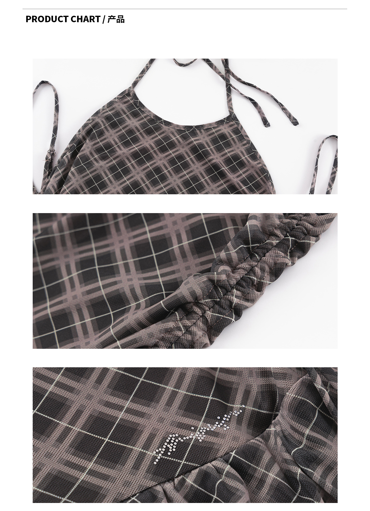Ariseism 美式复古设计感格纹挂脖连衣裙女夏季新款修身裙子