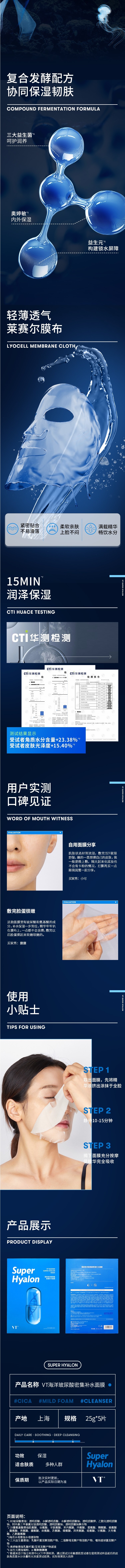 薇缔海洋玻尿酸密集补水面膜5片