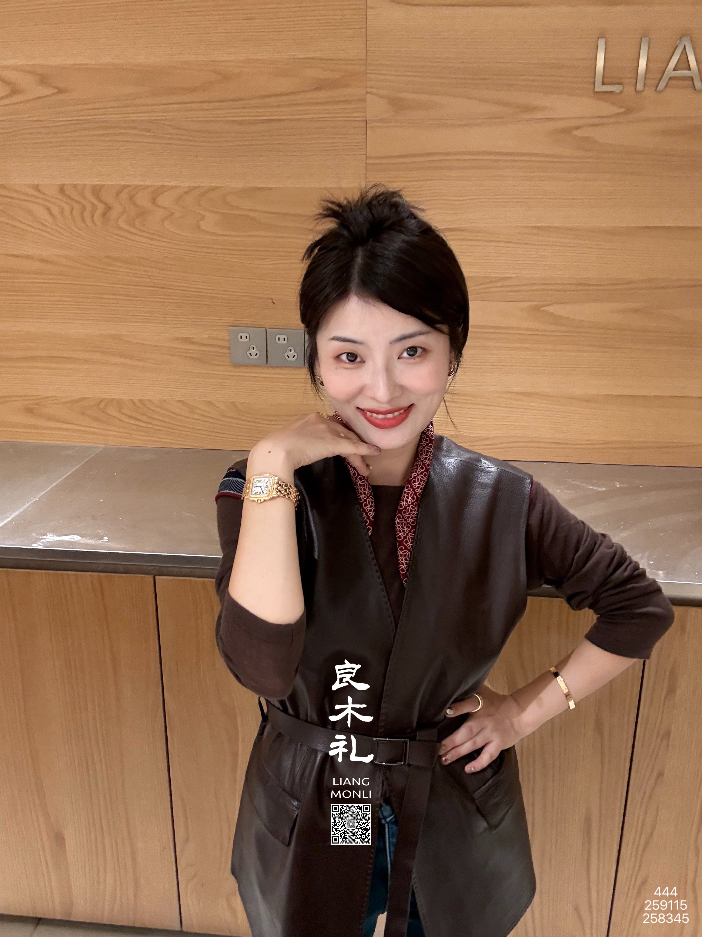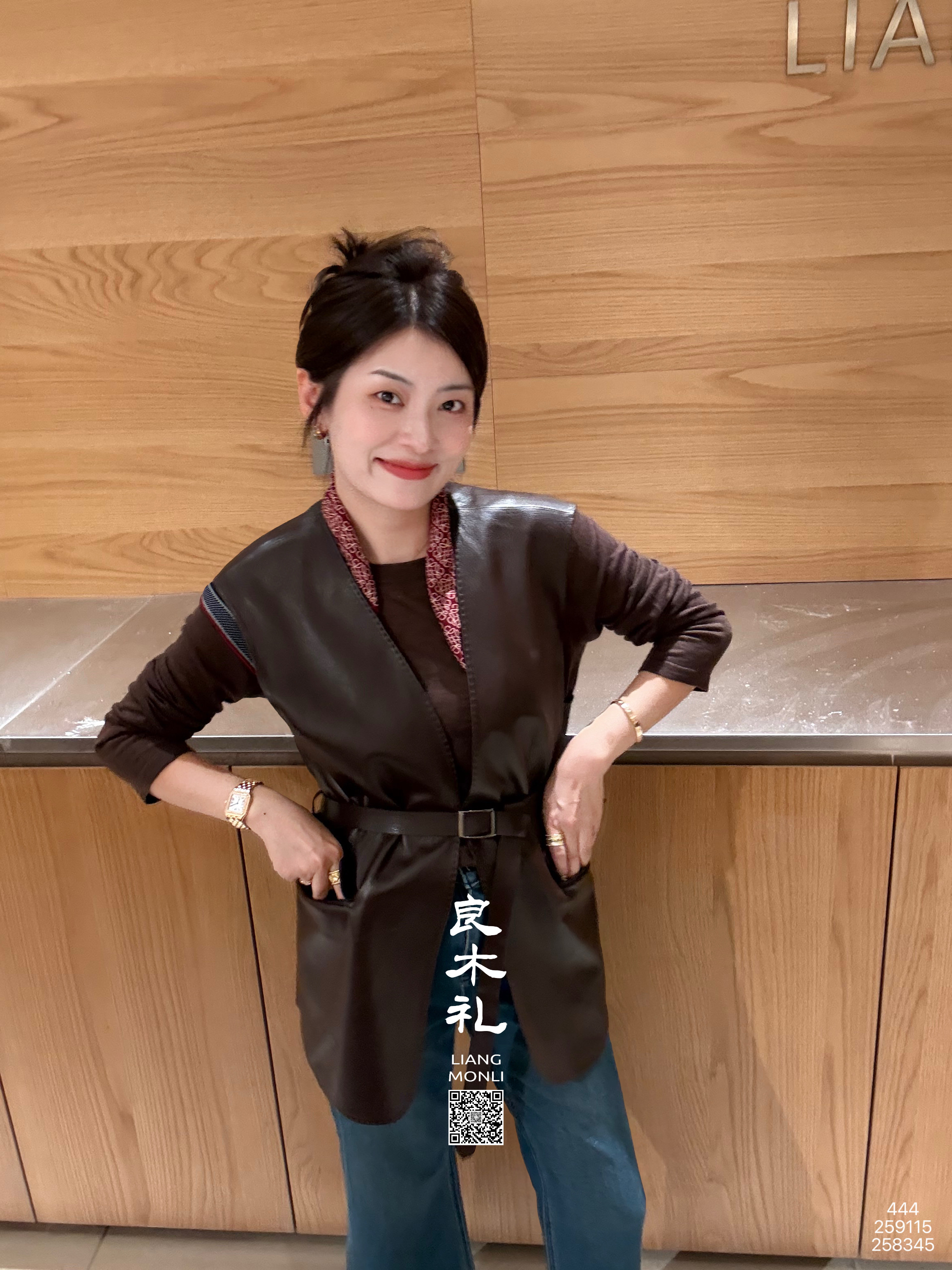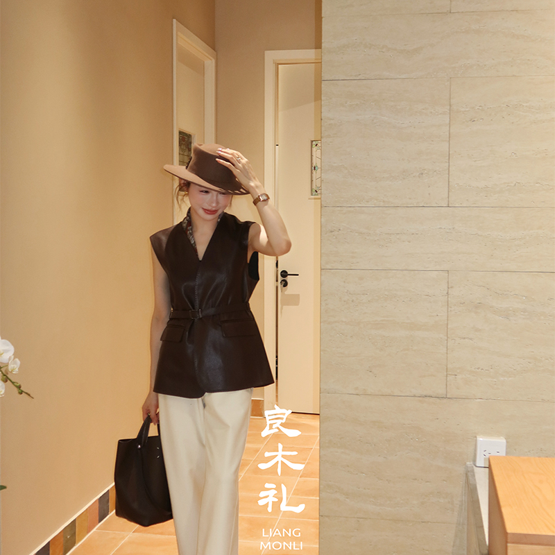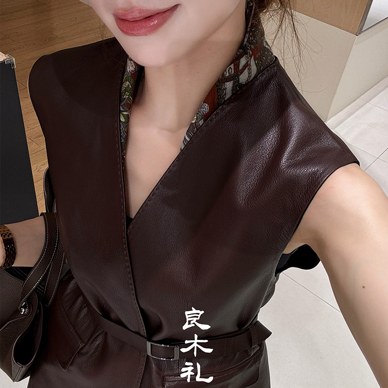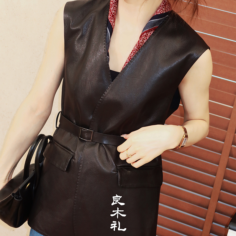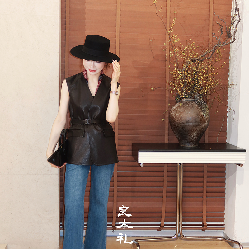 【预售7天】良木礼山羊鹿纹皮马甲(腰带)(Q259115)