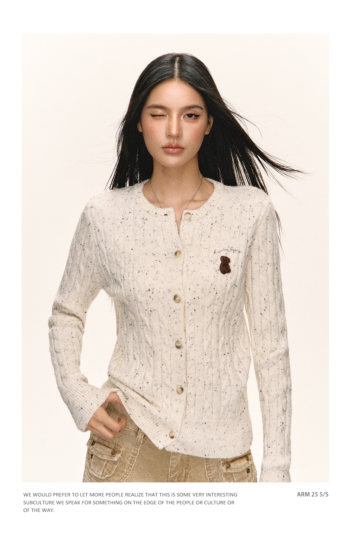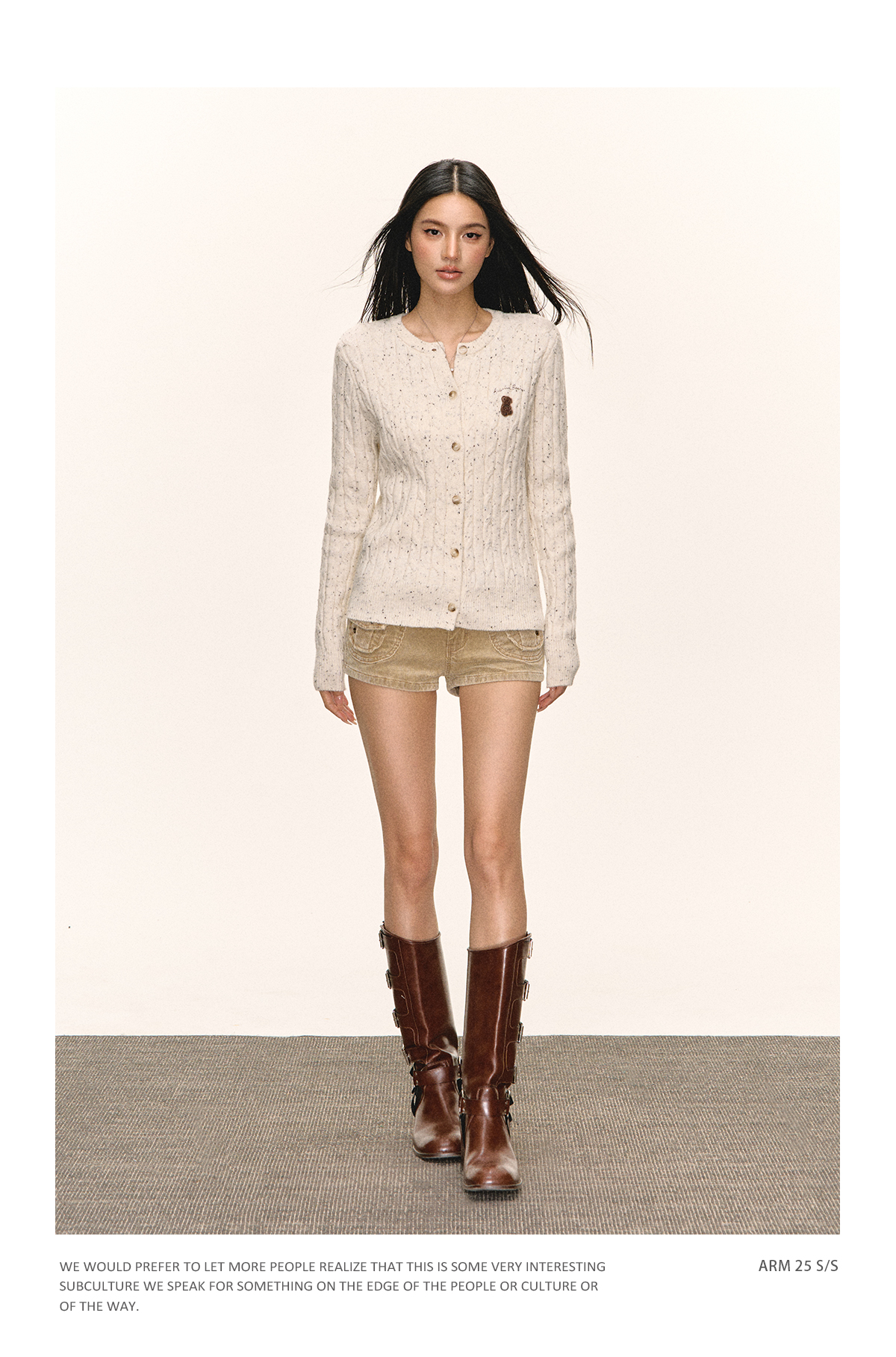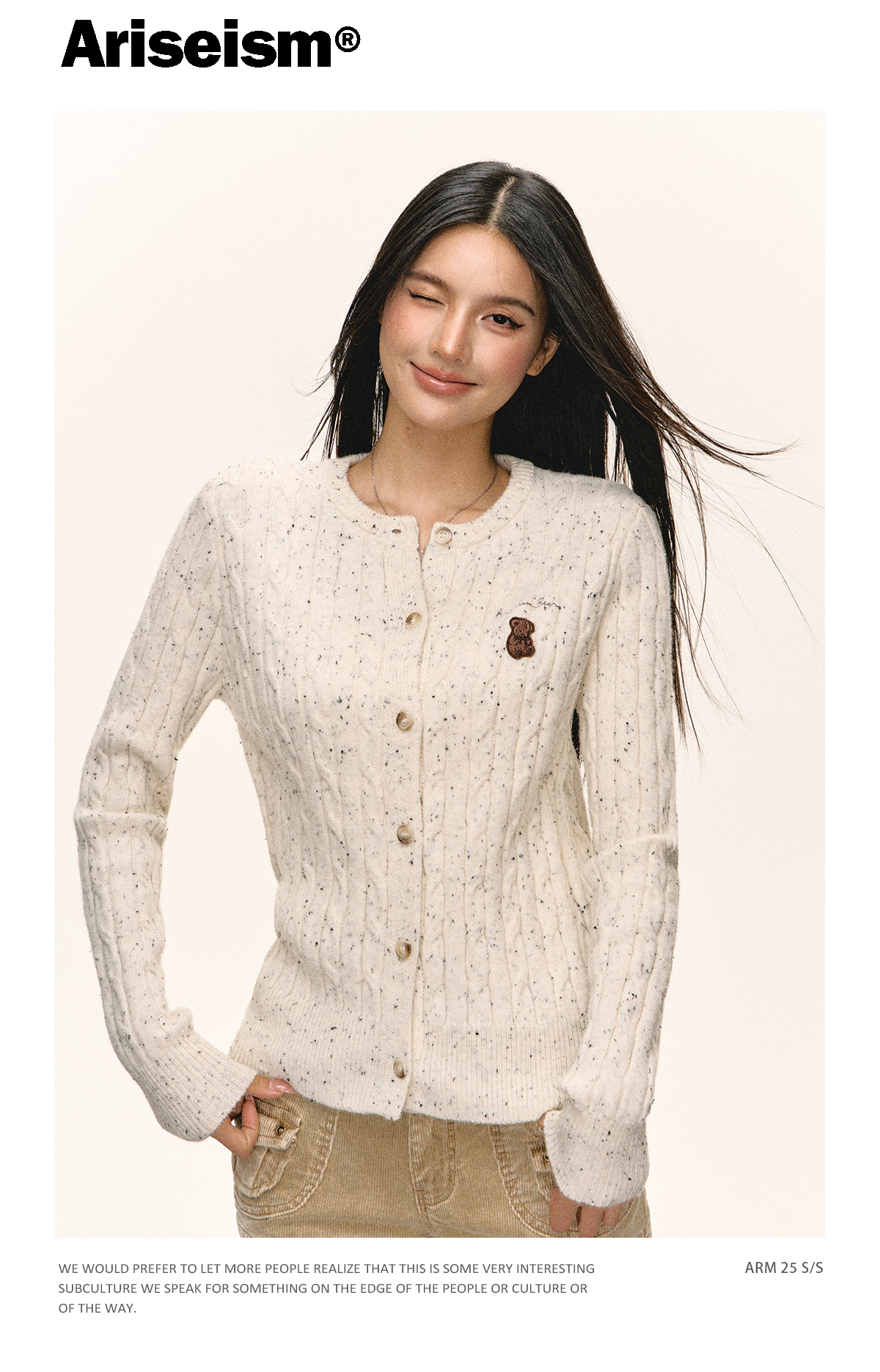 Ariseism 美式复古设计感圆领针织开衫毛衣女秋季新款修身上衣