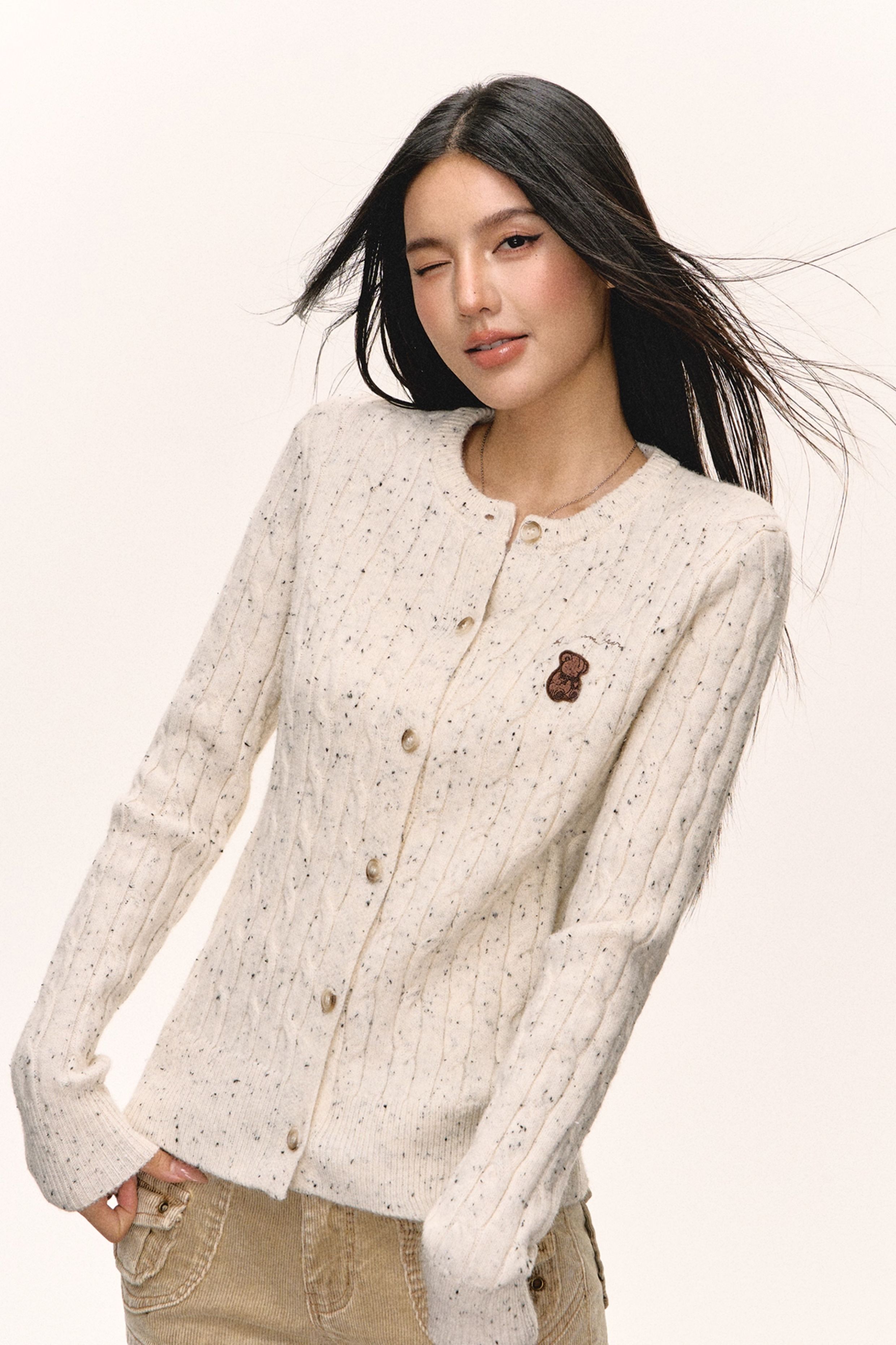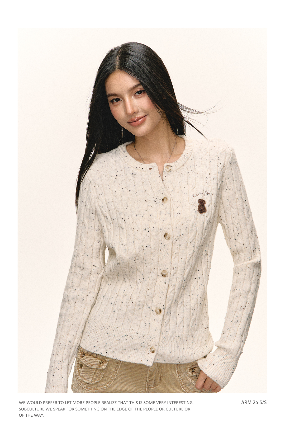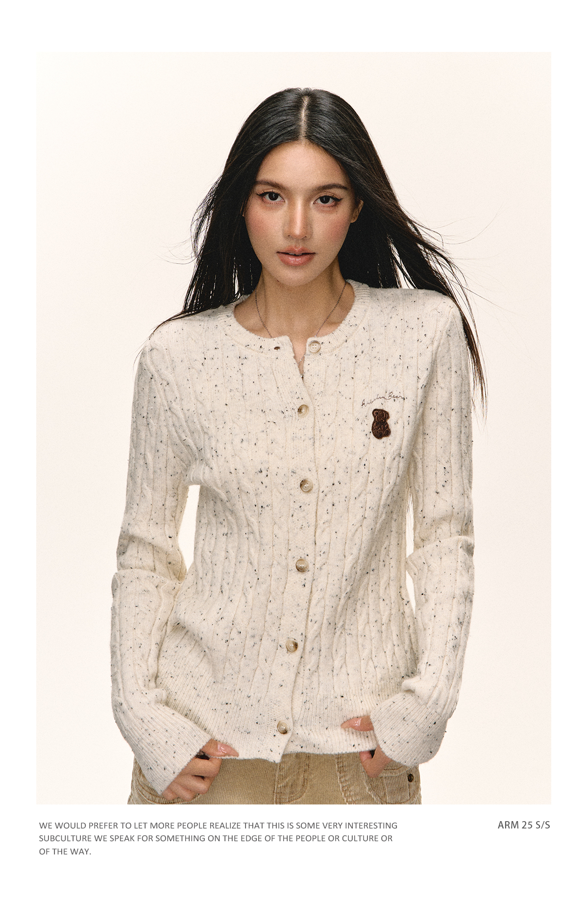 Ariseism 美式复古设计感圆领针织开衫毛衣女秋季新款修身上衣