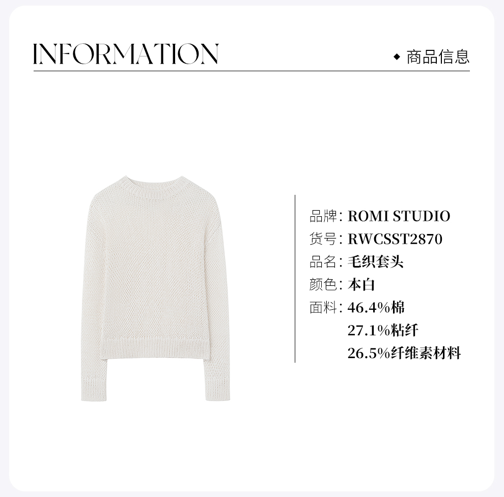ROMI STUDIO 天然环保马尼拉麻纸纱镂空圆领套头针织衫RWCSST2870