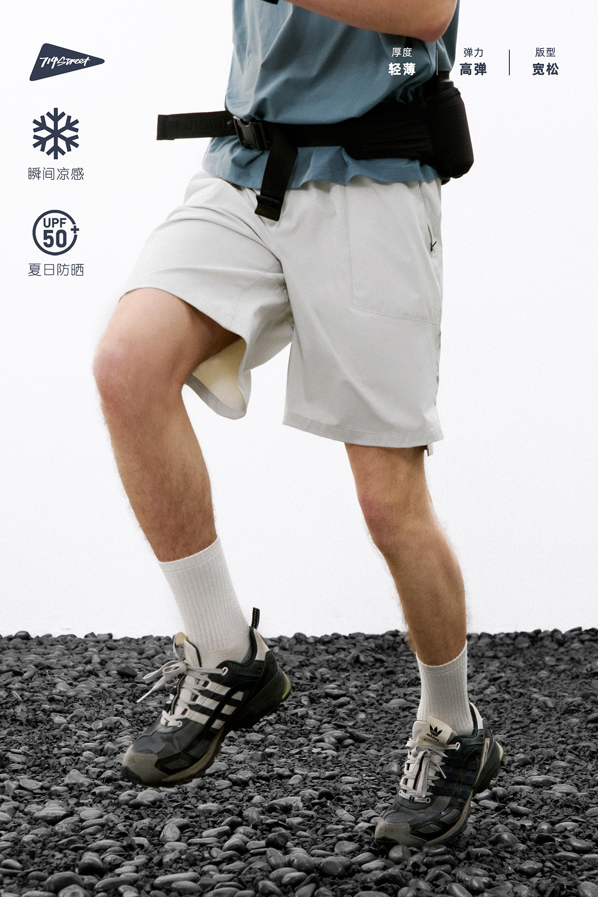 714street凉感防晒抽绳腰围运动短裤男款 夏季轻薄休闲宽松五分裤