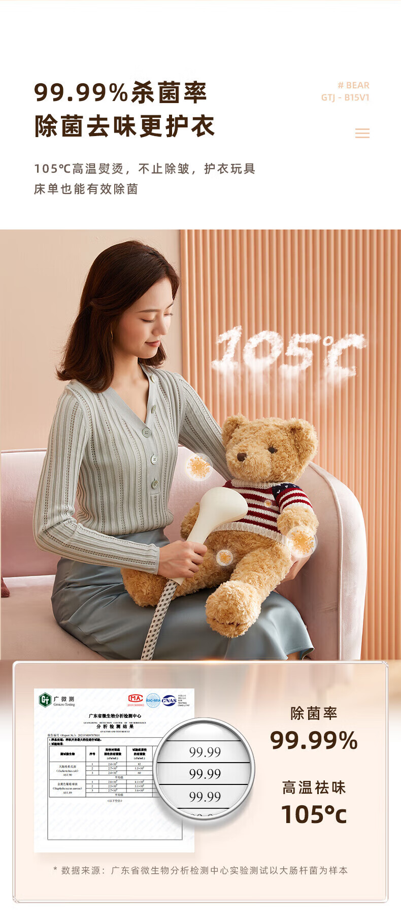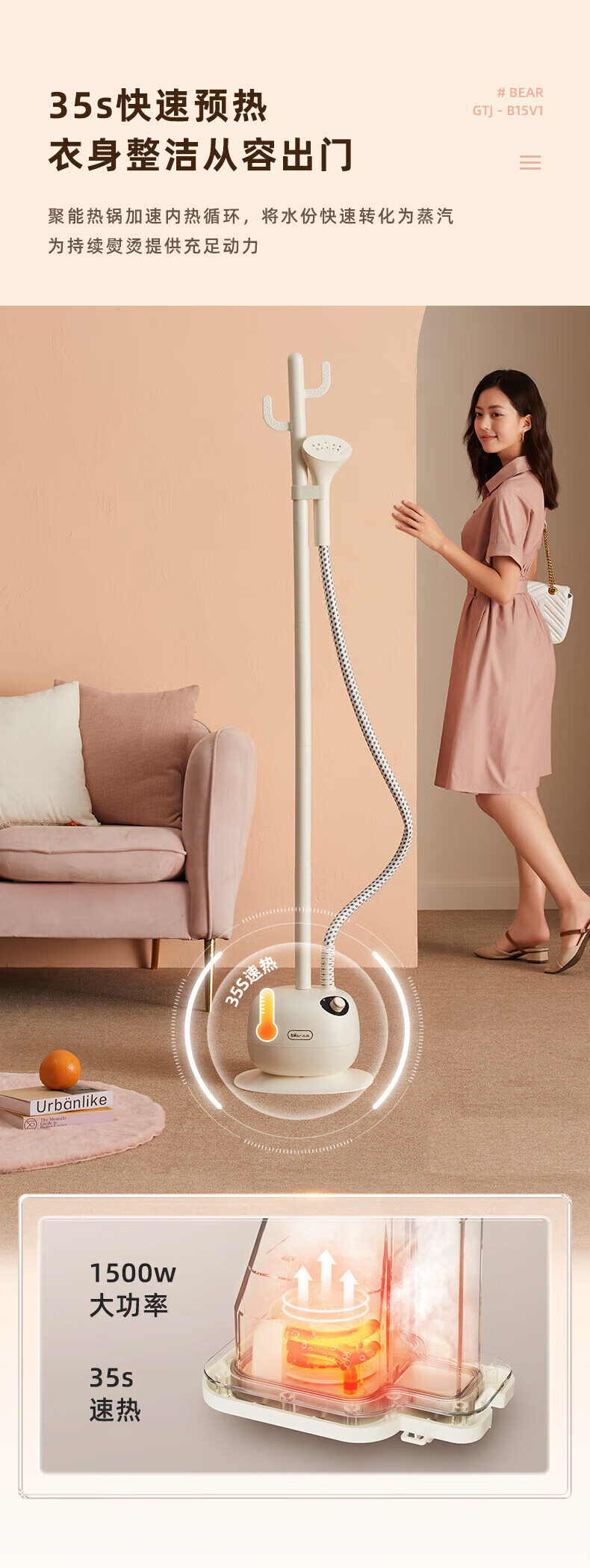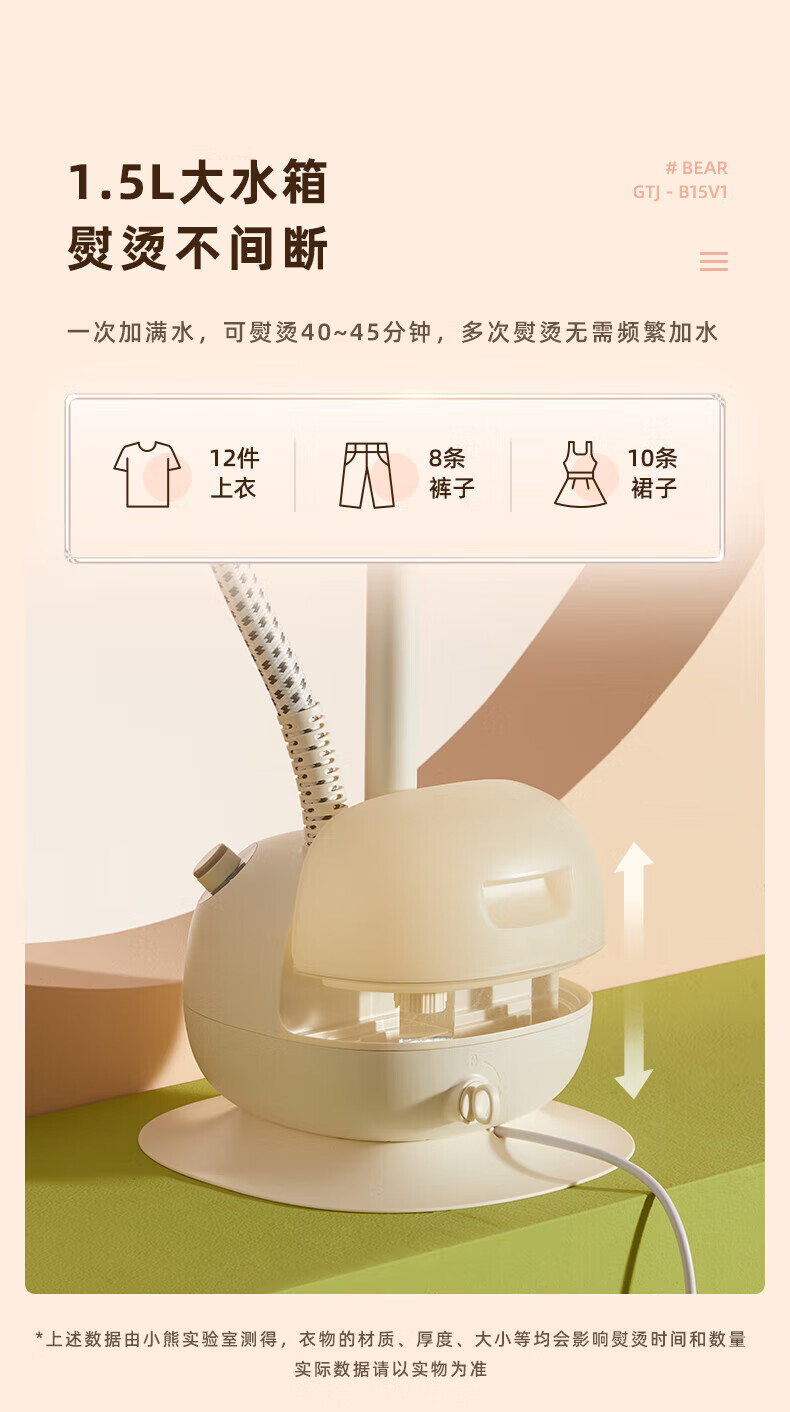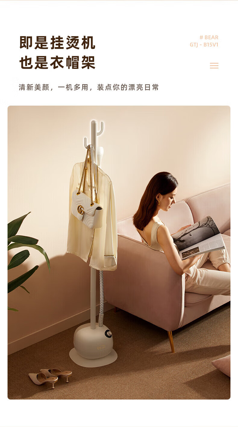 小熊(Bear) 立式手持蒸汽熨烫机 单杆熨烫机 挂式电熨斗 熨衣服 GTJ-B15V1(无熨烫板)