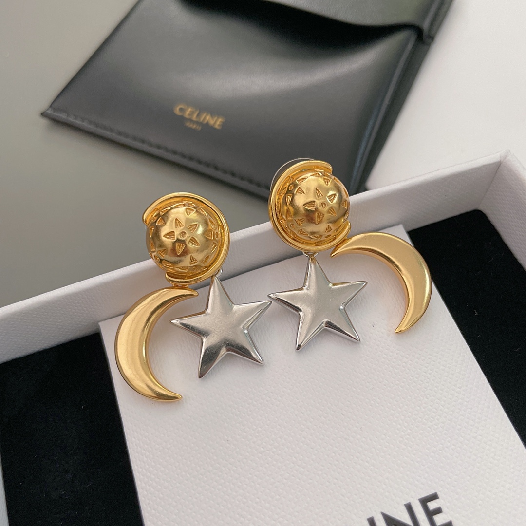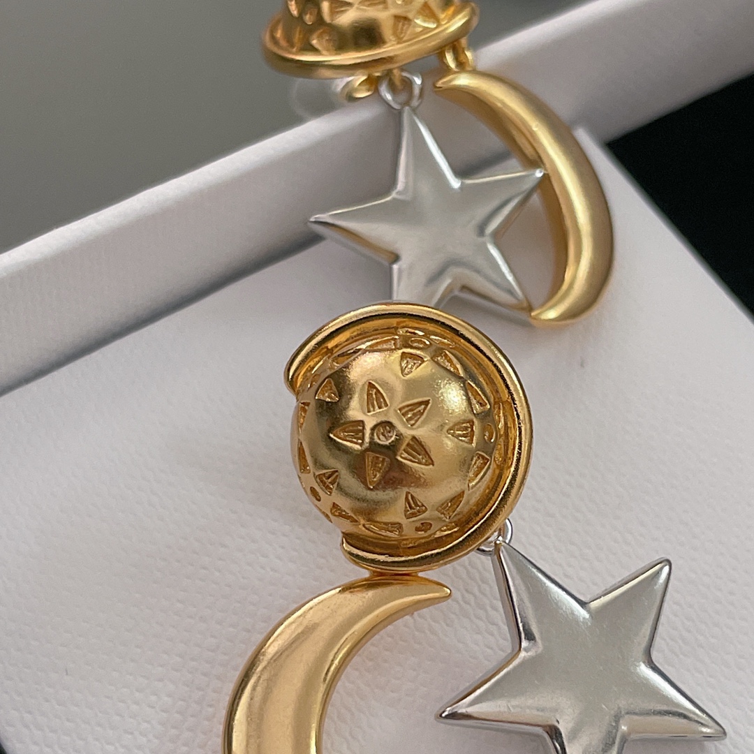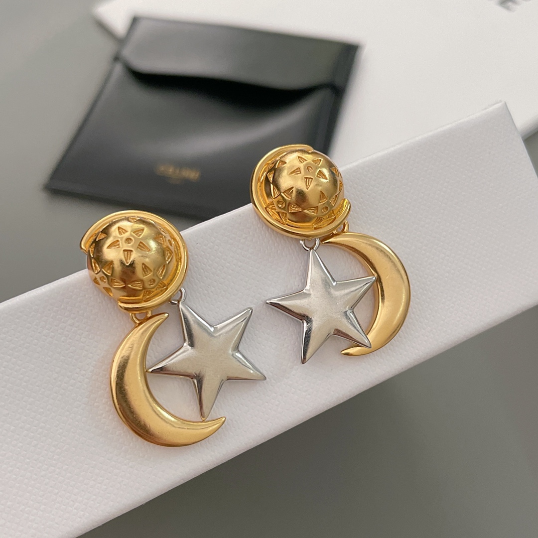 【C 星傍月耳钉】中古款!金配银/全金,两个颜色,配包装❗️超有趣又有设计感的一款耳钉!⭐️星月加星球🪐的元素既童趣又浪漫氛围满满,高级的复古金电镀颜色加上哑光的质感,上耳瞬间气质提升了几个level💥
