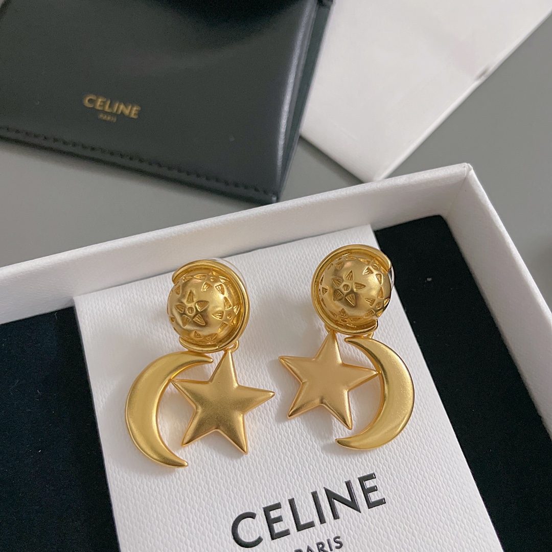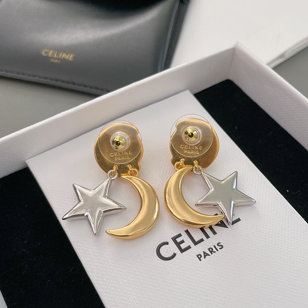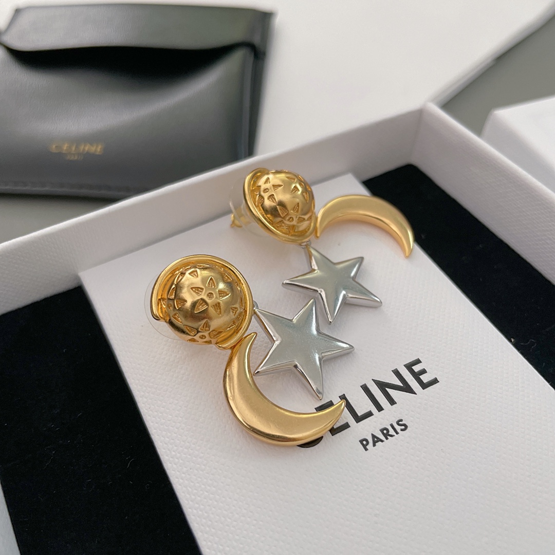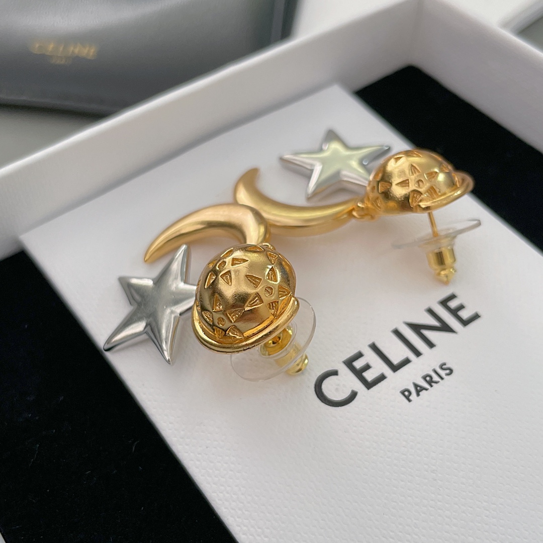 【C 星傍月耳钉】中古款!金配银/全金,两个颜色,配包装❗️超有趣又有设计感的一款耳钉!⭐️星月加星球🪐的元素既童趣又浪漫氛围满满,高级的复古金电镀颜色加上哑光的质感,上耳瞬间气质提升了几个level💥