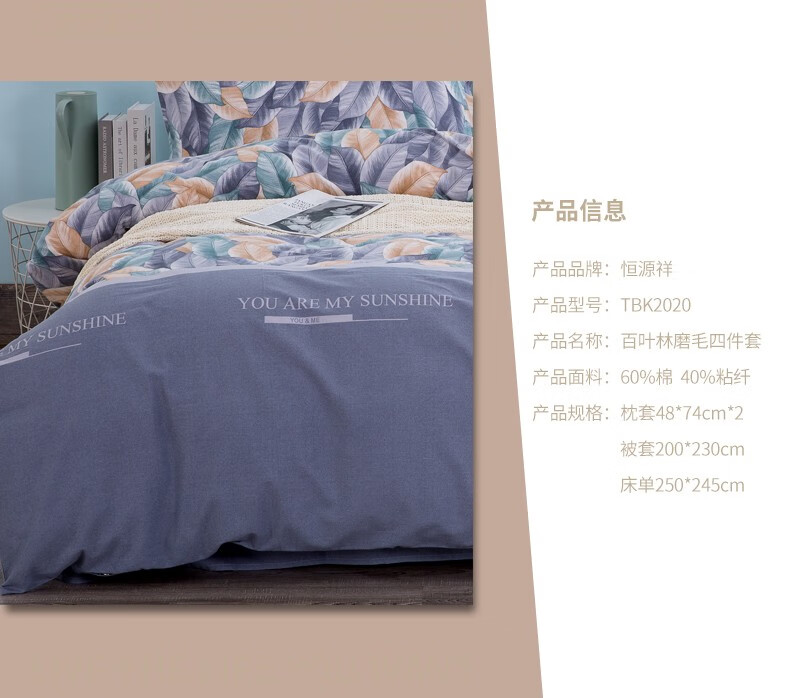 恒源祥(HYX) 恒源祥礼业TBK2020百叶林磨毛单双人秋冬加厚四件套 200*230cm