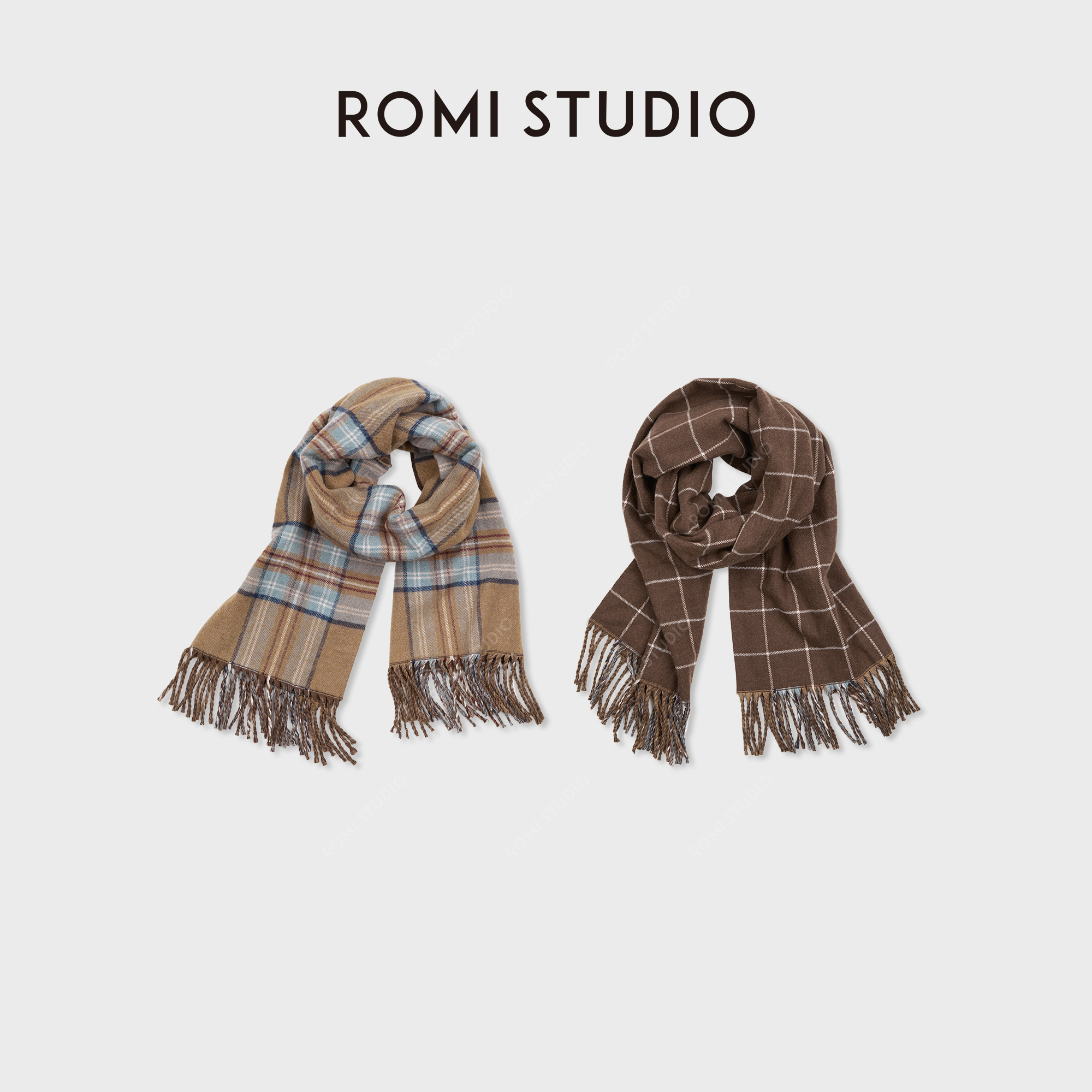 ROMISTUDIO双面格纹软糯羊毛混纱复古氛围感围巾围脖 RWCWP07313