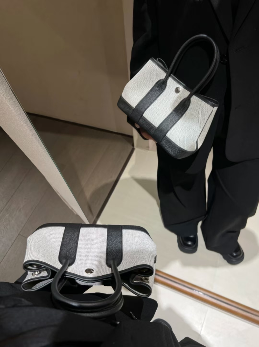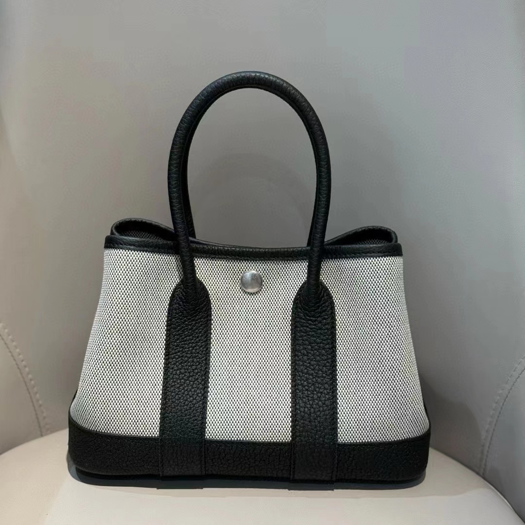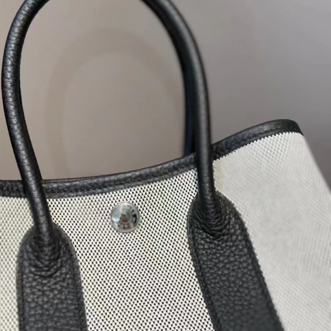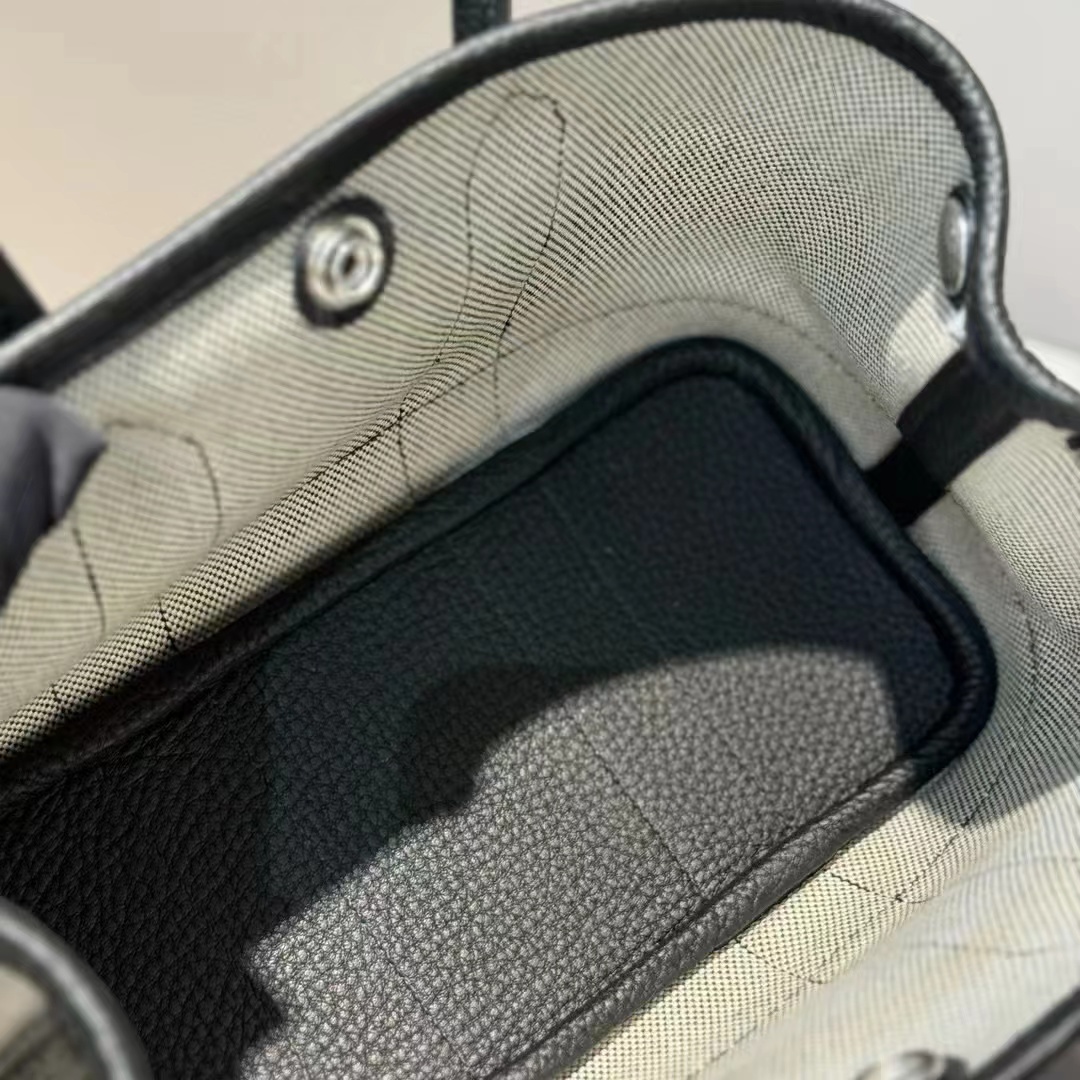 HERMES爱马仕Garden Party NEO Garden 23 银扣帆布拼牛皮 手提斜挎包 迷你 女款 黑白熊猫色(CB)
