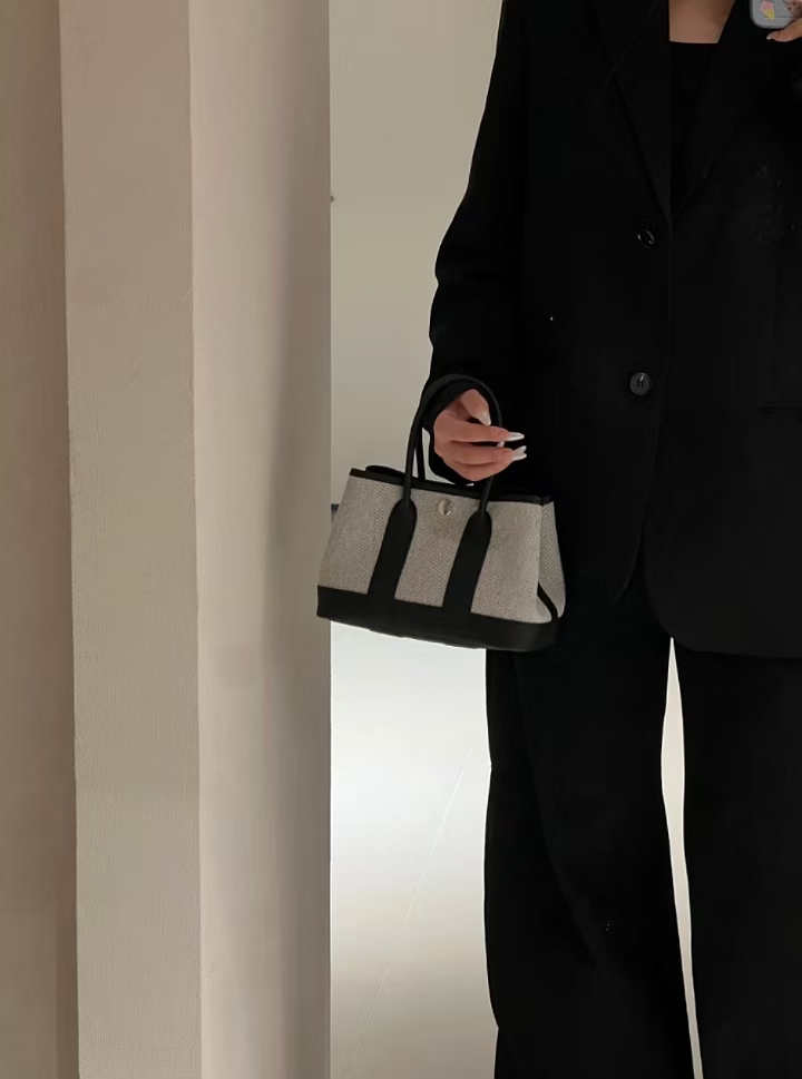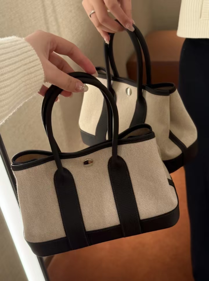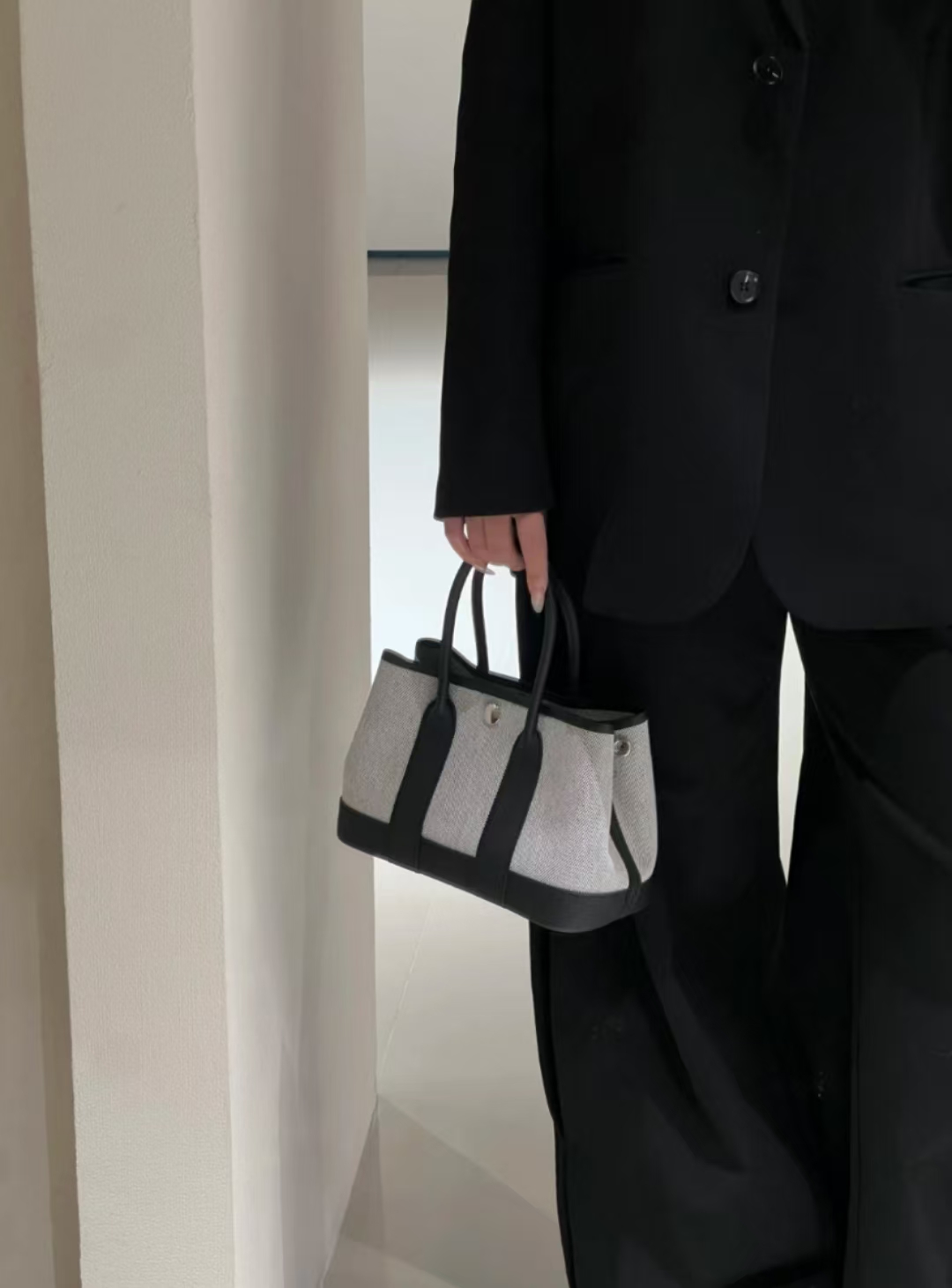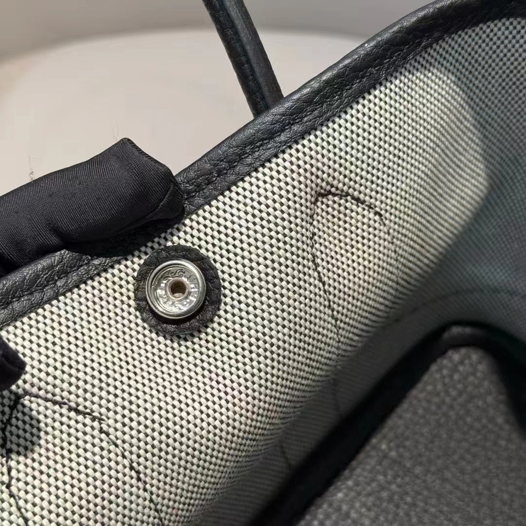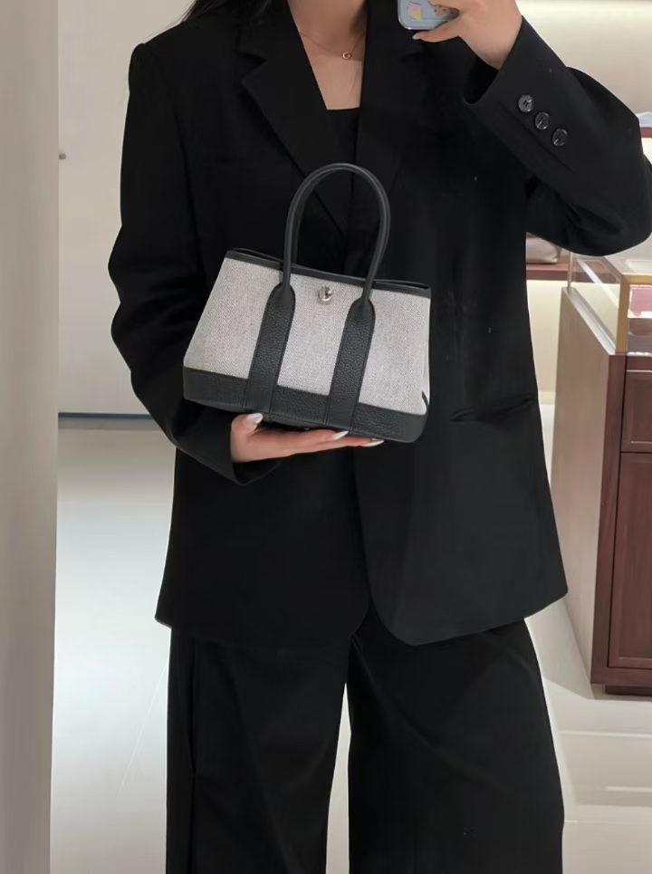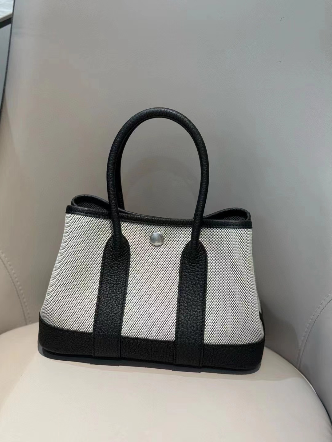HERMES爱马仕Garden Party NEO Garden 23 银扣帆布拼牛皮 手提斜挎包 迷你 女款 黑白熊猫色(CB)