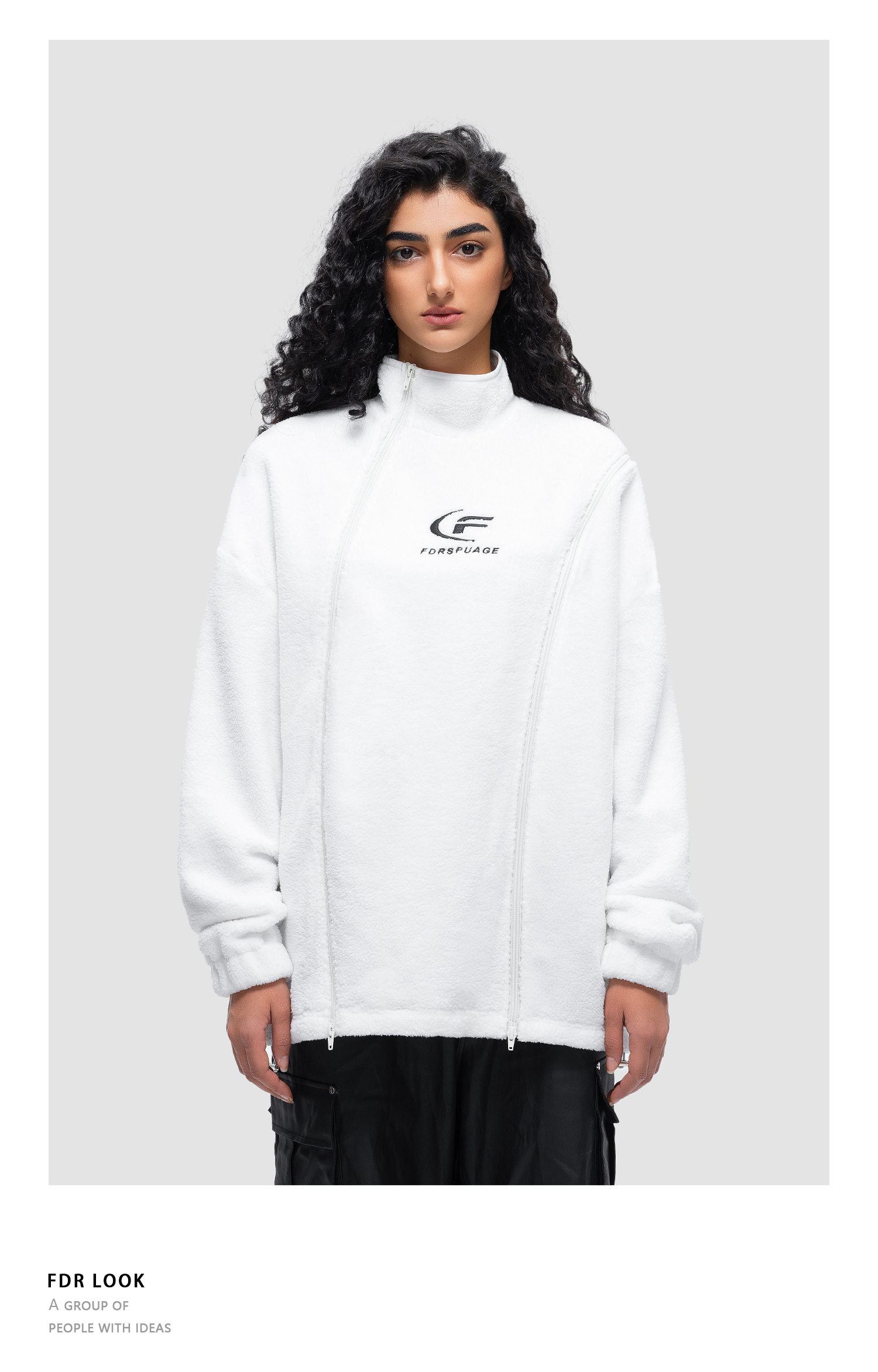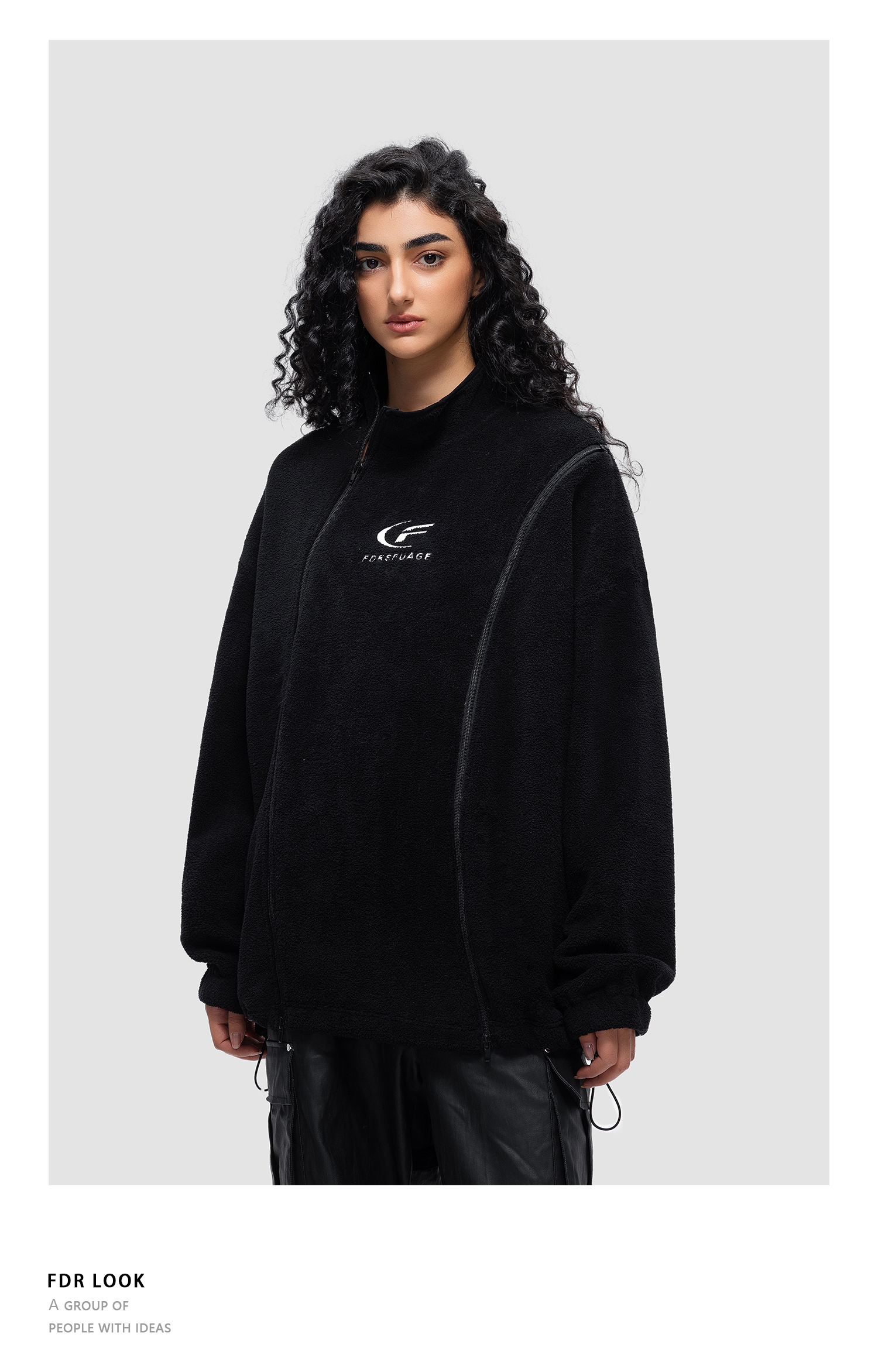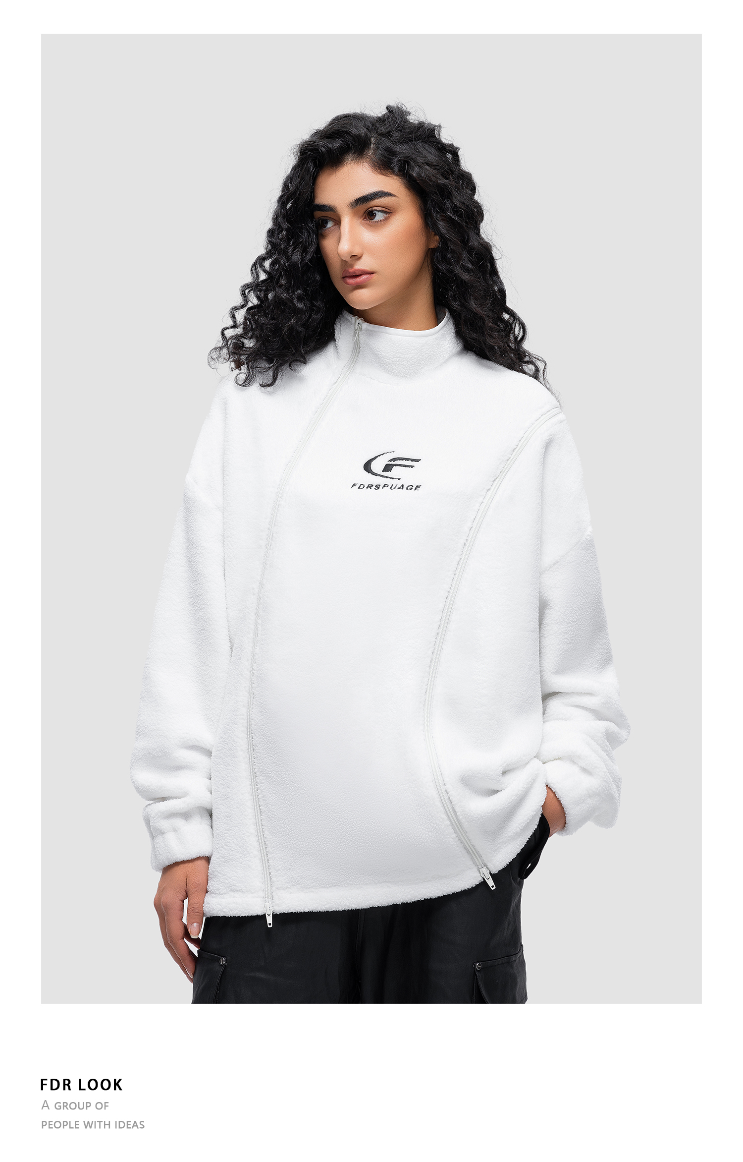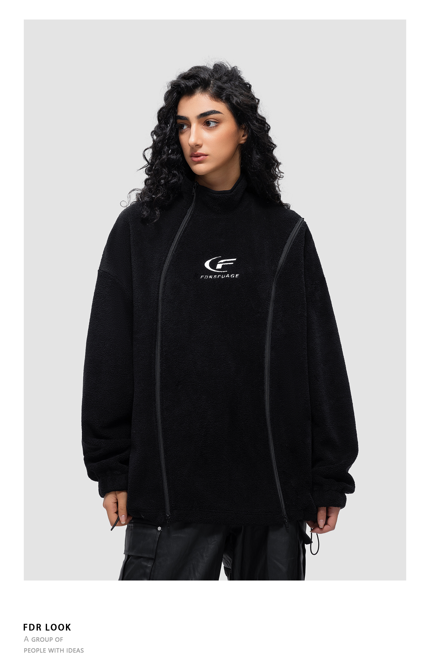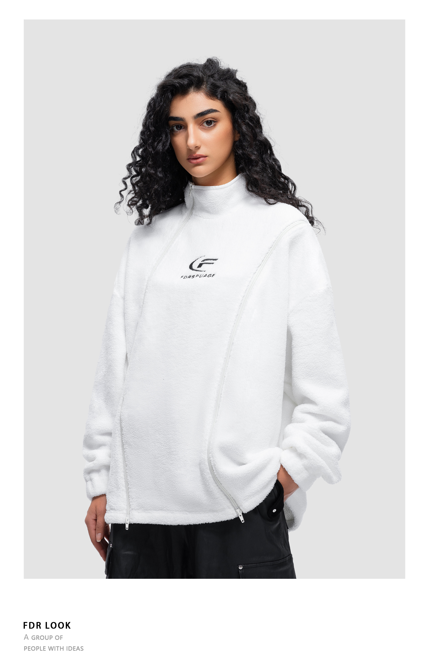 FDR 国潮高街弯拉链摇粒绒卫衣男女秋冬季美式加厚情侣装宽松上衣