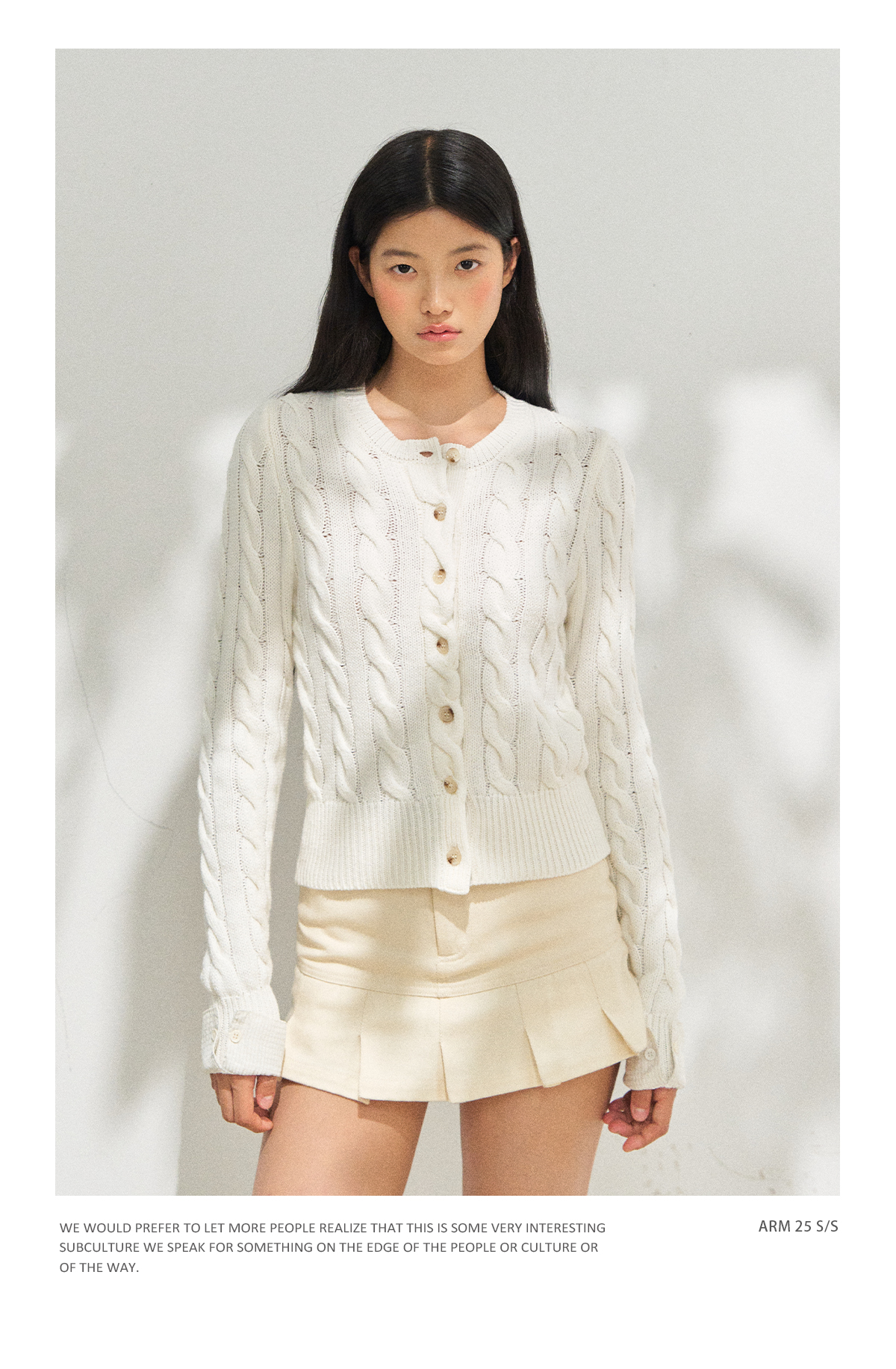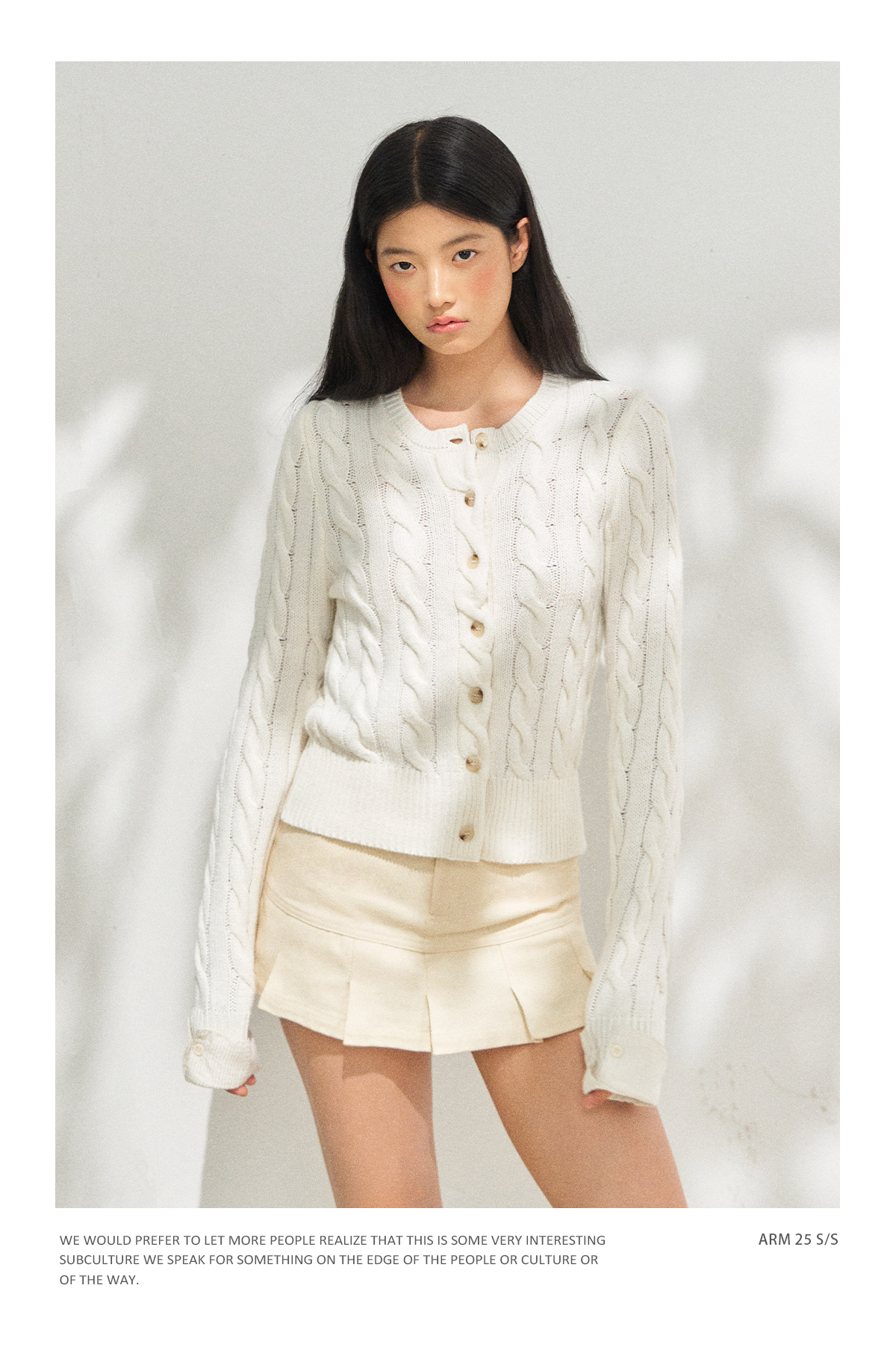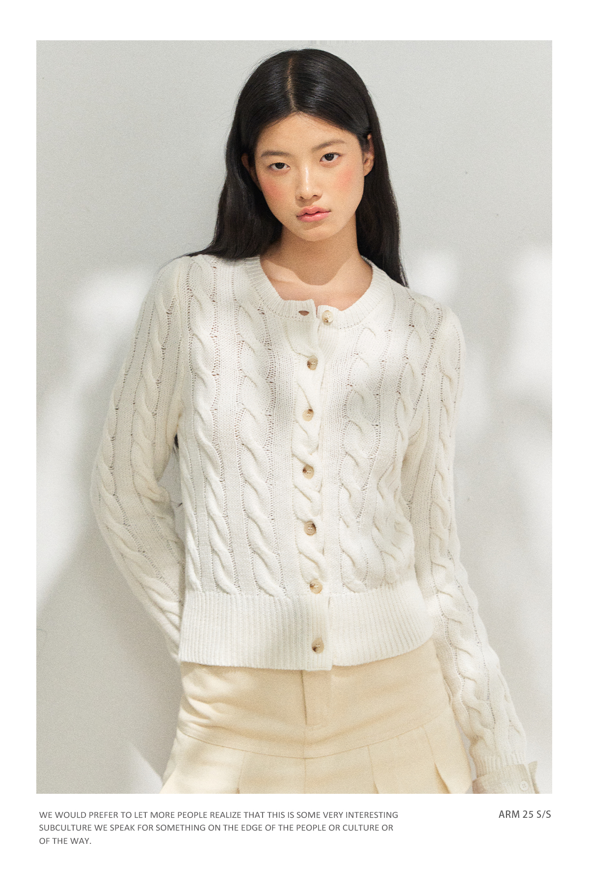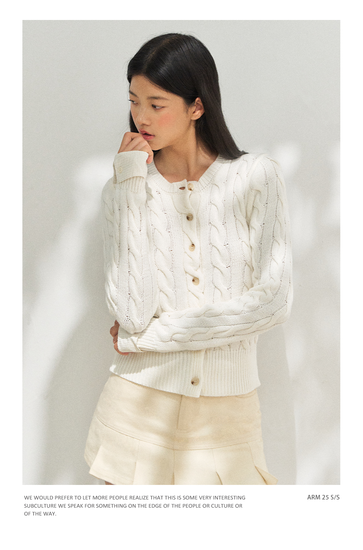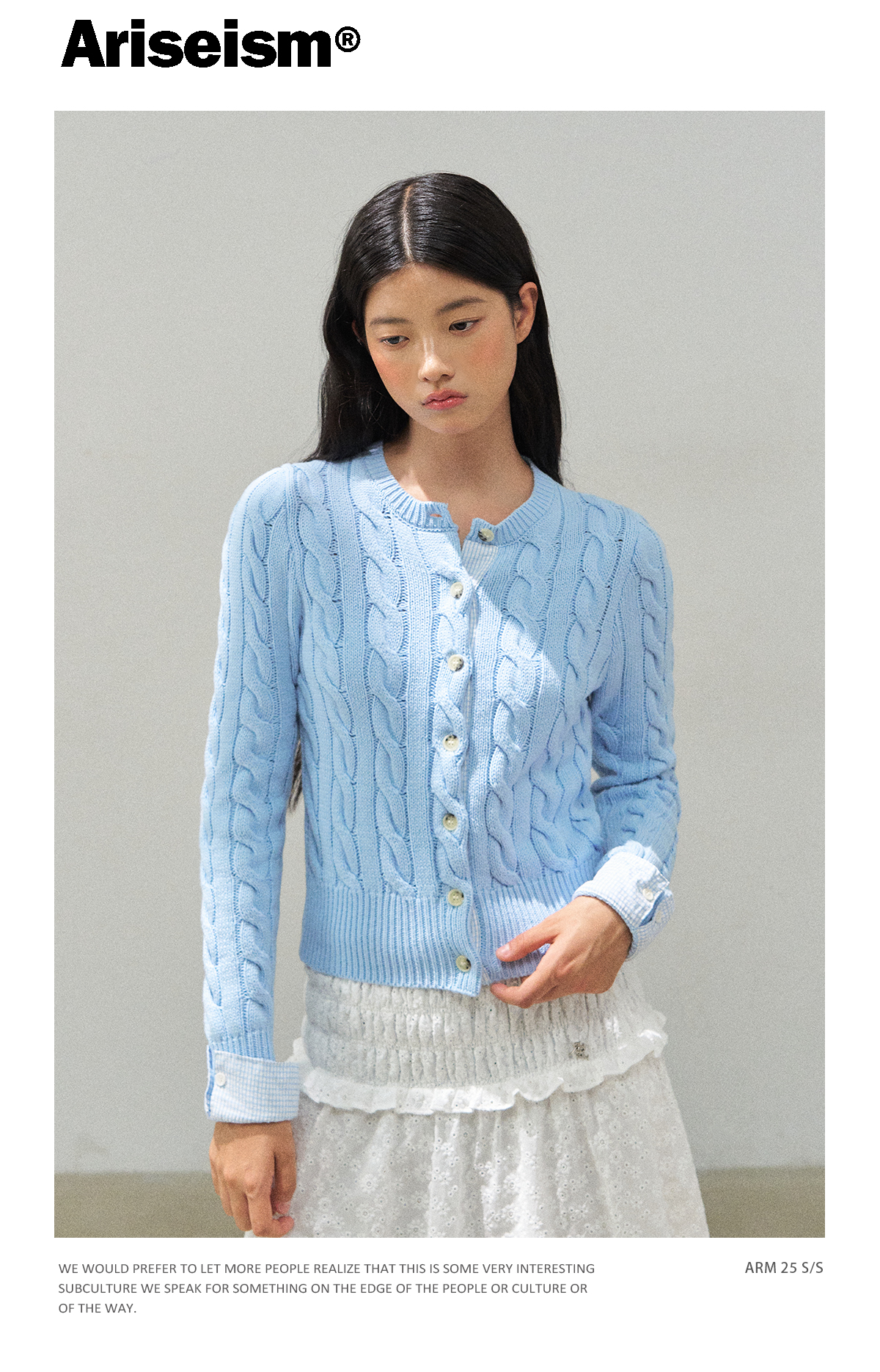 Ariseism 美式复古绞花毛衣女秋季新款修身针织上衣