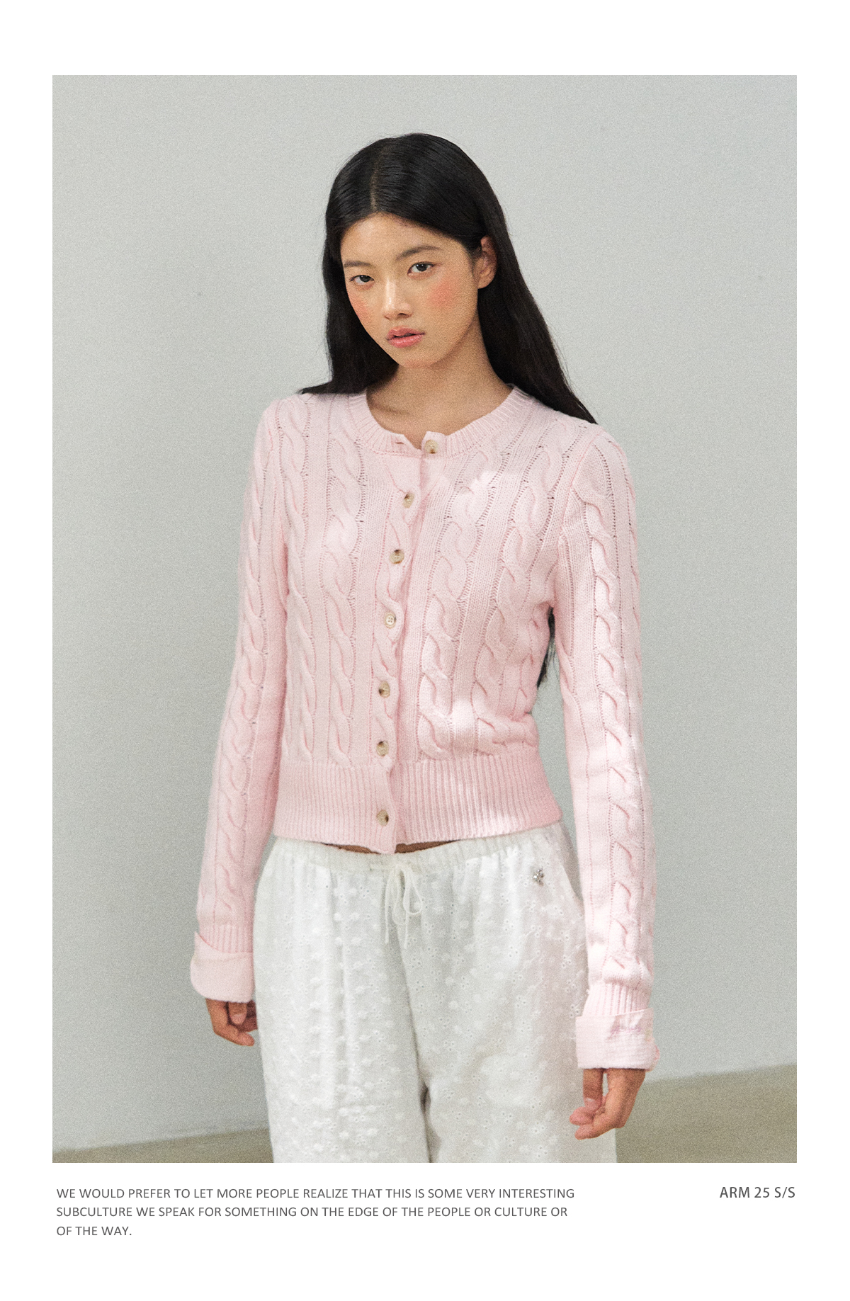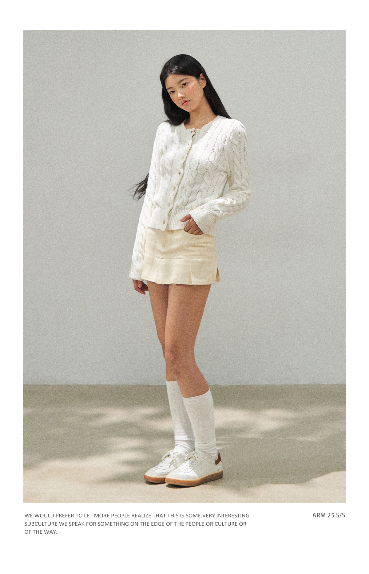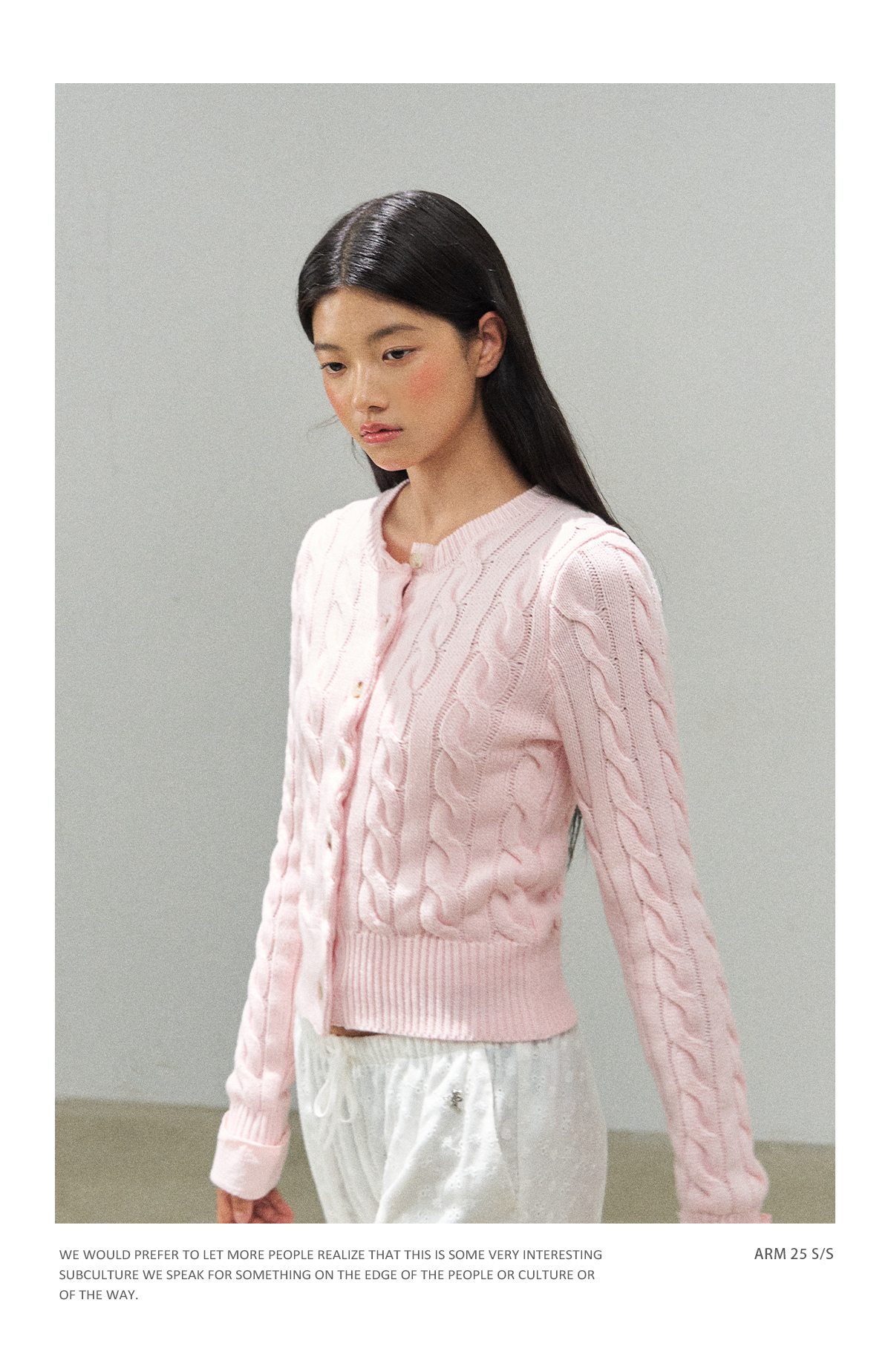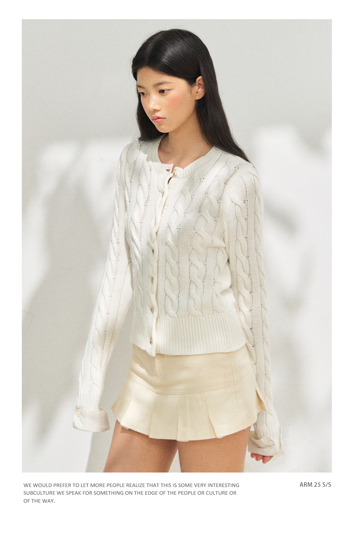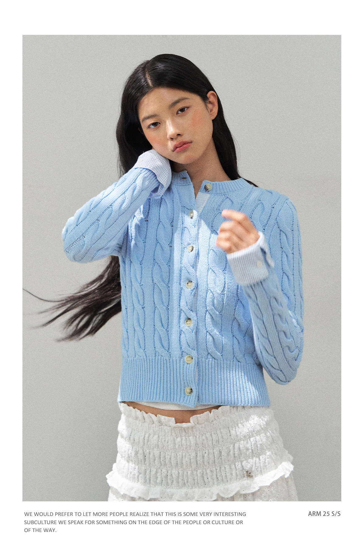 Ariseism 美式复古绞花毛衣女秋季新款修身针织上衣