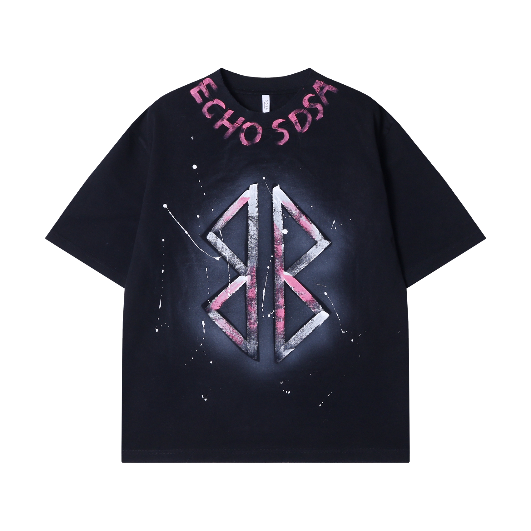 T2227春夏新款时尚个性撞色印花字母泼墨圆领半袖T恤百搭情侣套头上衣