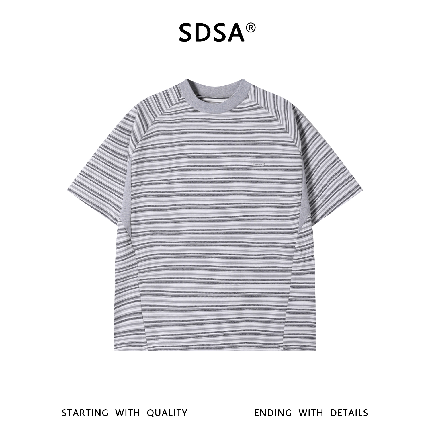 SDSA男装2026新款高贵轻奢韩系撞色条纹小标圆领短袖T恤百搭上衣
