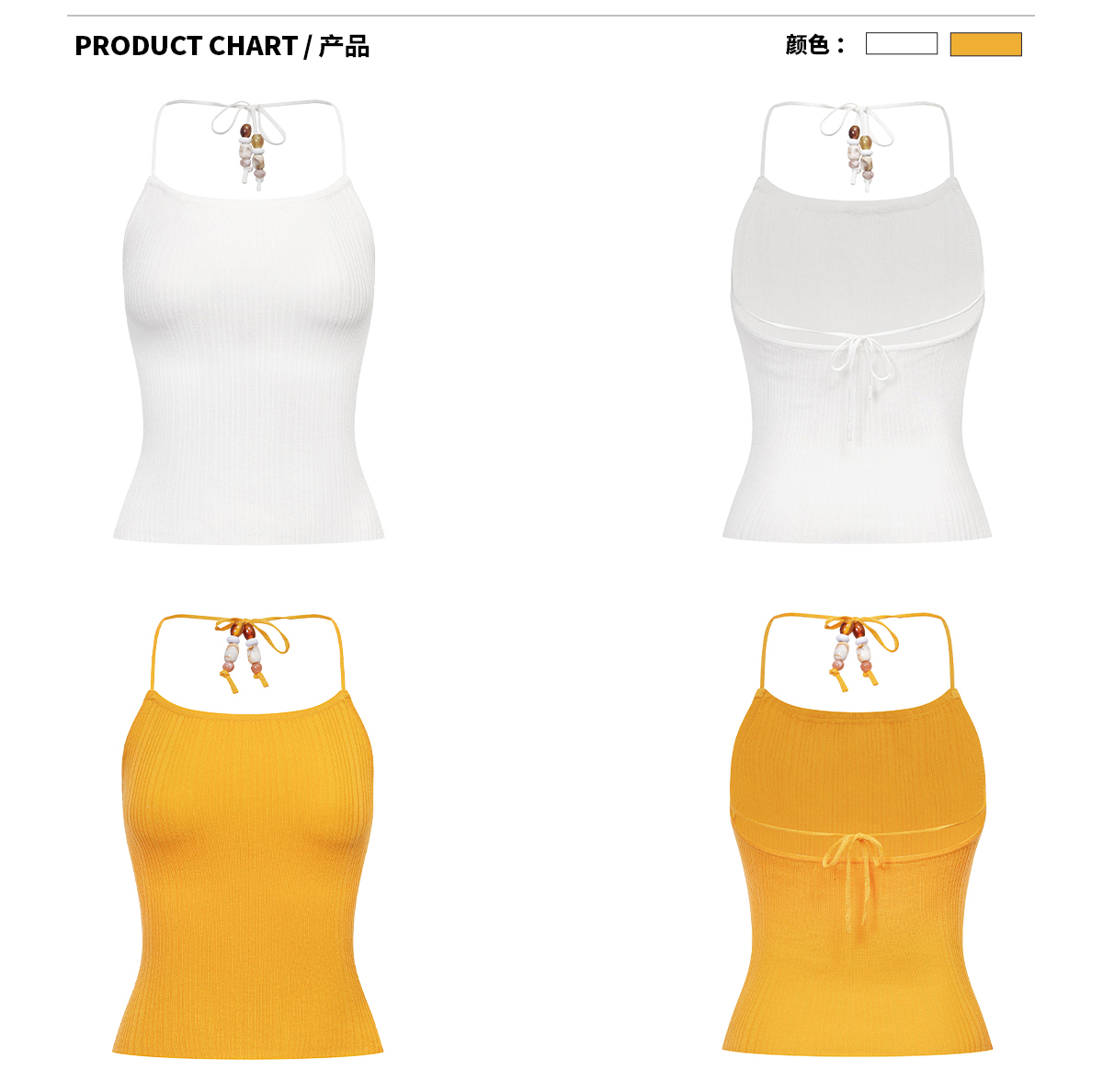Ariseism 美式复古双色吊带袋珠串挂脖背心女夏季新款修身上衣