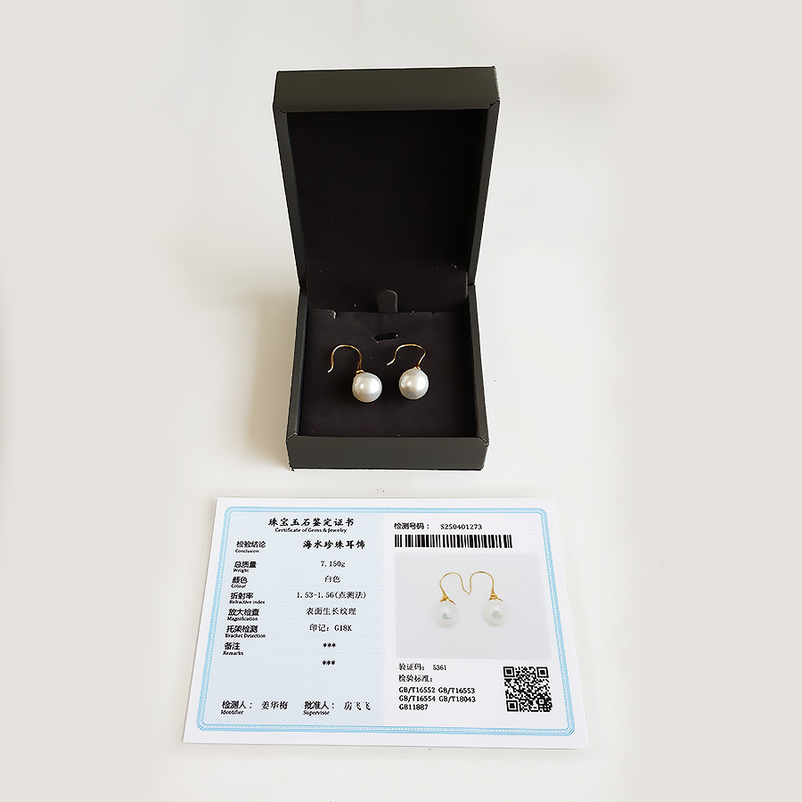 名称 | AU750黄金镶天然白色巴洛克海水珍珠耳坠 |