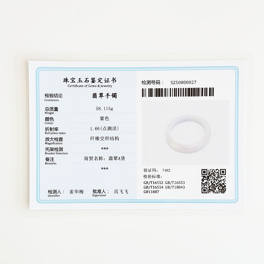 名称 | 天然细腻正桩细豆种56号紫罗兰翡翠手镯 |