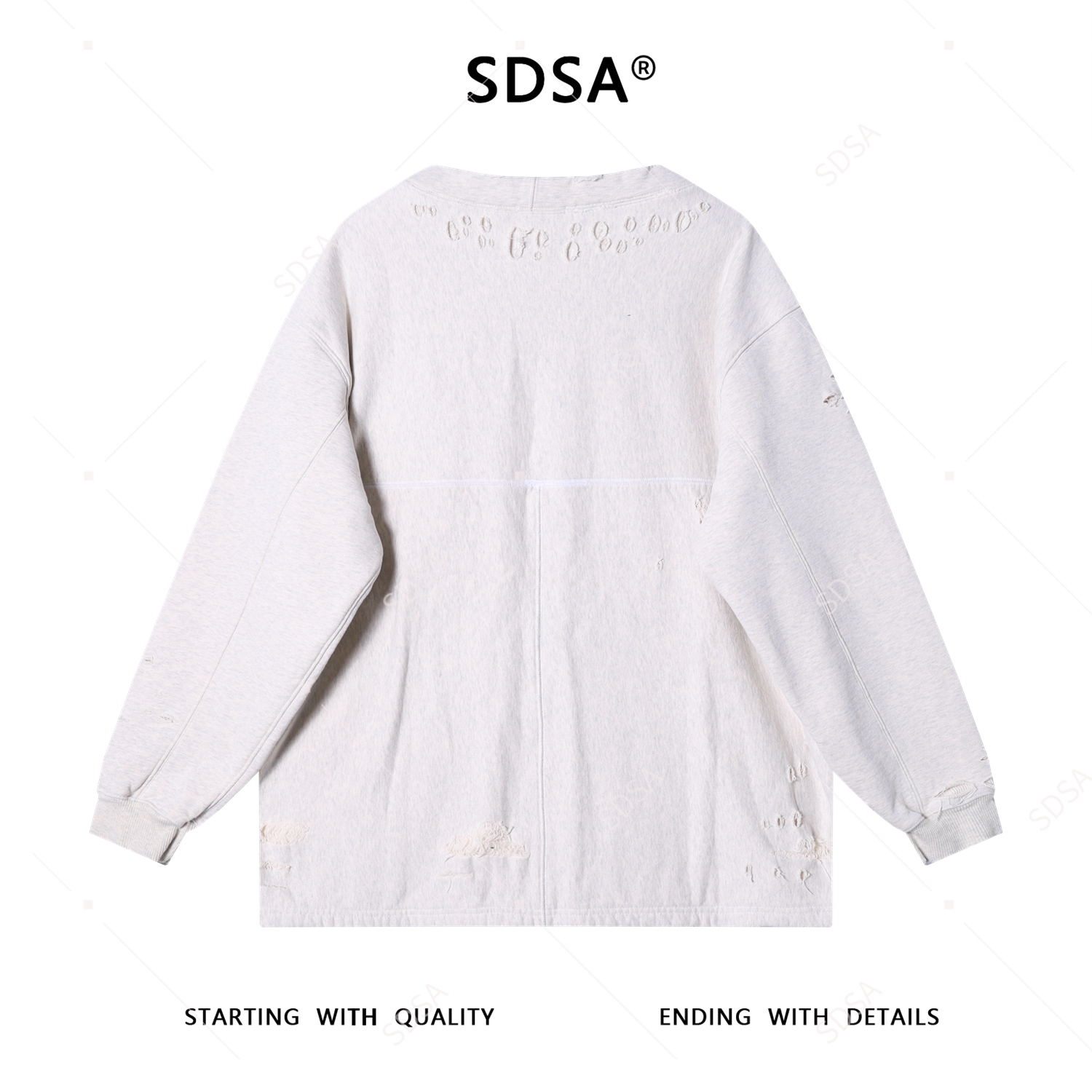 SDSA男士秋冬新款痞帅男装简约时尚磨破拉链V领卫衣外套百搭宽松