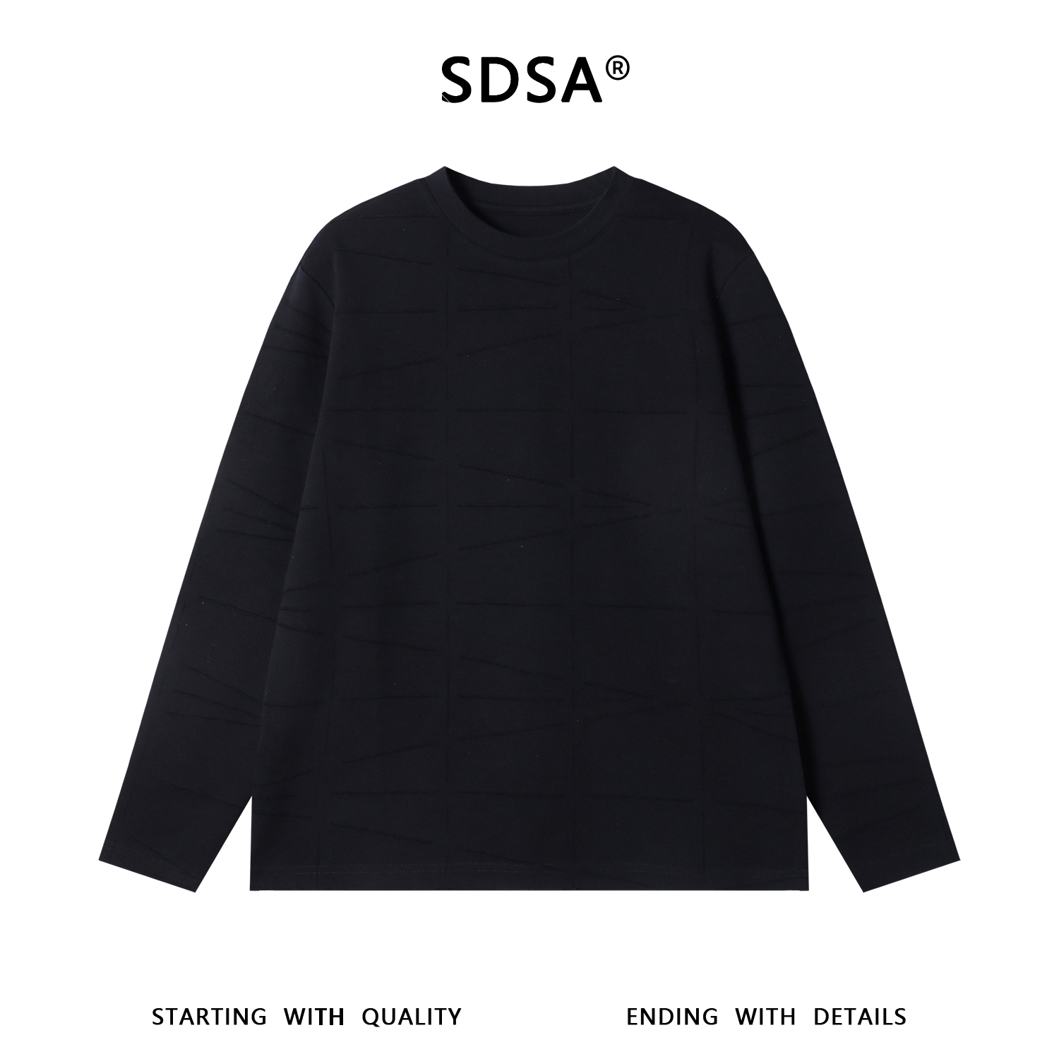 T363新款潮流男士圆领褶皱工艺长袖T恤时尚宽松舒适百搭ins潮