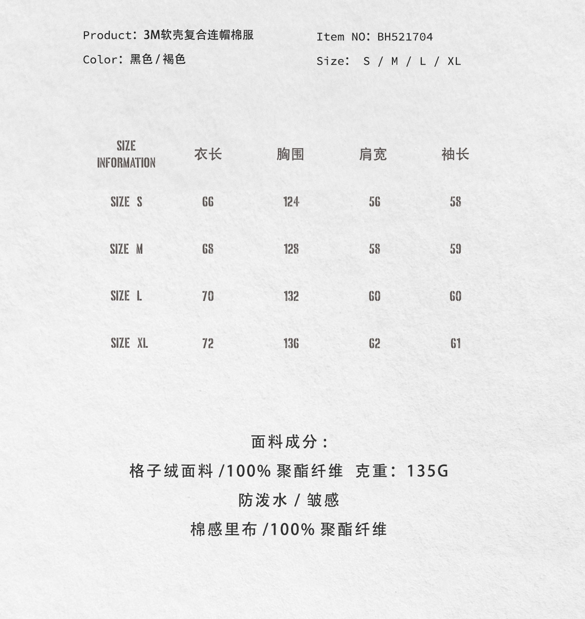 714street高端线BEHALF 极简线条分割 3M热反射银膜软壳连帽棉服