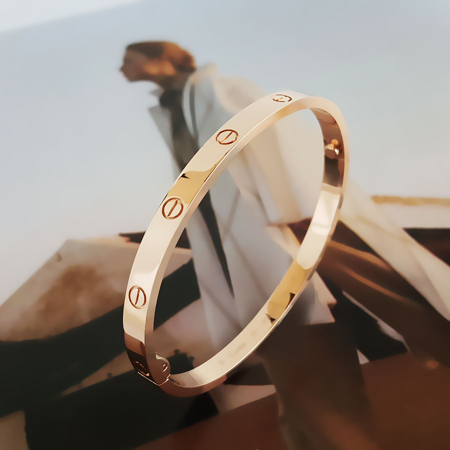 款式 | 玫瑰金新款中号中宽版无钻LOVE六代手镯 |