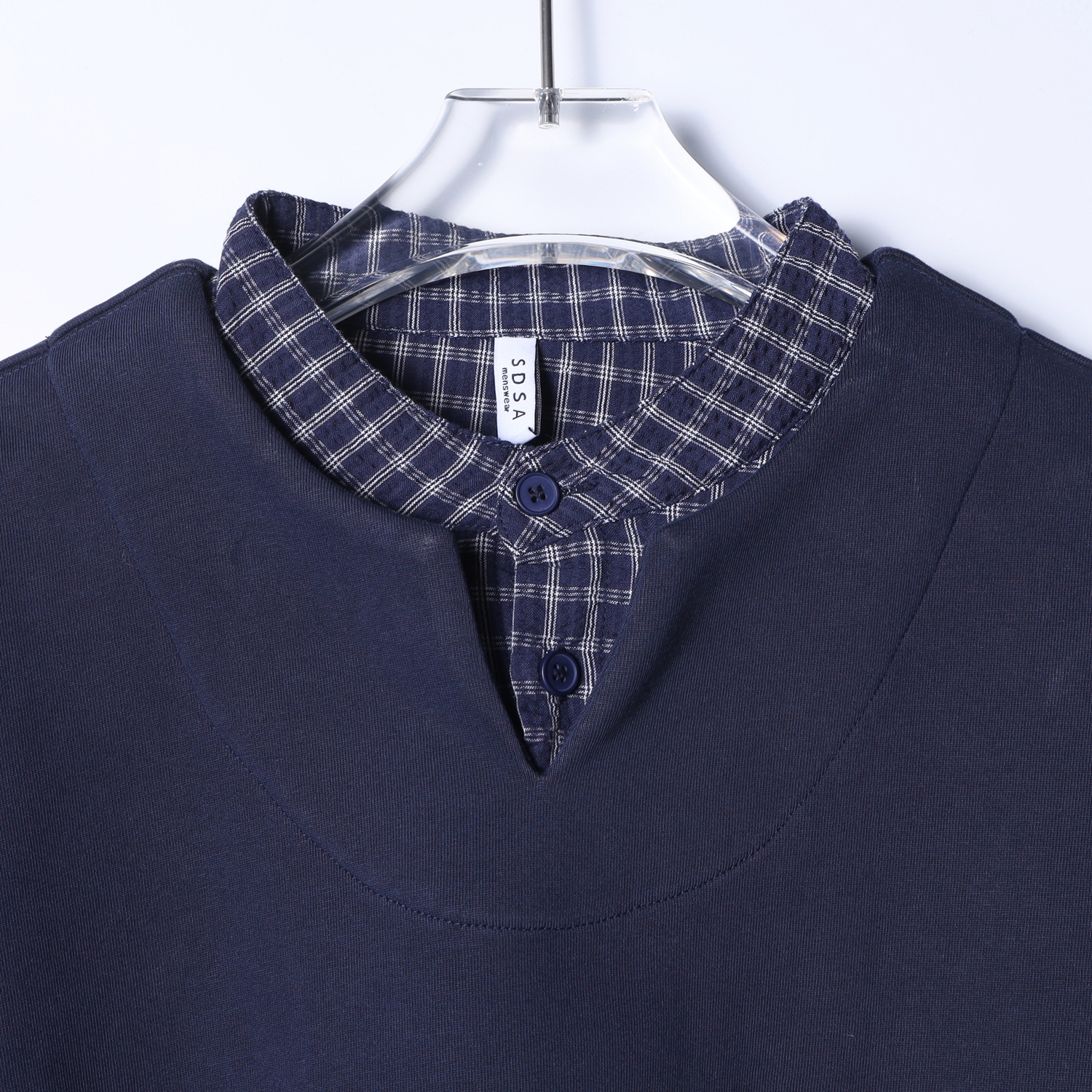 T3297夏季高级感新款韩系满天星撞色缝线短袖T恤情侣简约百搭圆领上衣