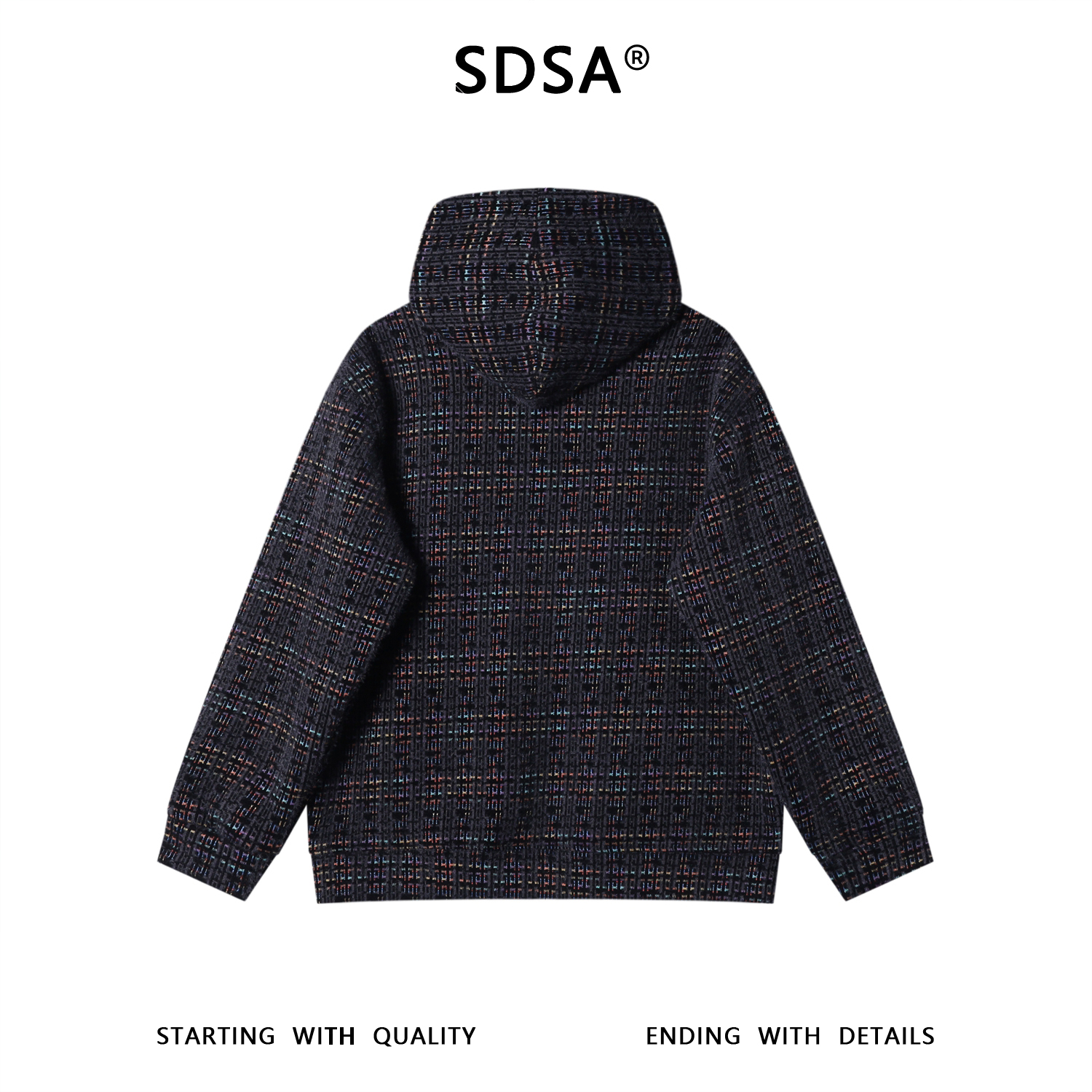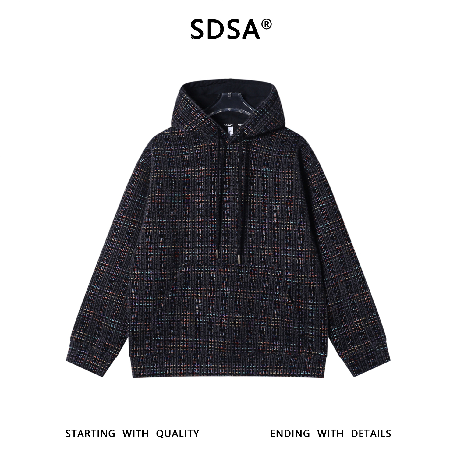 WY1433SDSA男士秋冬新款痞帅男装高街风彩色格纹绒毛抽绳连帽卫衣百搭