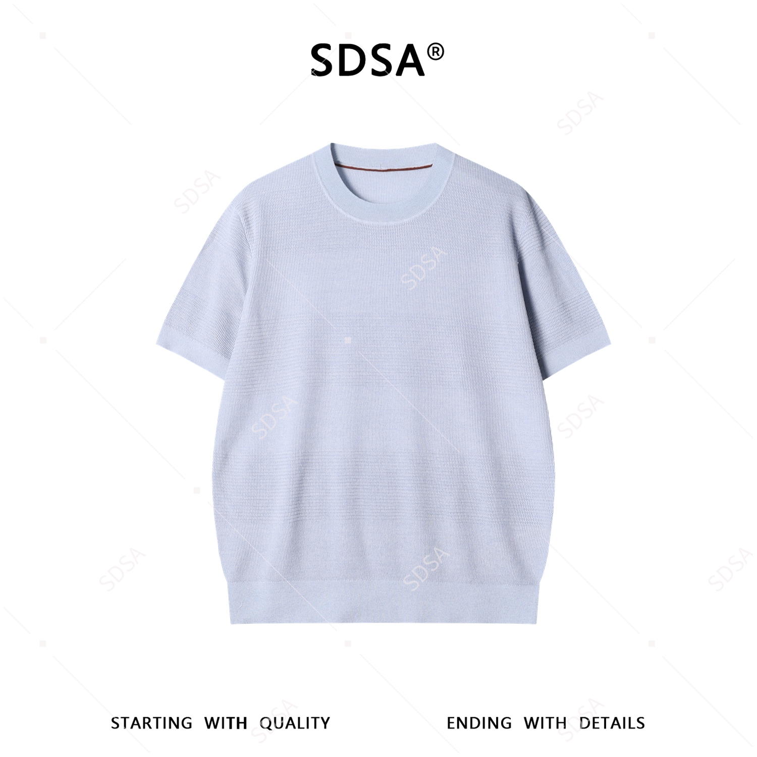 SDSA男装2026新款提花格纹半拉链立领短袖T恤下摆抽绳设计百搭