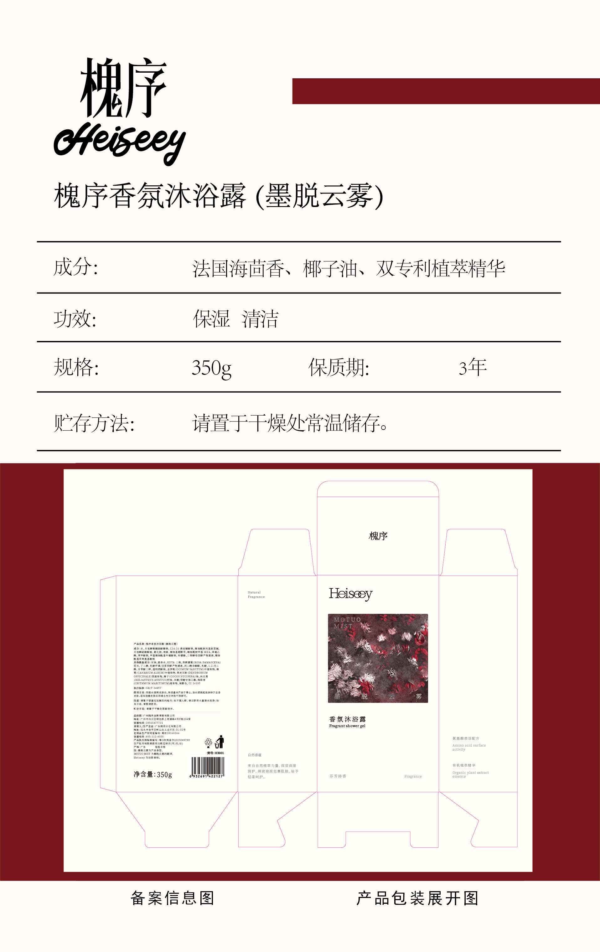 Heiseey槐序香水 冰砖系列沐浴露 持久留香