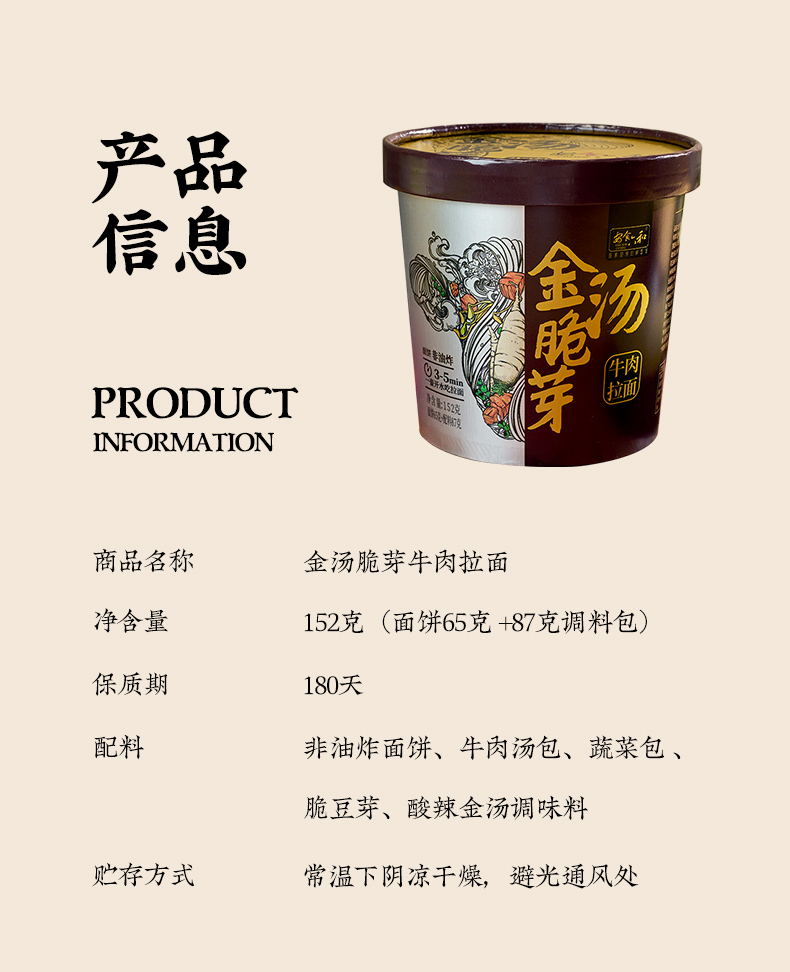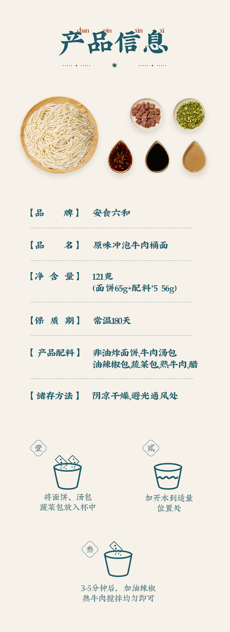 【安食六和】兰州牛肉面121g金汤脆芽152g冲泡非油炸方便拉面6桶