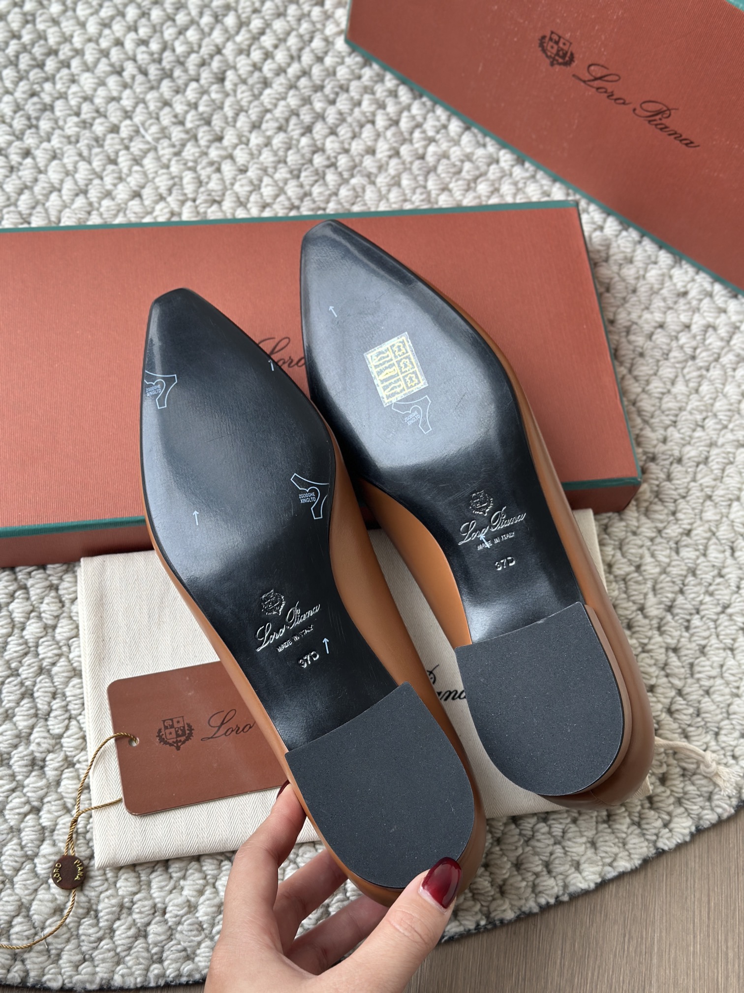 进口意大利全透染真皮大底,亲肤透气,高端大气,防滑耐磨!在有湿滑的路面可以安心行走不打滑!跟高2cm平底鞋不挑人!!