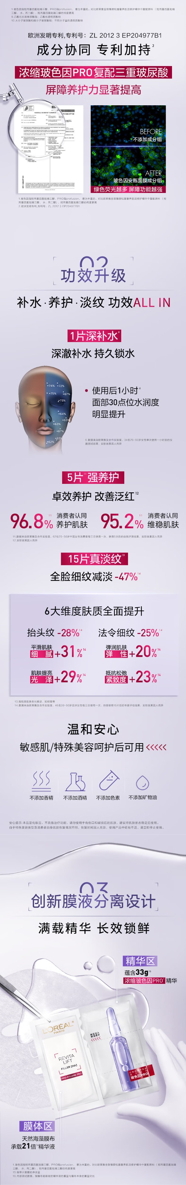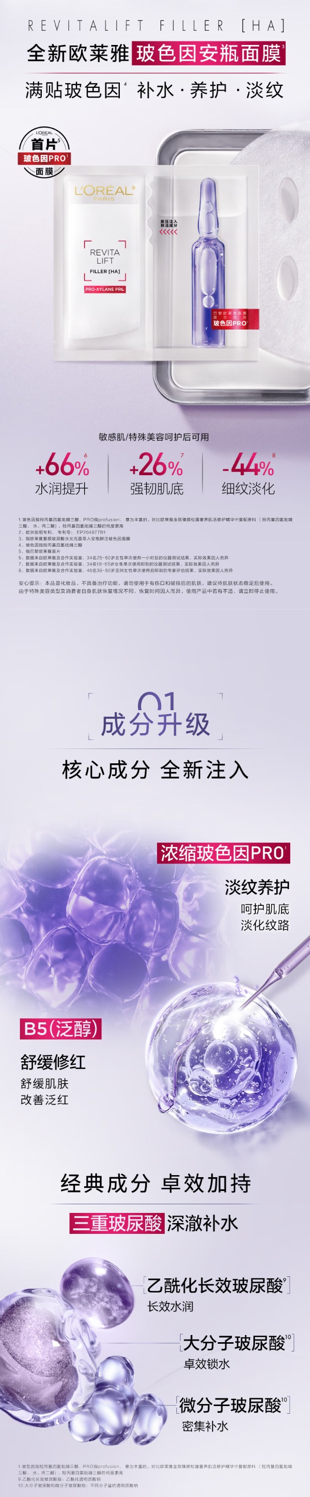 欧莱雅复颜玻尿酸水光充盈导入安瓶鲜注玻色因面膜33g*5