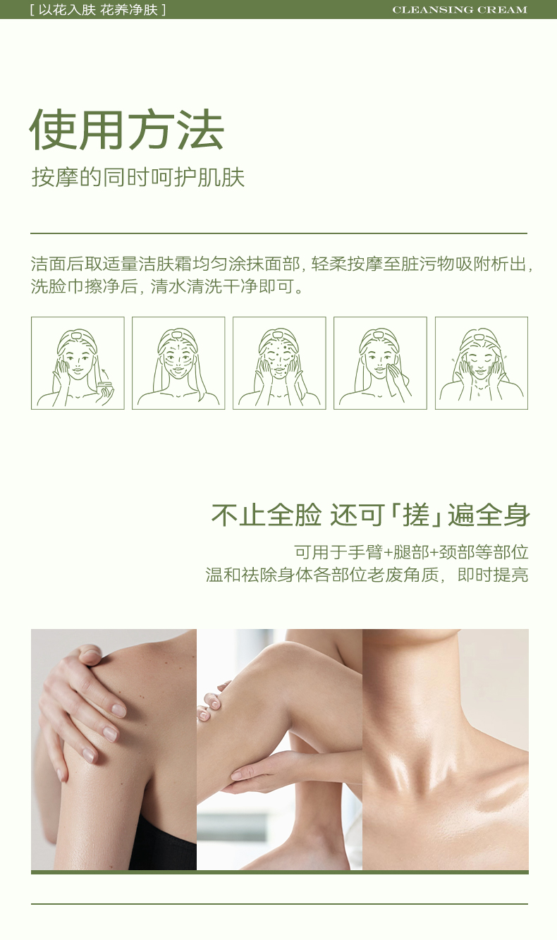 花趣按摩膏面部清洁毛孔洁肤霜温和溶解毛孔彩妆污垢卸妆